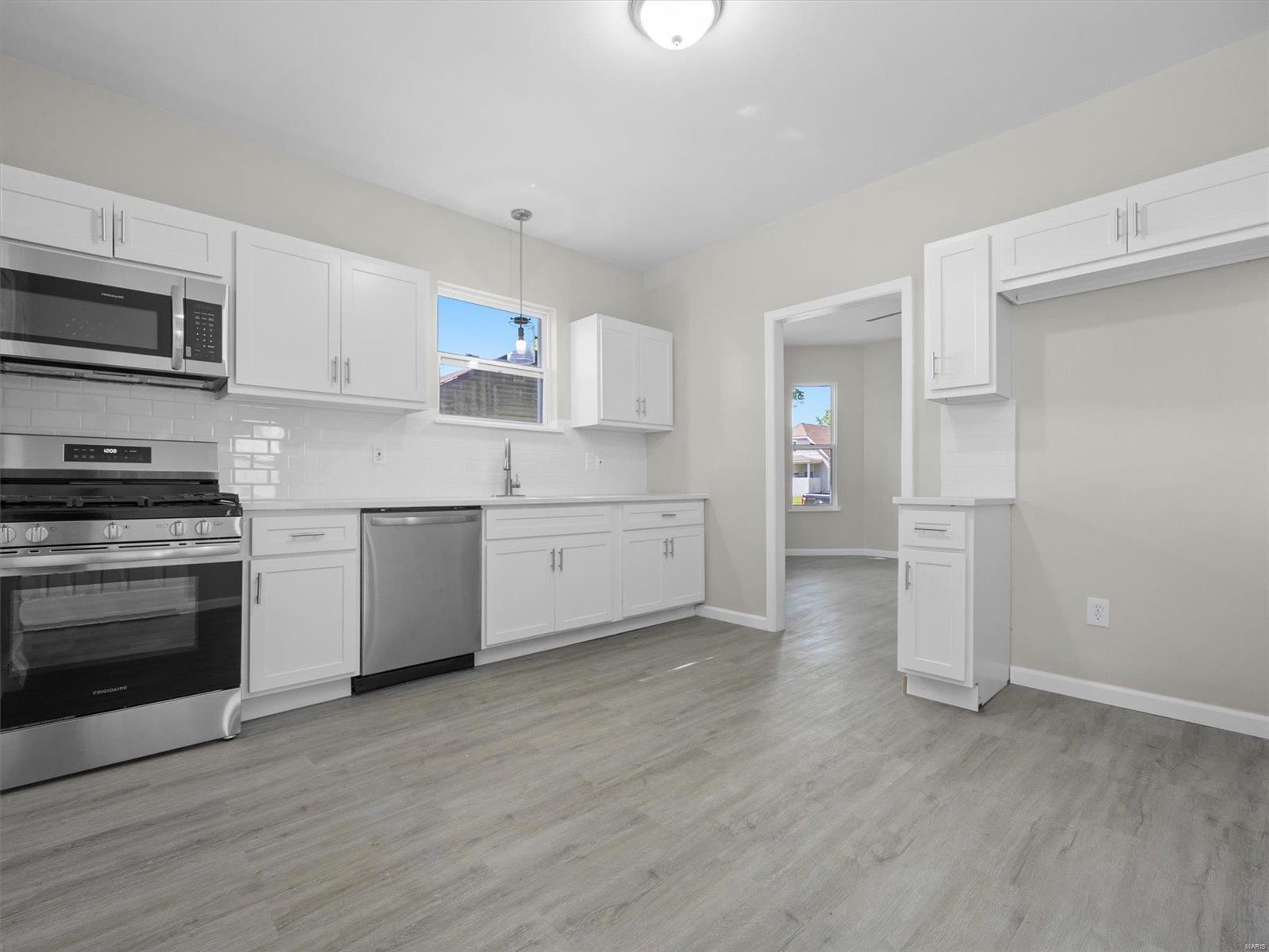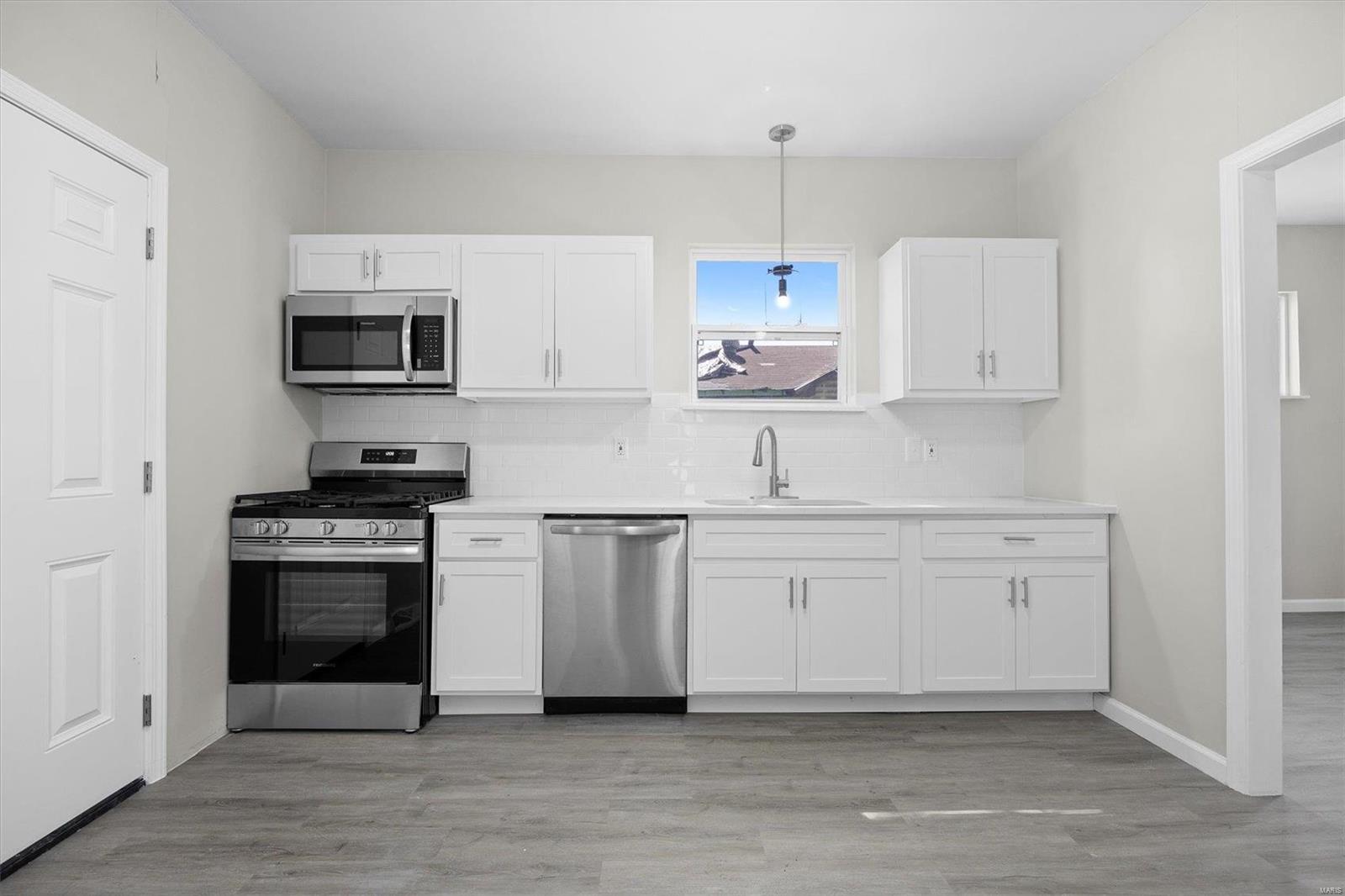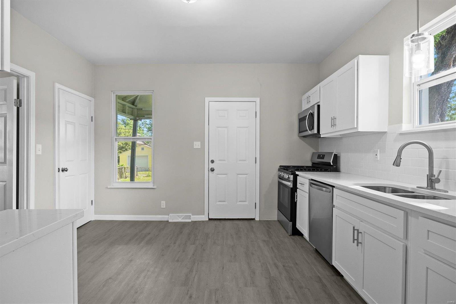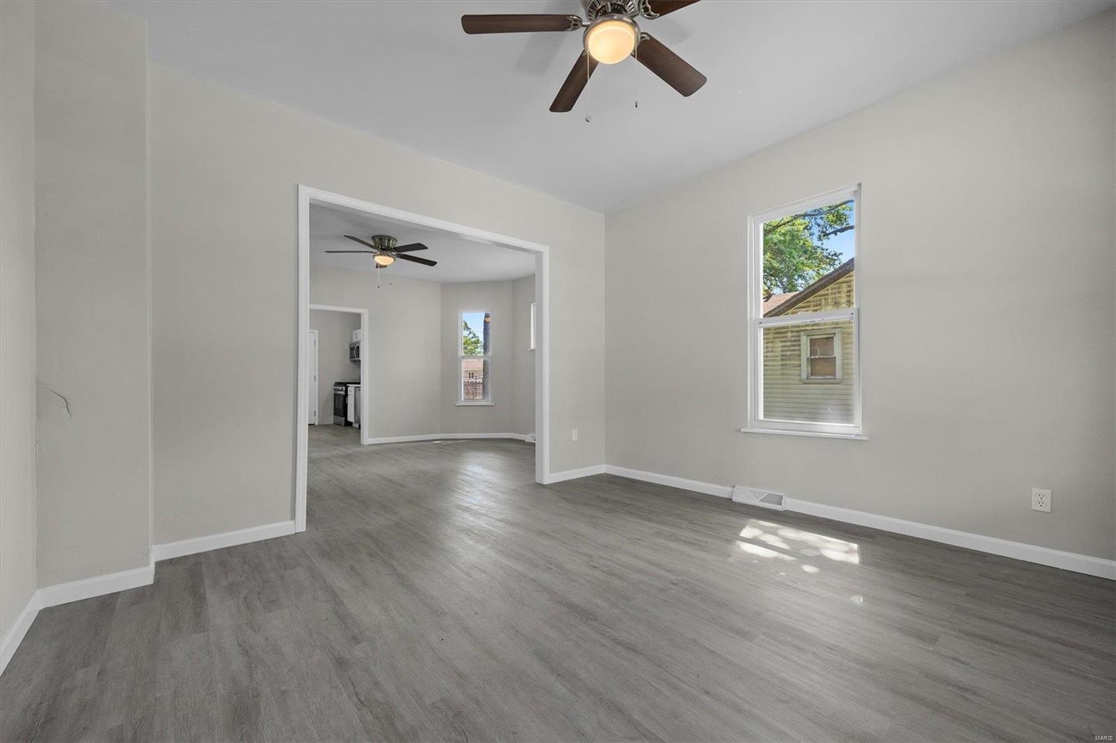 Check out this Granite City home! New flooring, lighting and fresh paint throughout. Spacious living room with vinyl plank flooring opens through to the separate dining room. White cabinetry, subway tile backsplash and granite countertops are featured in the kitchen. I of the 2 bedrooms with plush carpet and a newly renovated full bath round out the main floor. Upstairs you will find a bonus room that could serve many uses such as an office or den and the second bed room. Roof and HVAC new 2024. All this conveniently located close to shopping, restaurants and highway access, just 20 minutes from downtown Saint Louis! Call your favorite realtor today to find out how to make this house your home! This is a Fannie Mae Property. Before making an offer Buyer and/or buyer agent should verify all MLS data.