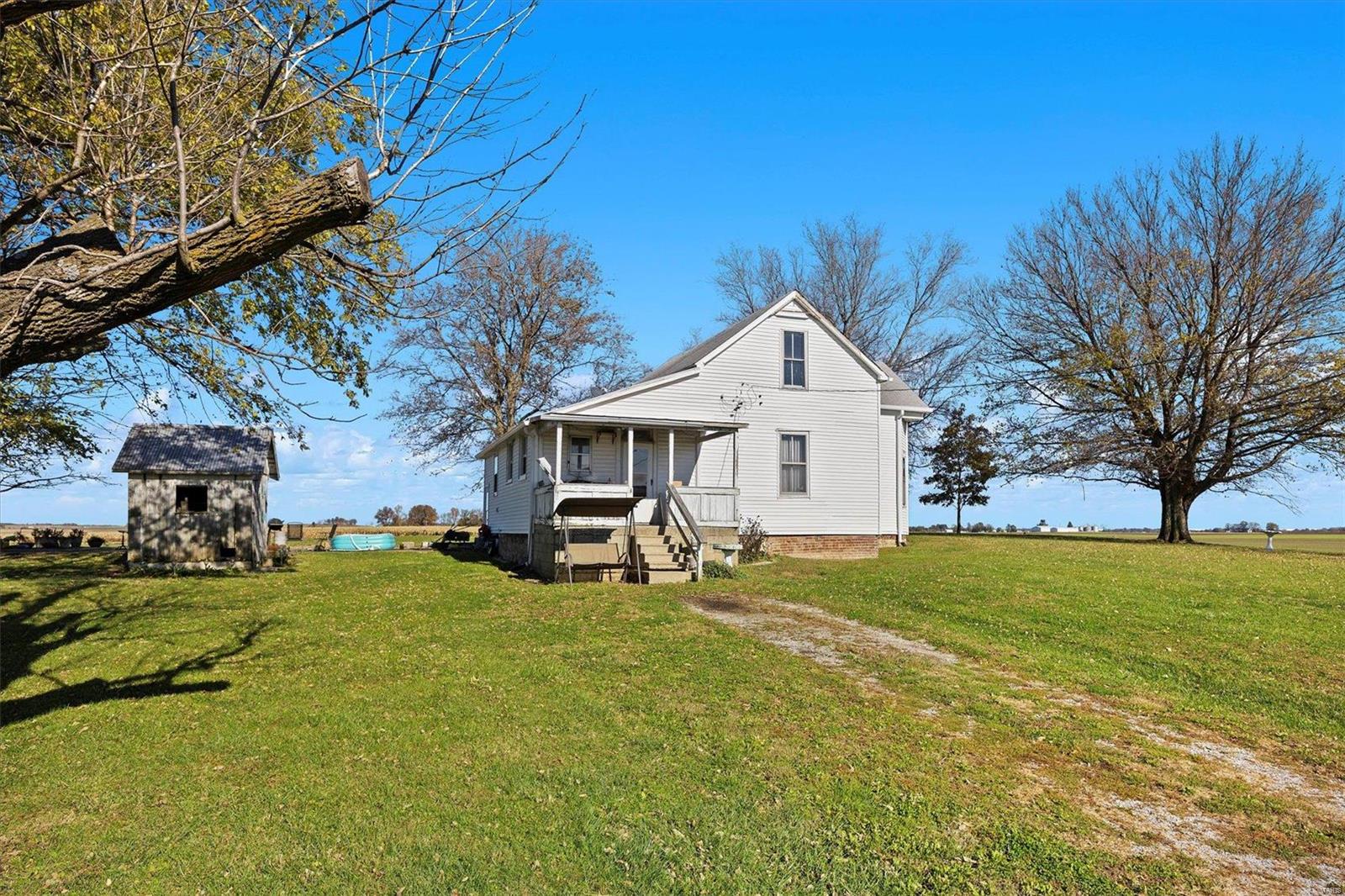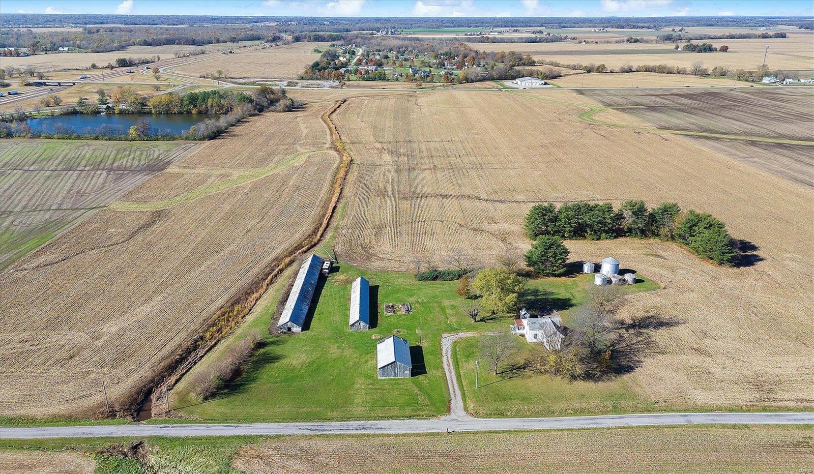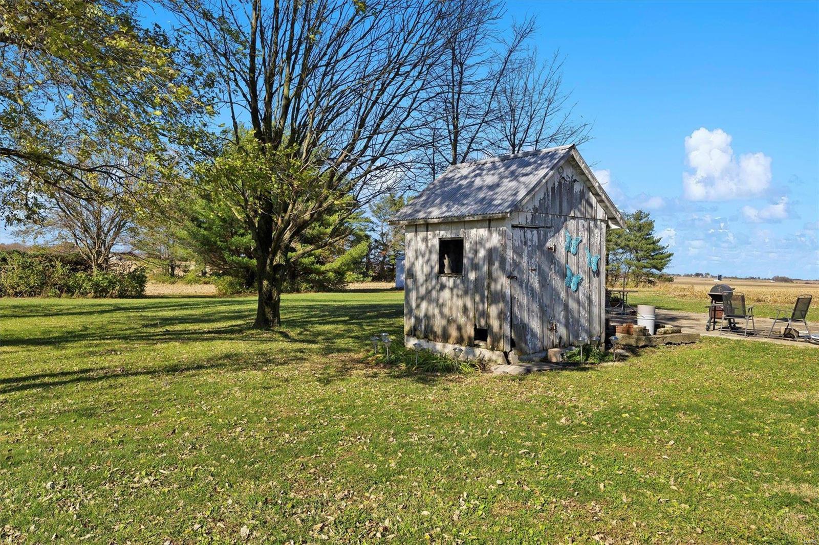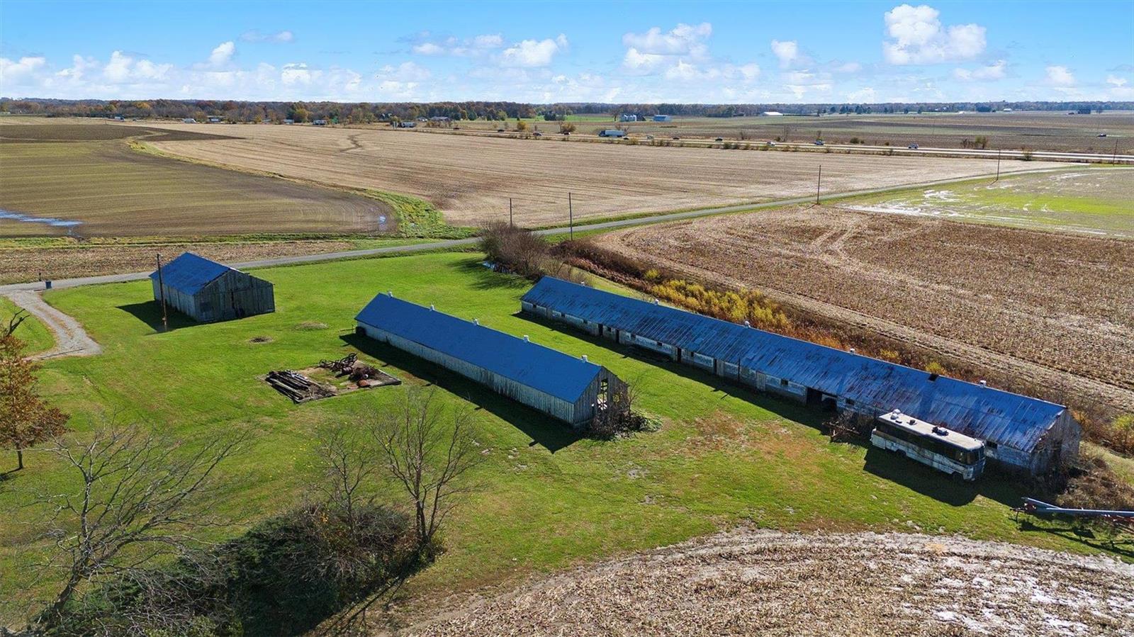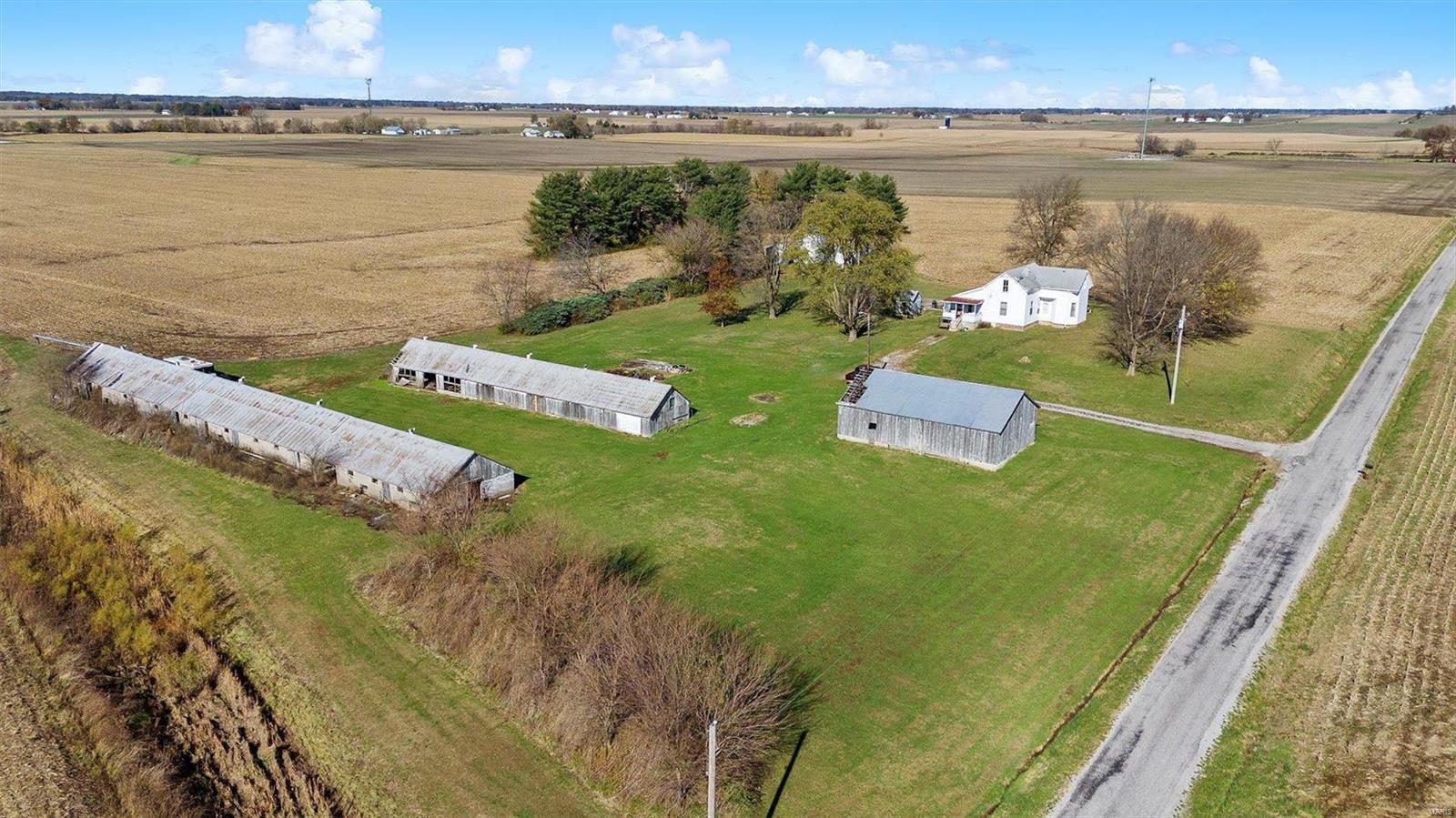 Discover the possibilities with this cozy 2-Bedroom, 1-Bathroom home situated on an expansive 3.5 +/-acre lot. The property features three versatile outbuildings, offering ample space for storage, workshops, or hobbies. This property is being sold as-is; the seller to make no repairs. Enjoy the peaceful setting and ample acreage while taking advantage of this unique opportunity. The grassy area is the property that is being sold; No farm ground is being sold. Parcel will have to re-surveyed. Schedule your viewing today!
