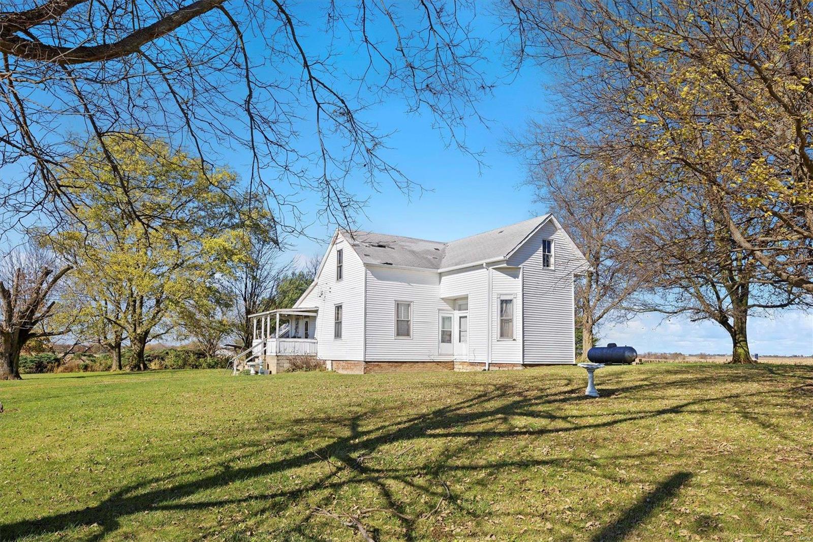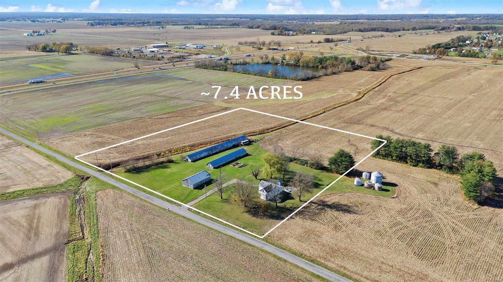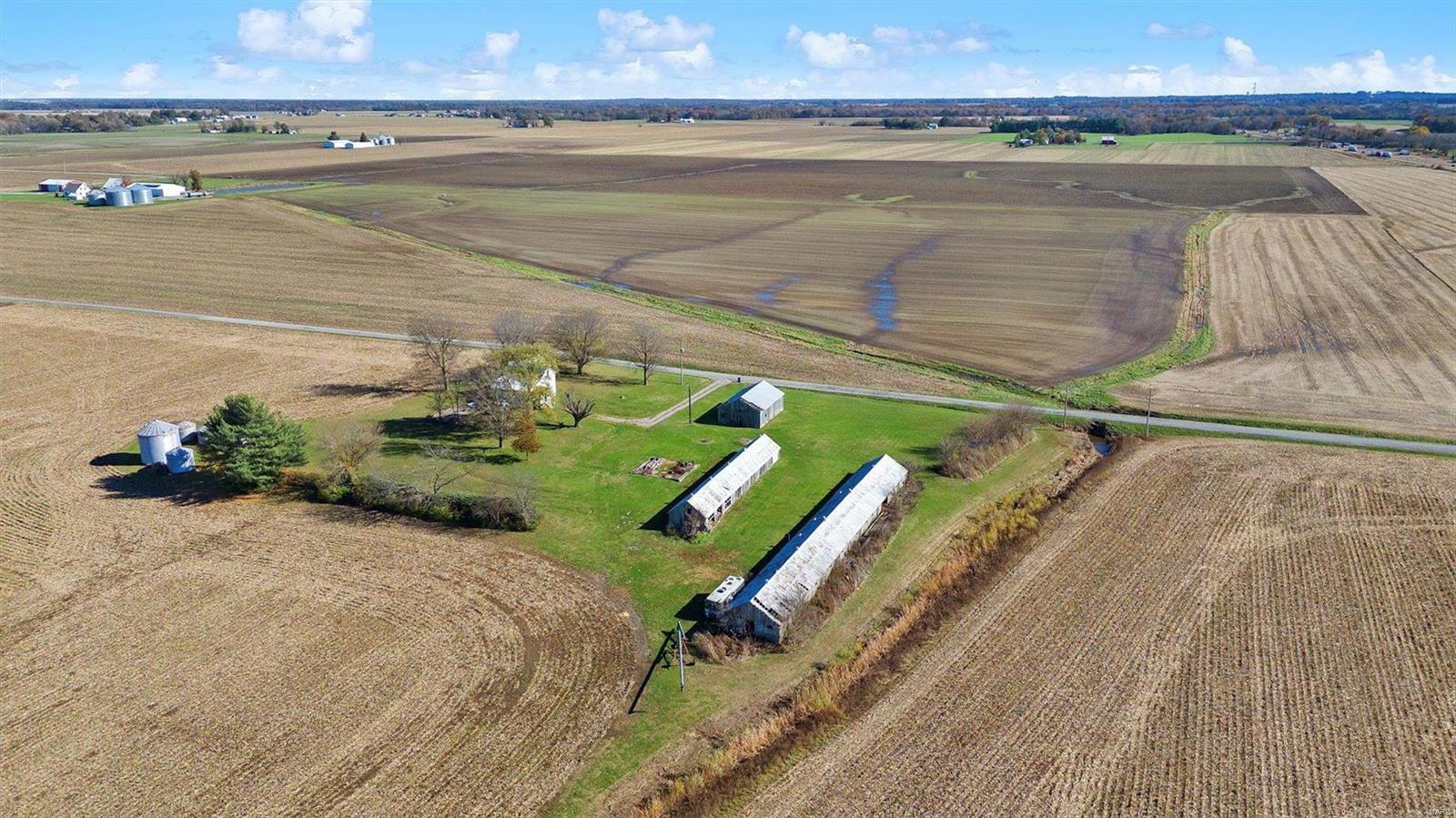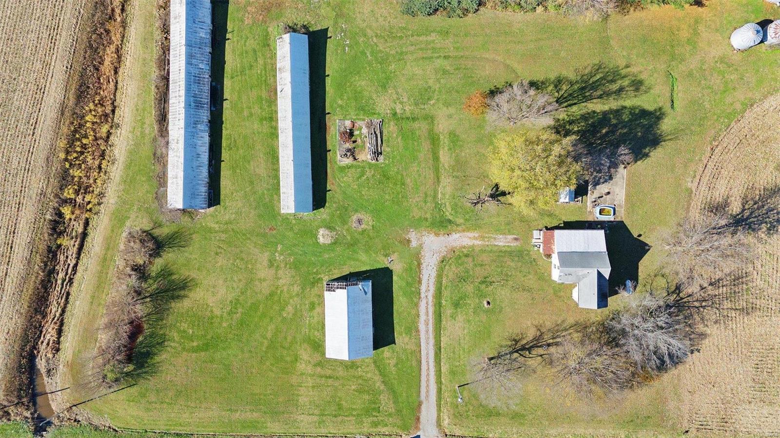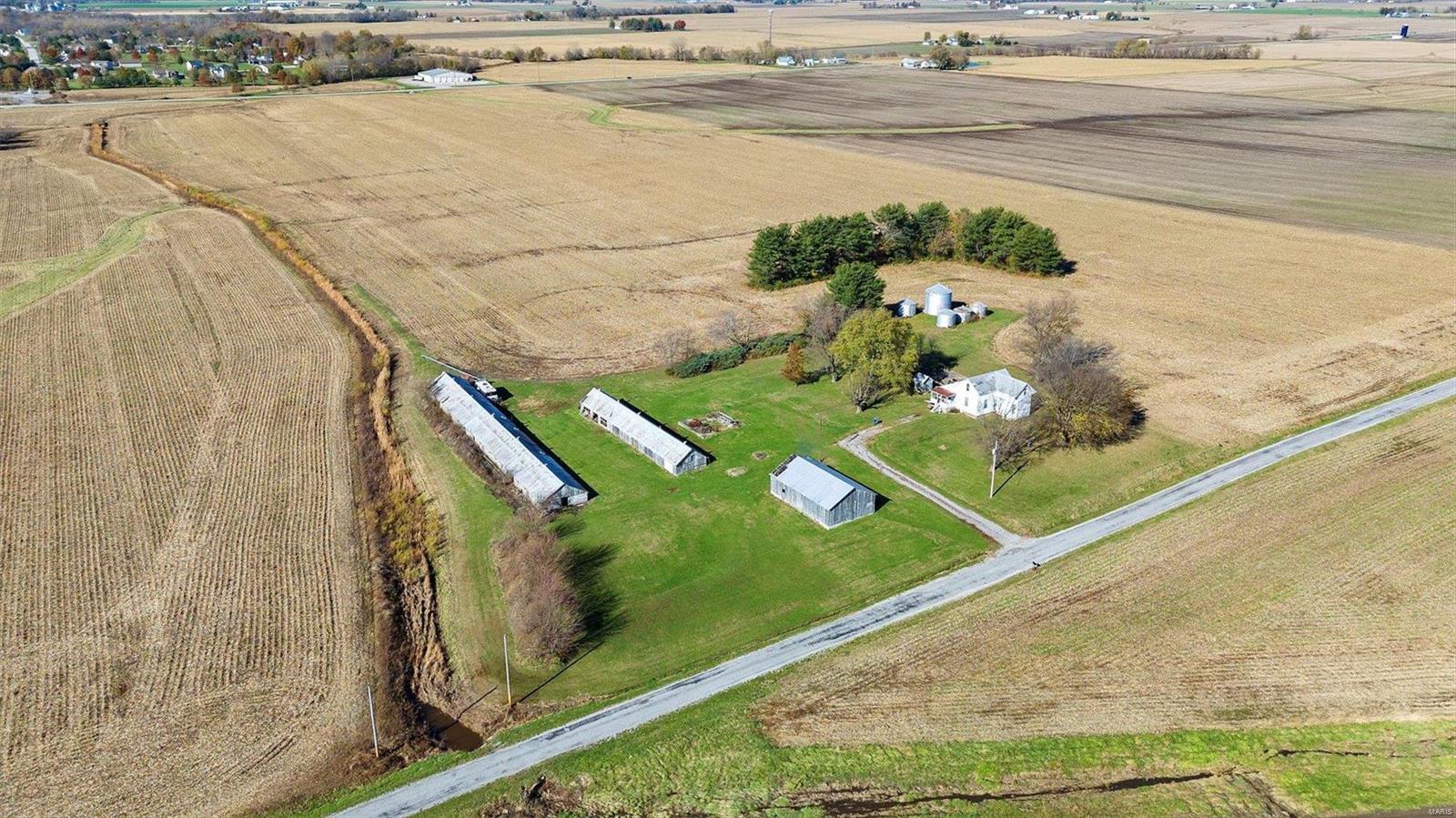 Discover the possibilities with this cozy 2-Bedroom, 1-Bathroom home situated on an expansive 3.5 +/-acre lot. The property features three versatile outbuildings, offering ample space for storage, workshops, or hobbies. This property is being sold as-is; the seller to make no repairs. Enjoy the peaceful setting and ample acreage while taking advantage of this unique opportunity. The grassy area is the property that is being sold; No farm ground is being sold. Parcel will have to re-surveyed. Schedule your viewing today!