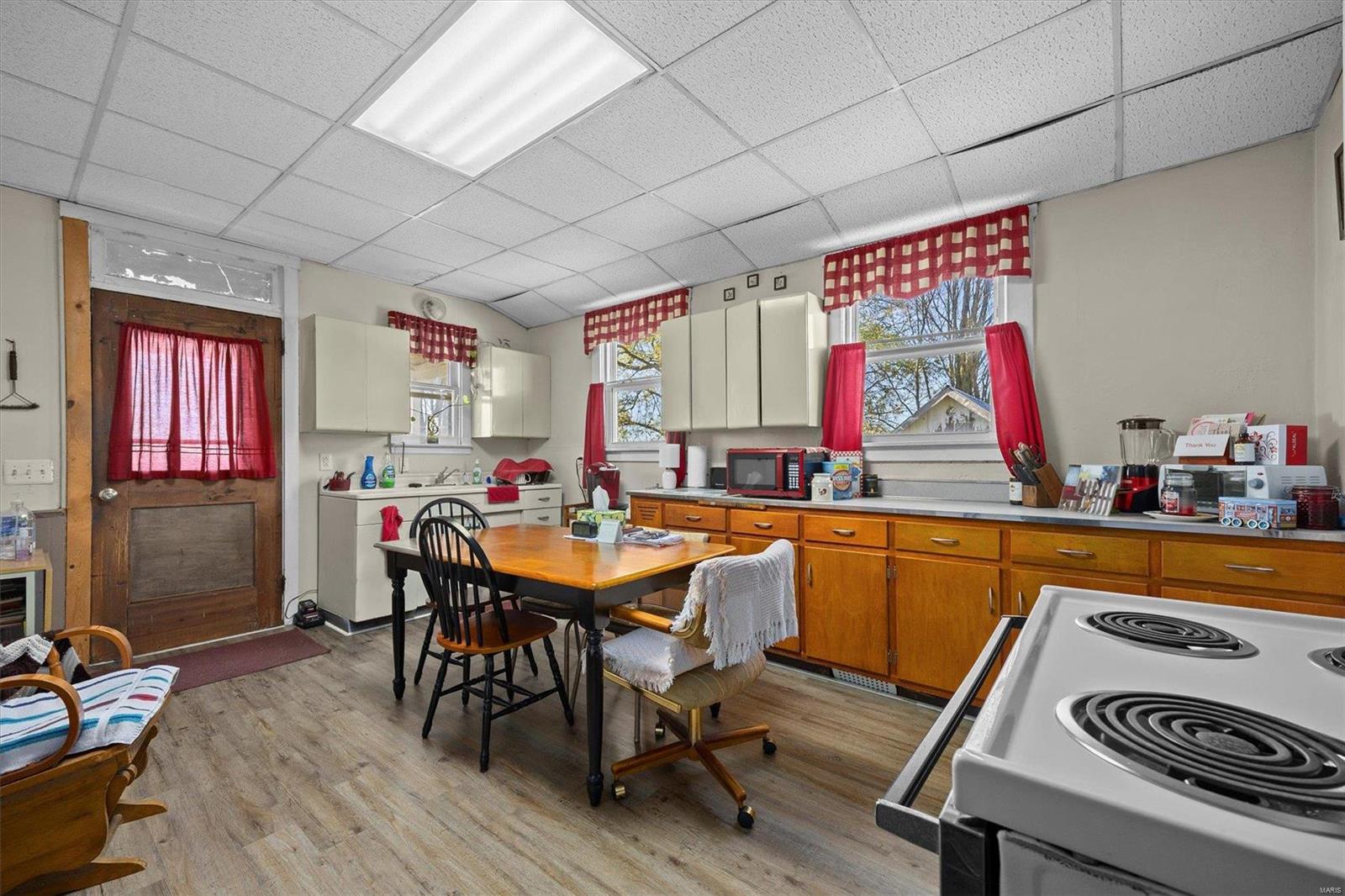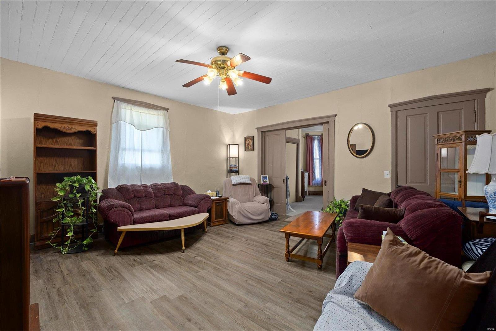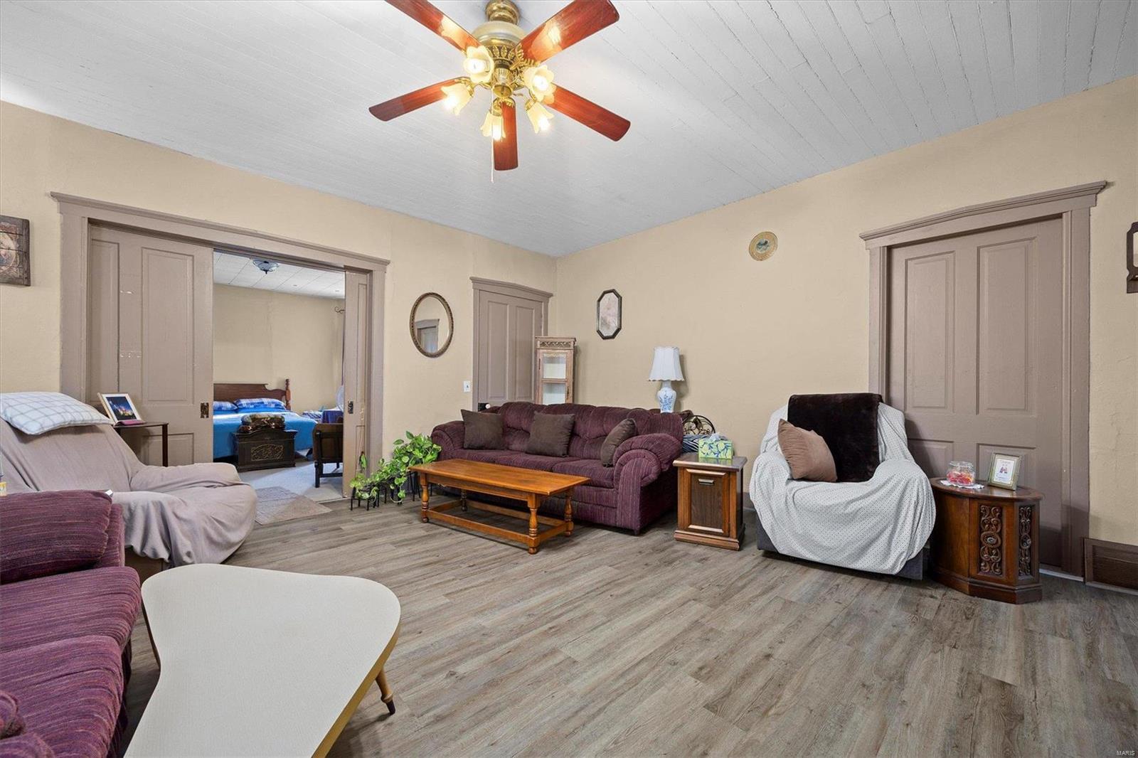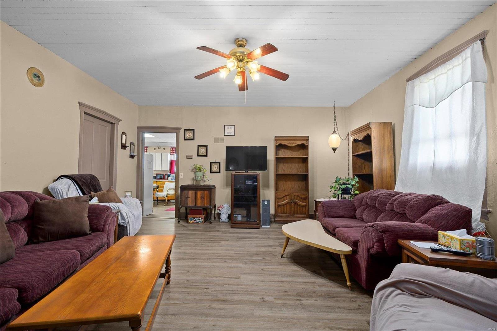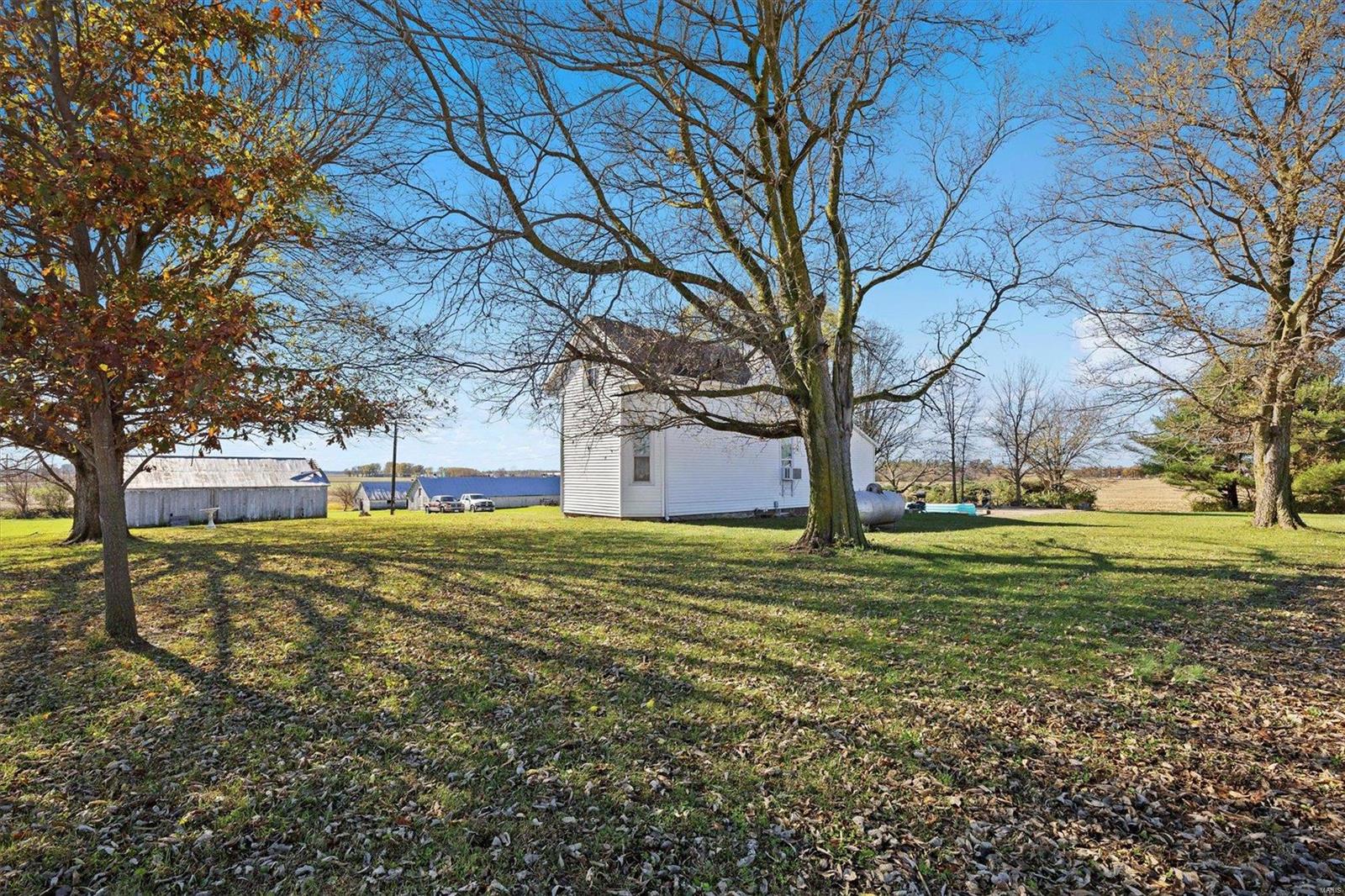 Discover the possibilities with this cozy 2-Bedroom, 1-Bathroom home situated on an expansive 3.5 +/-acre lot. The property features three versatile outbuildings, offering ample space for storage, workshops, or hobbies. This property is being sold as-is; the seller to make no repairs. Enjoy the peaceful setting and ample acreage while taking advantage of this unique opportunity. The grassy area is the property that is being sold; No farm ground is being sold. Parcel will have to re-surveyed. Schedule your viewing today!