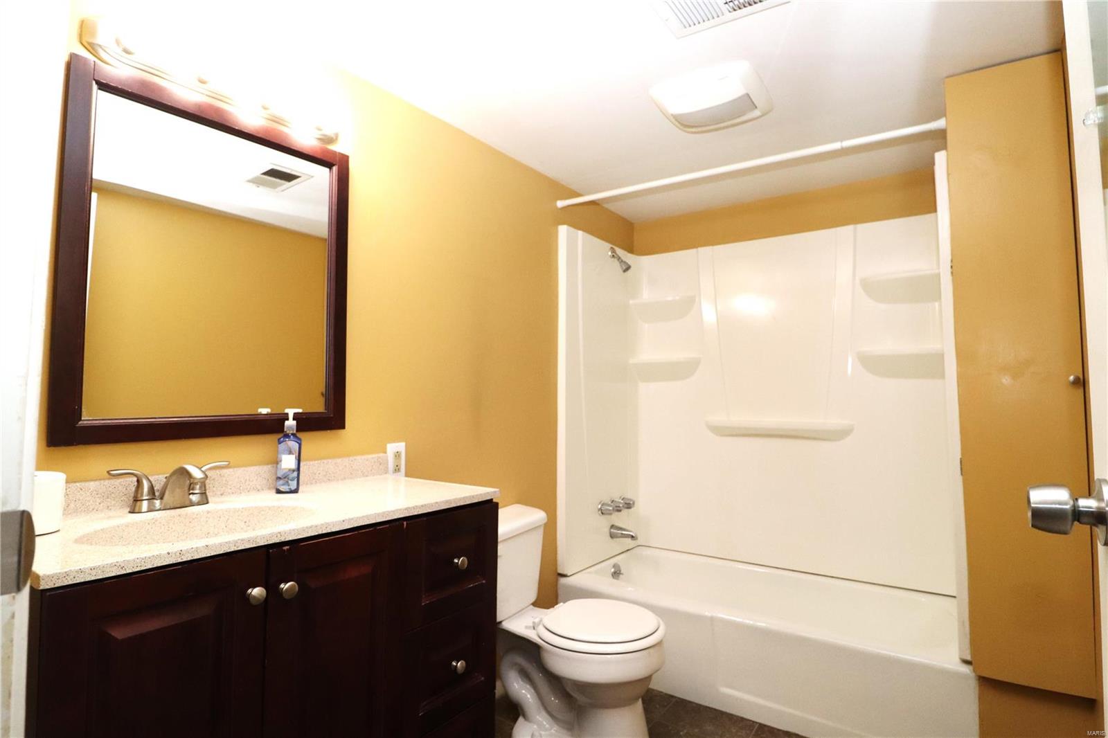 Experience EASY & SIMPLE LIVING in this updated upper-level condo with a balcony, offering the perfect opportunity to own instead of rent. This cozy yet spacious unit features 2 bedrooms & sizeable closets for your convenience. The heart of the home is a large, welcoming great room, complemented by a dining area & galley kitchen Primary bedroom offers a walk-in closet for added storage solutions. Convenience is further enhanced w/under-condo parking featuring remote access & secured storage unit. PRIME LOCATION w/easy interstate access, downtown St. Louis, SIUE, SAFB, hospitals, Amazon facility, Refinery & more. Indulge in the ultimate conveniences of the area, including nearby shopping, dining, & entertainment options. This is a must see Your monthly association fee of $280 covers the following: Water, sewer, trash, lawn maintenance, snow removal, roof and garage repairs, and property insurance for the building and grounds