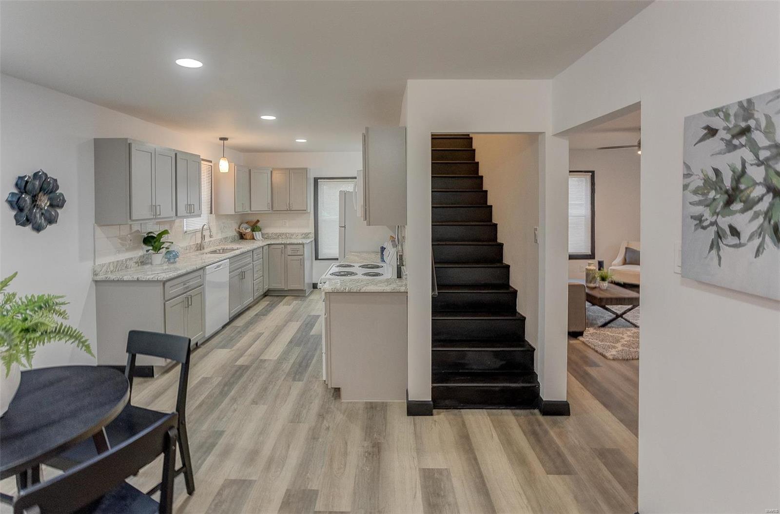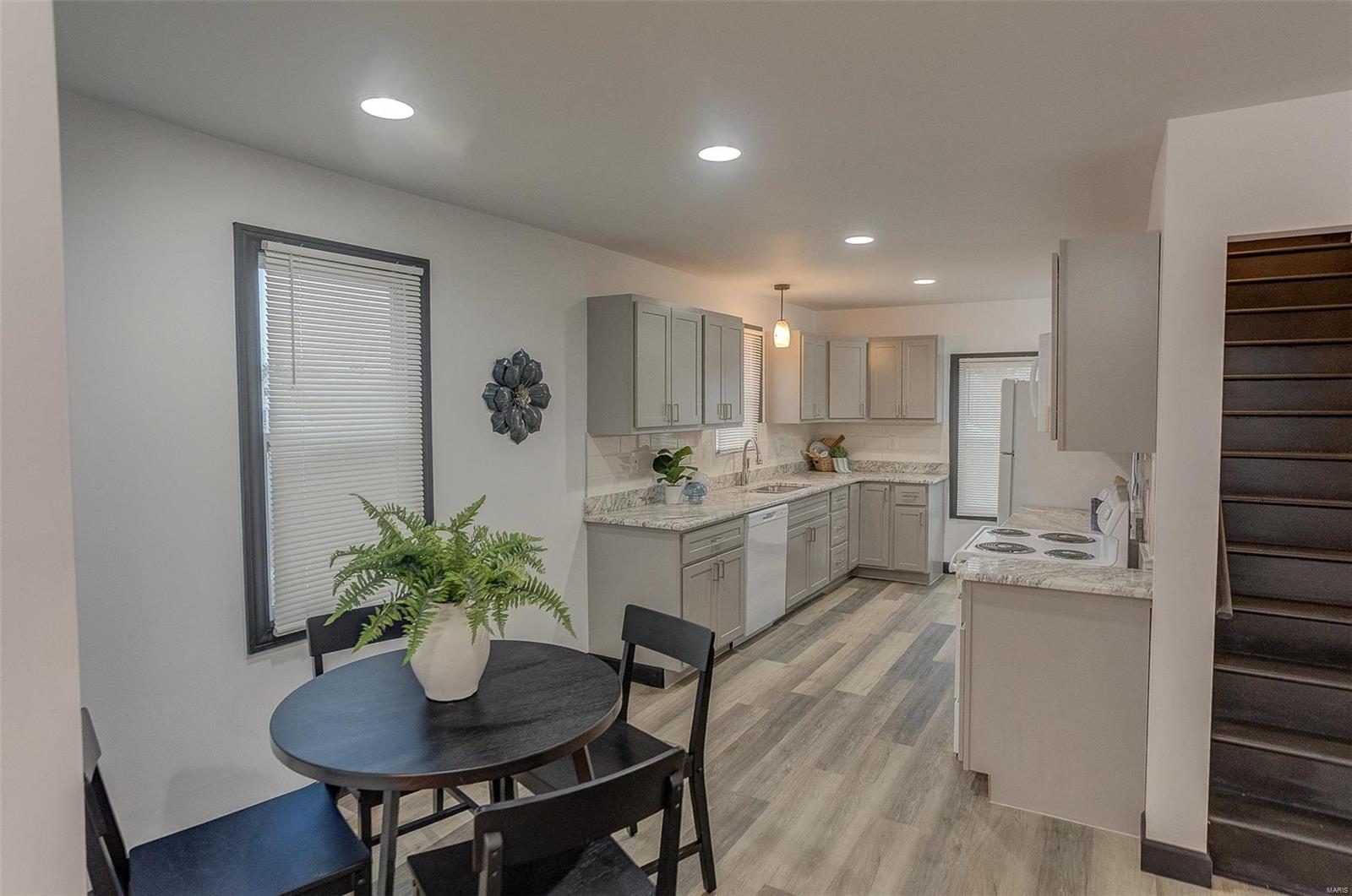 Move right into this beautifully updated 1.5-story home featuring three bedrooms, one bath, and off street parking. Every detail has been thoughtfully renovated, ensuring modern comfort while maintaining classic charm. Major updates include all vinyl replacement windows, electrical with new 200 amp panel, plumbing, and professional waterproofing with sump pump (back up battery included). Inside, the main level boasts new flooring, fresh paint, new trim, and updated fixtures. The fully remodeled kitchen shines with custom cabinetry, quartz countertops, and included appliances. The living room feels bright and open with ample natural light. Two spacious bedrooms, and a beautifully updated full bath complete the main floor. Upstairs you'll find a third bedroom, perfect for guests or a private retreat. The dry basement also offers new HVAC, and an egress window for future expansion. With nothing left to do but move in and enjoy, schedule your appointment to see it yourself.