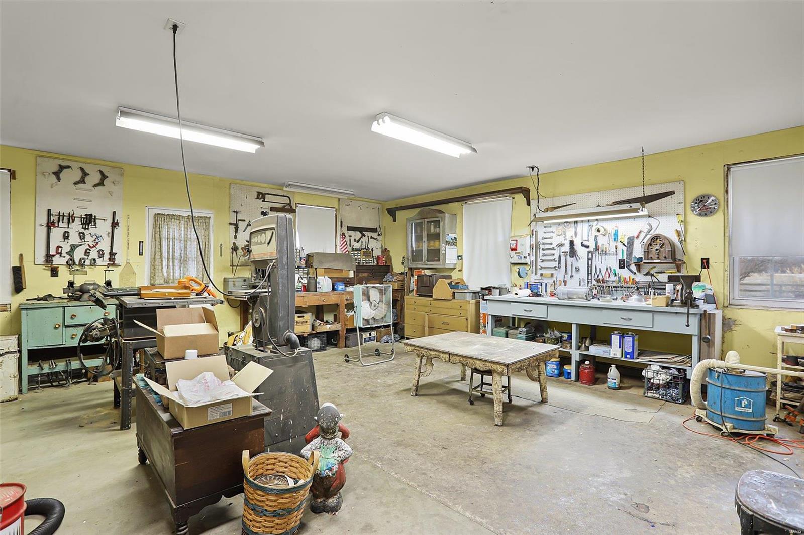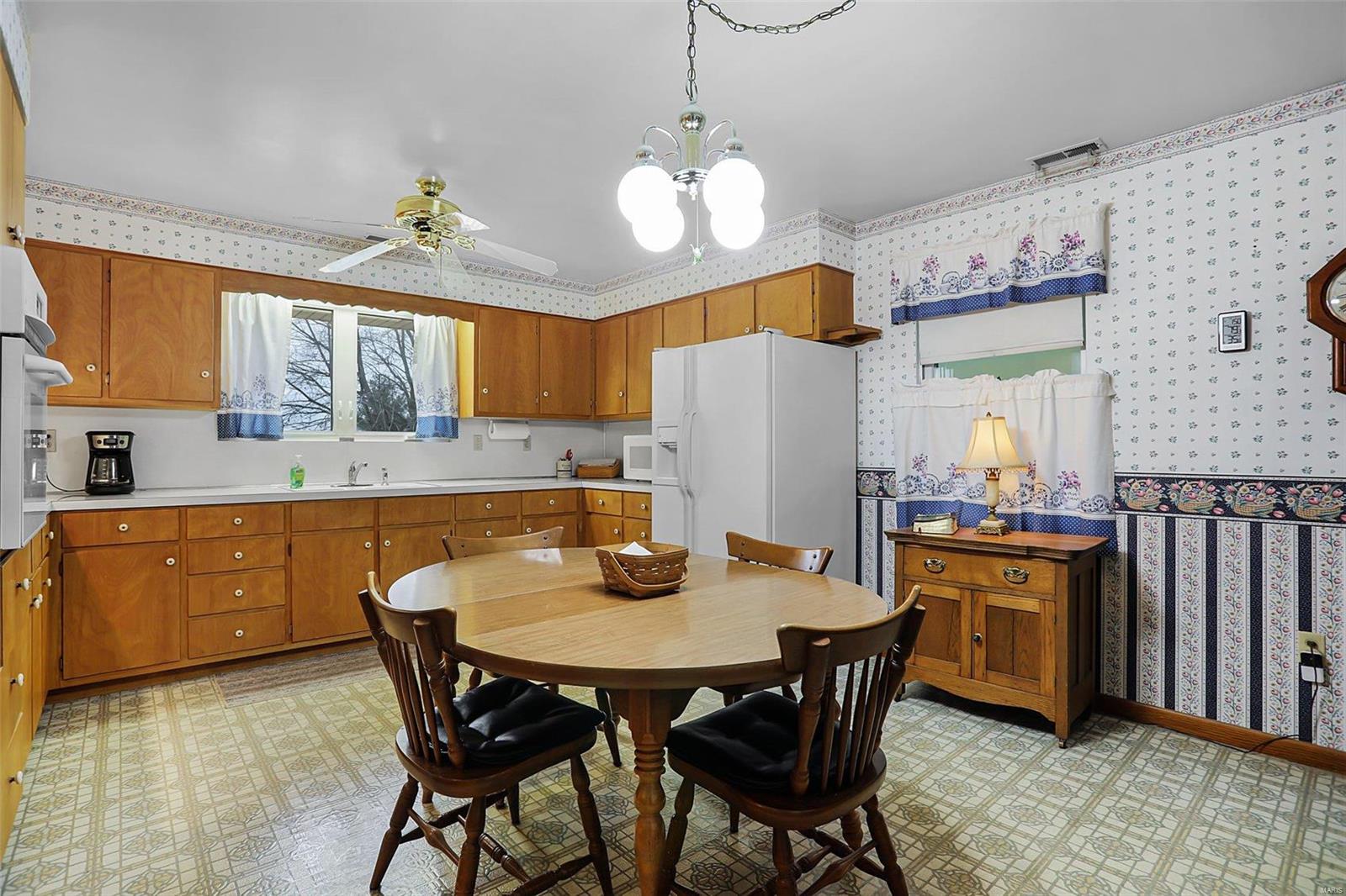 This quality built, all-brick 3 bedroom, 1.5 bath home, built in 1962, situated on 3 acres has so much to offer! Having only 2 owners, this property has been lovingly maintained, features a classic design w/a finished basement that encompasses an additional kitchenette. The 22x15 bright & cheery breezeway adjoins the home to the 2 car garage and 26x20 heated workshop that's perfect for hobbies, storage, or a small business. Just beyond the breezeway you find your concrete patio w/retractable awning. Zoned B-2, the possibilities are endless! This versatile property includes a large barn w/amazing loft, additional parking area, a storefront/showroom, and presents unique opportunities for a home-based business or creative venture. Properties like this don't come around often, make your appointment today! Being sold As-Is.