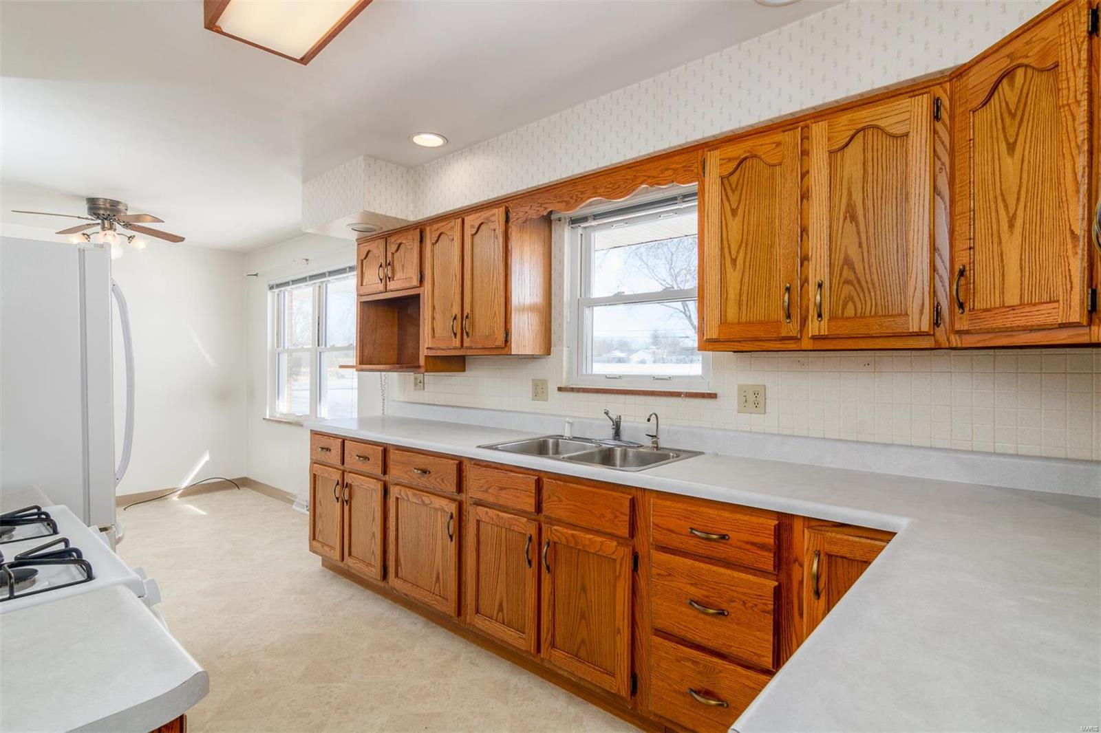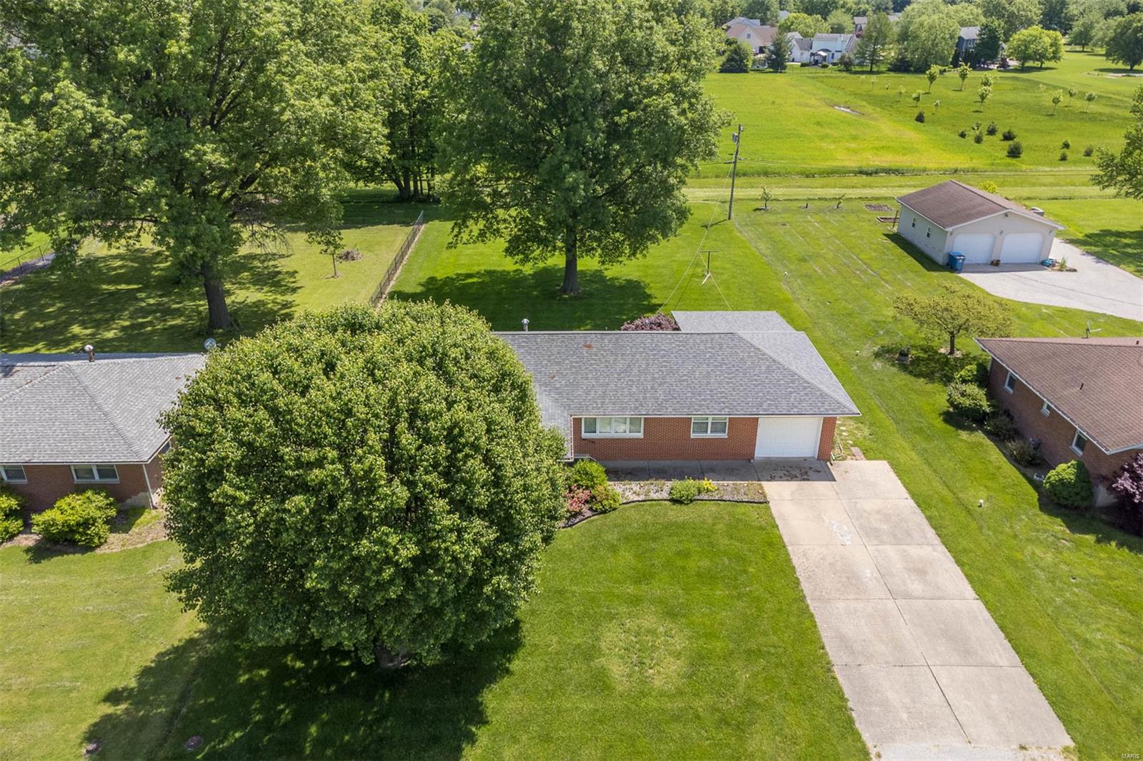 Welcome to this beautifully maintained, all brick 3 bedroom/1 bath home located on approx. 1/2 acre outside the city limits of Highland. This home features not only a spacious living room but also a family room on the main level, 3 generous sized bedrooms and a kitchen/dining room with refrigerator and gas range included! The full unfinished basement is perfect for storage, entertainment or could be finished. The all brick exterior offers durability and low maintenance, while the prime location ensures easy access to schools, parks, shopping and dining. There is an additional shower in the basement. Don't miss the chance to view this clean, move-in ready home. Selling 'as is'.