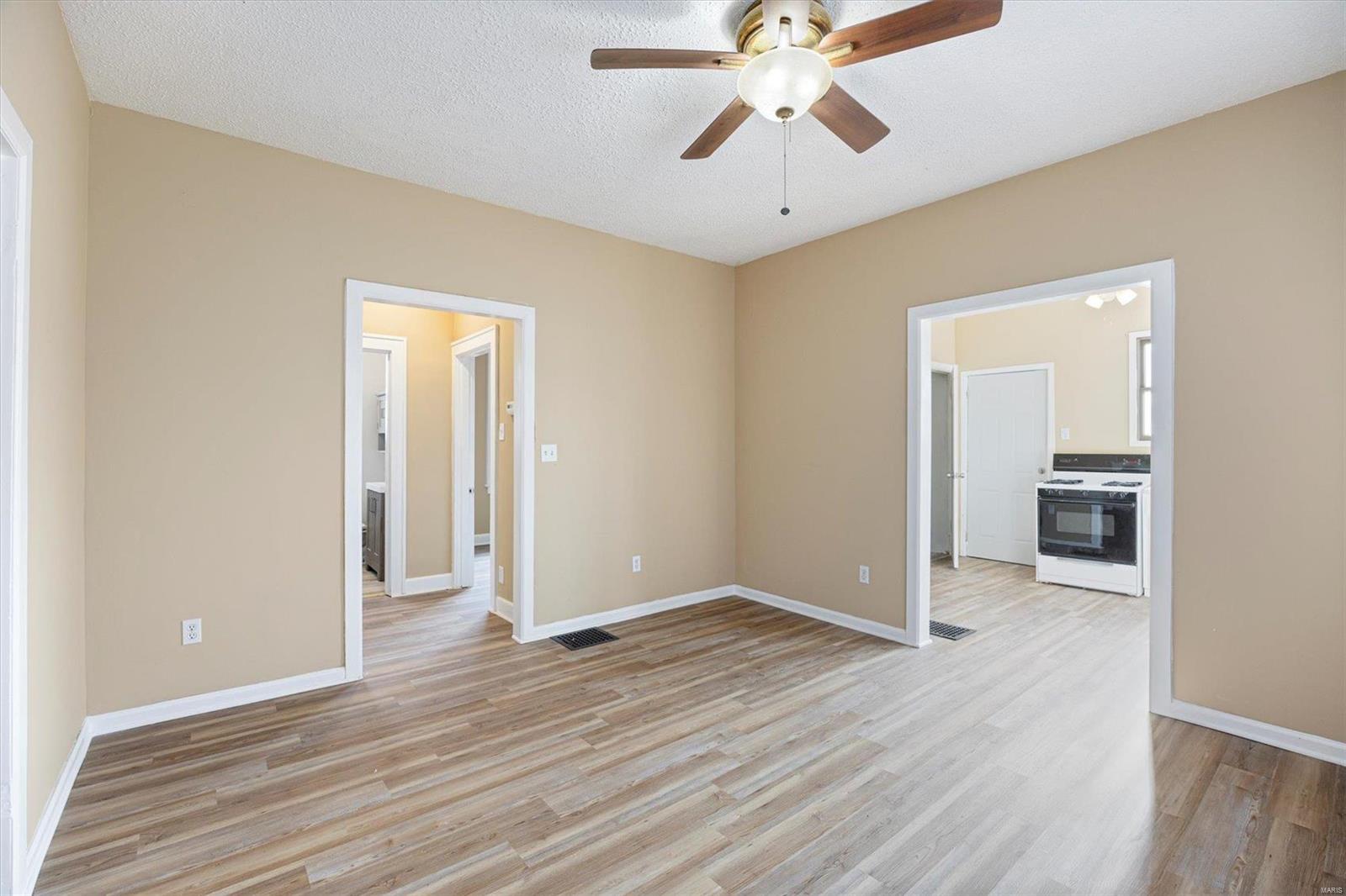Charming Move-In Ready Bungalow with over 1400 sqft in Granite City! Step into this beautifully updated 2-bedroom (potentially 3-bedroom), 1-bathroom home with character and modern touches throughout! From the moment you walk in, you'll appreciate the tasteful updates throughout, including fresh paint, beautifully finished wood floors and newly updated bathroom. The living space flows seamlessly into the formal dining room and an updated kitchen that shines with ample storage and sleek countertops, perfect for your culinary adventures. Upstairs has a large bedroom with an additional bonus that would be the perfect office space. The full basement provides plenty of storage, room to customize, and even includes a washer and dryer for added convenience. Outside, the partially fenced yard offers a safe and secure space for your furry friends to roam. Water heater and Furnace/AC are brand new March 2025.