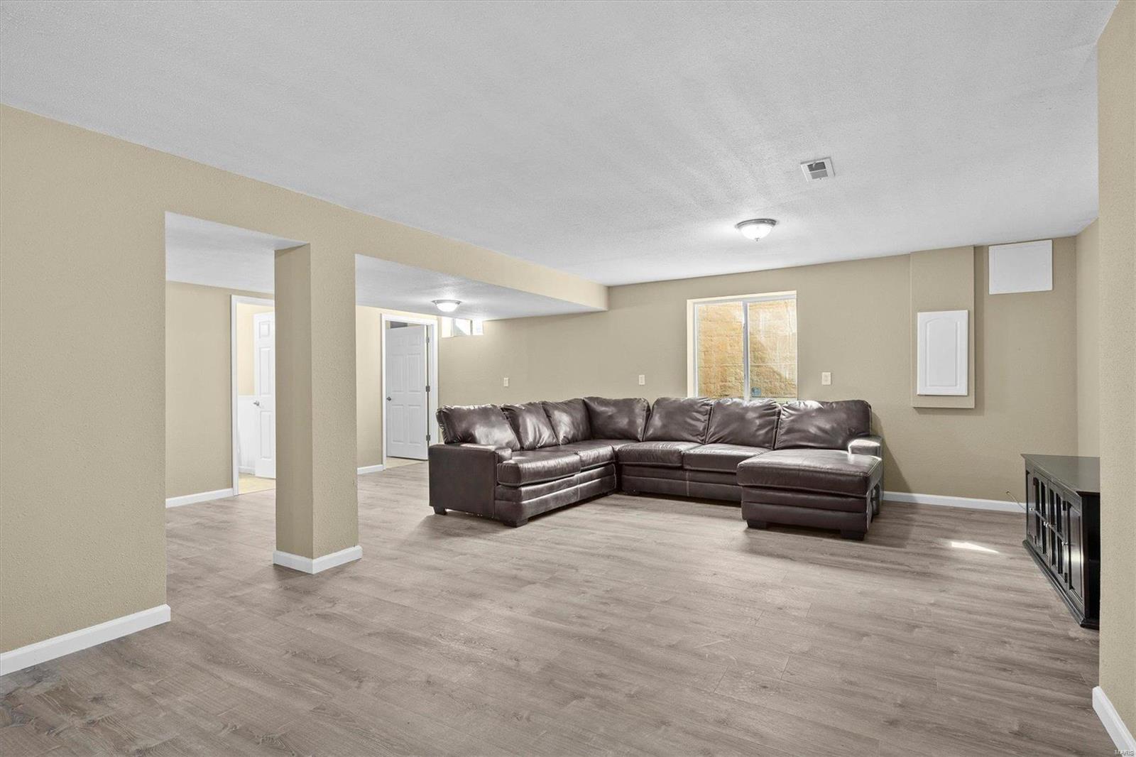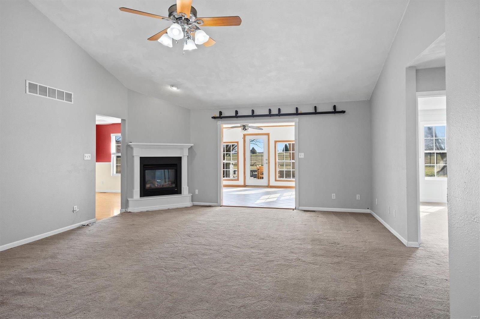 Nestled on over 2 acres, this beautiful 3 bedroom, 2-1/2 bath home offers the perfect blend of comfort and space. The split-bedroom floor plan ensures privacy, while the main floor laundry adds everyday convenience. Start your mornings in the cozy sunroom, the perfect spot to enjoy your coffee while soaking in the peaceful views. Cozy up to the fireplace in the large great room. The finished basement provides endless possibilities - whether you need a family room, game room, exercise space or even bonus bedrooms with egress windows, the finished basement is sure to please. When its time to entertain, step outside to your expansive outdoor living area designed for gatherings, BBQs or simply unwinding under the stars at the gas firepit. This is the retreat you've been waiting for so schedule your showing today!