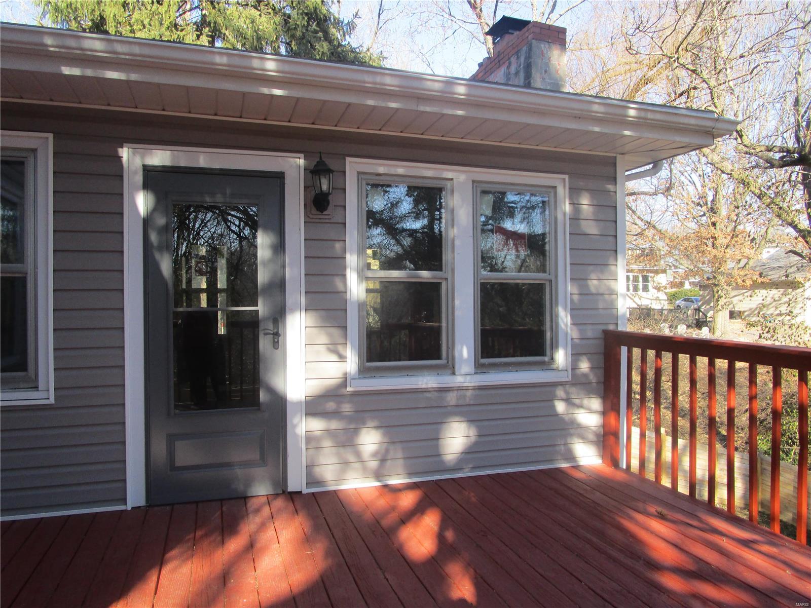 Fully updated 3 bed-2 bath bungalow in desired west end neighborhood. The private fully fenced yard completes the peaceful setting. Huge deck for entertaining or viewing nature. Even bigger patio accessed from walkout basement! Multi-level yard gives many options. 2 Living room areas and a large 2nd story suite plus 2 main level bedrooms provide flexibility for generational living. Kitchen is well appointed with handy dining area plus a pass thru window into great room with fireplace. New energy efficient windows, doors, updated flooring & freshly painted. Oversized 1 car garage has door to side yard with nice level area for extra parking. Driveway has side by side room for 2 cars. Front porch faces west towards St. Louis Arch & deck gets the Eastern morning sun! Many new windows bring in natural light. Open unfinished basement has laundry, glass block windows & new door that walks out onto spacious concrete patio under deck w/access to big multi-level yard Move in ready!