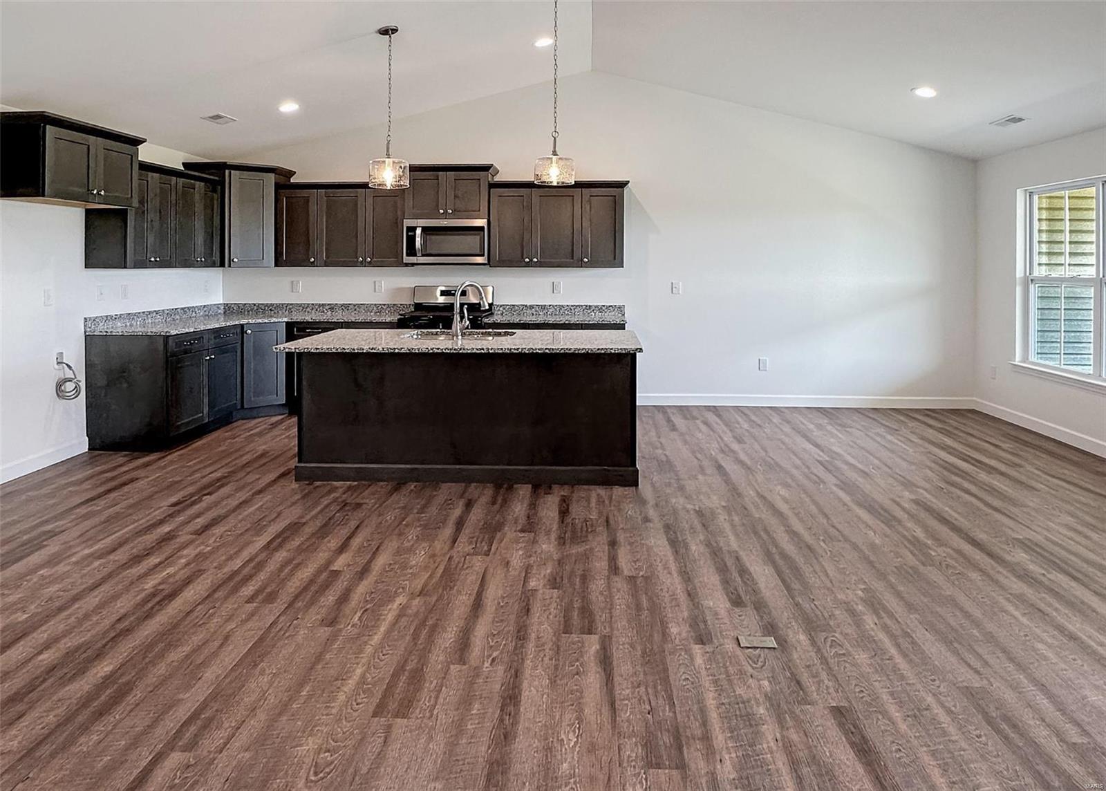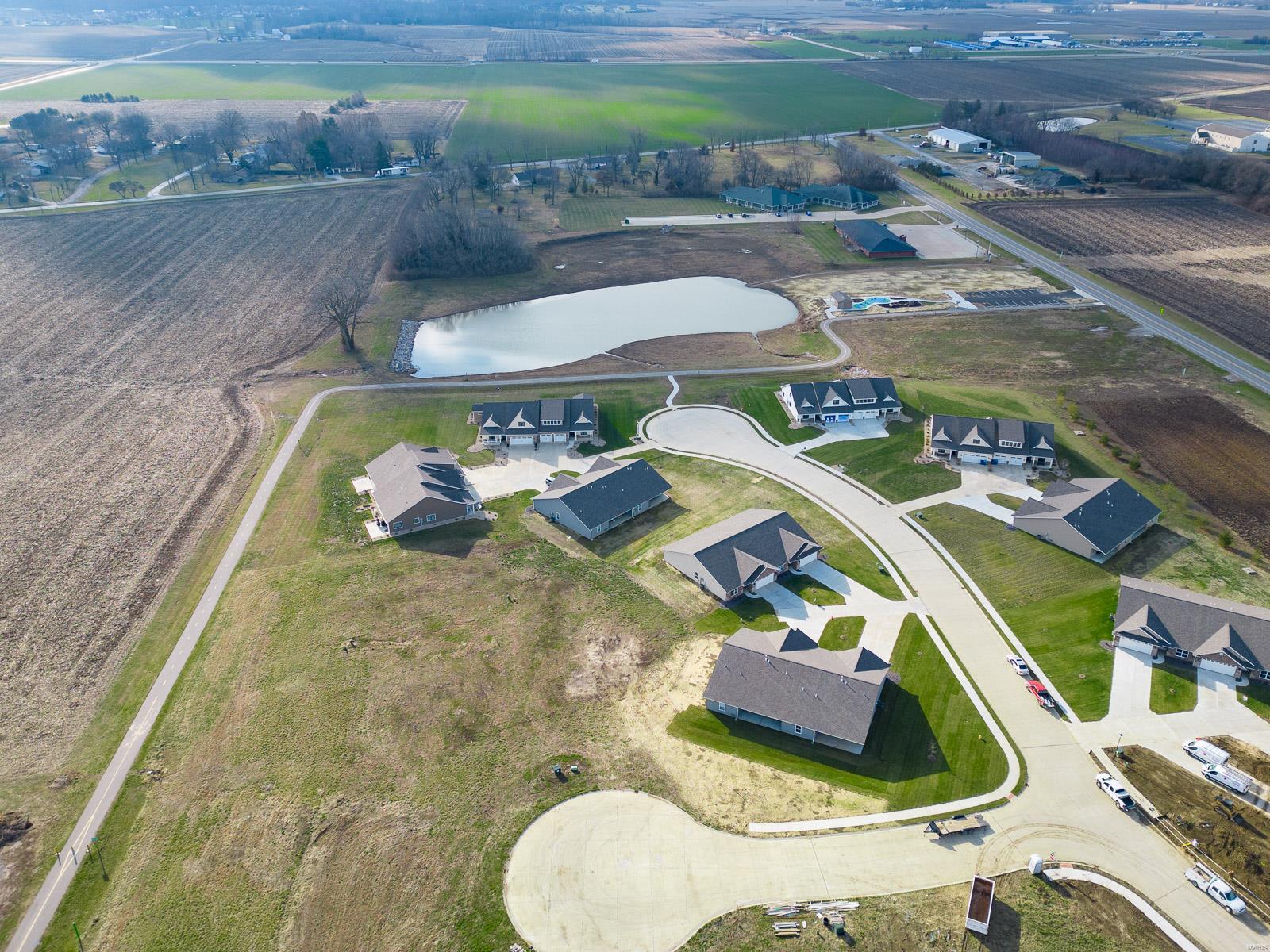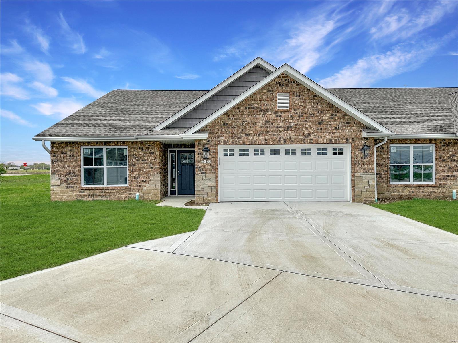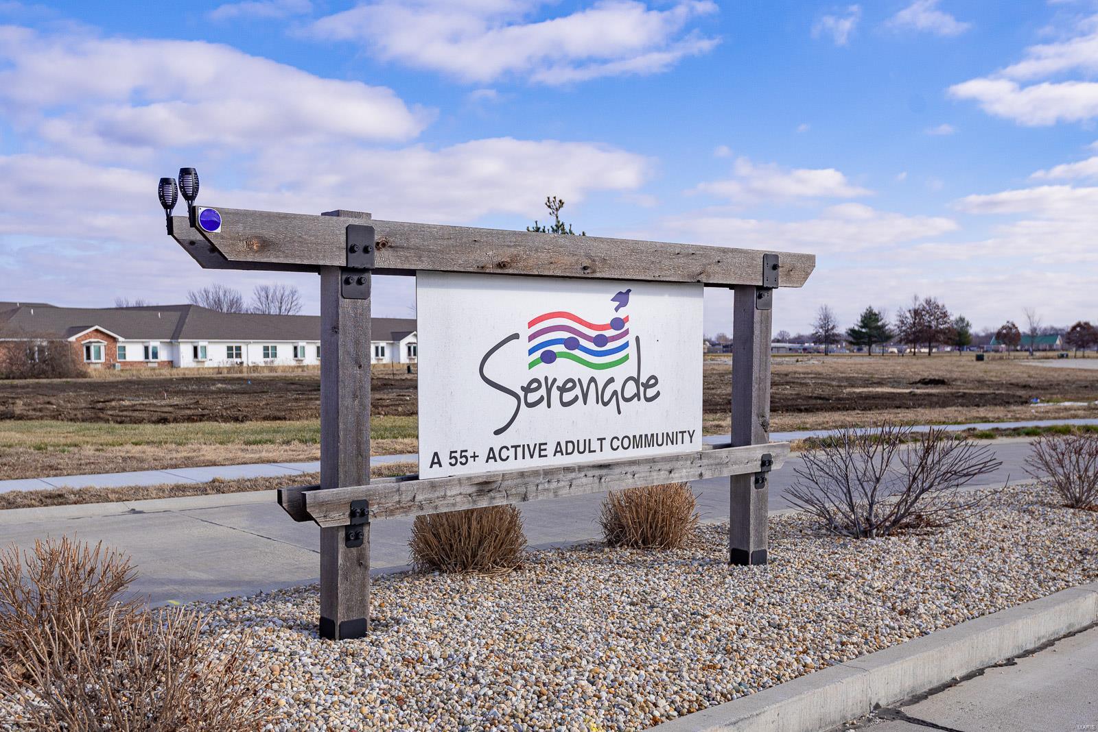 Take advantage of your opportunity to own an UPSCALE new construction villa in the 55+ Serenade Villas community. You'll immediately notice the quality-build when you pull up and see the beautiful brick and stone work on the front of the home. The interior features an OPEN FLOORPLAN with living room and built-in electric fireplace with shiplap surround, kitchen with center island, upgraded cabinetry and granite countertops, dining area, all under the vaulted ceiling offering a nice, airy feel. The master suite offers a bath with dual vanities, walk-in closet and a tiled shower. There's also a 2nd bedroom + 3rd bedroom/office option. Enjoy the outdoors and fresh air relaxing on your covered patio. Features include NO STEPS throughout the home, luxury vinyl plank flooring, 2-car garage with storage area and more. The location is ideal, near shopping, parks, STOCKED pond, walking trail, dining and interstates.
