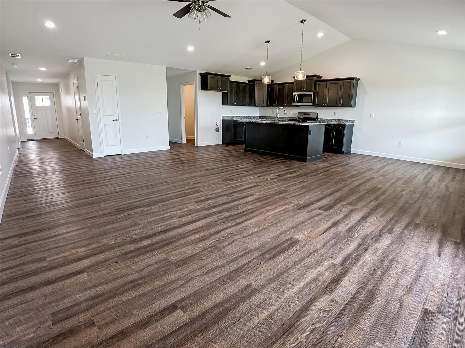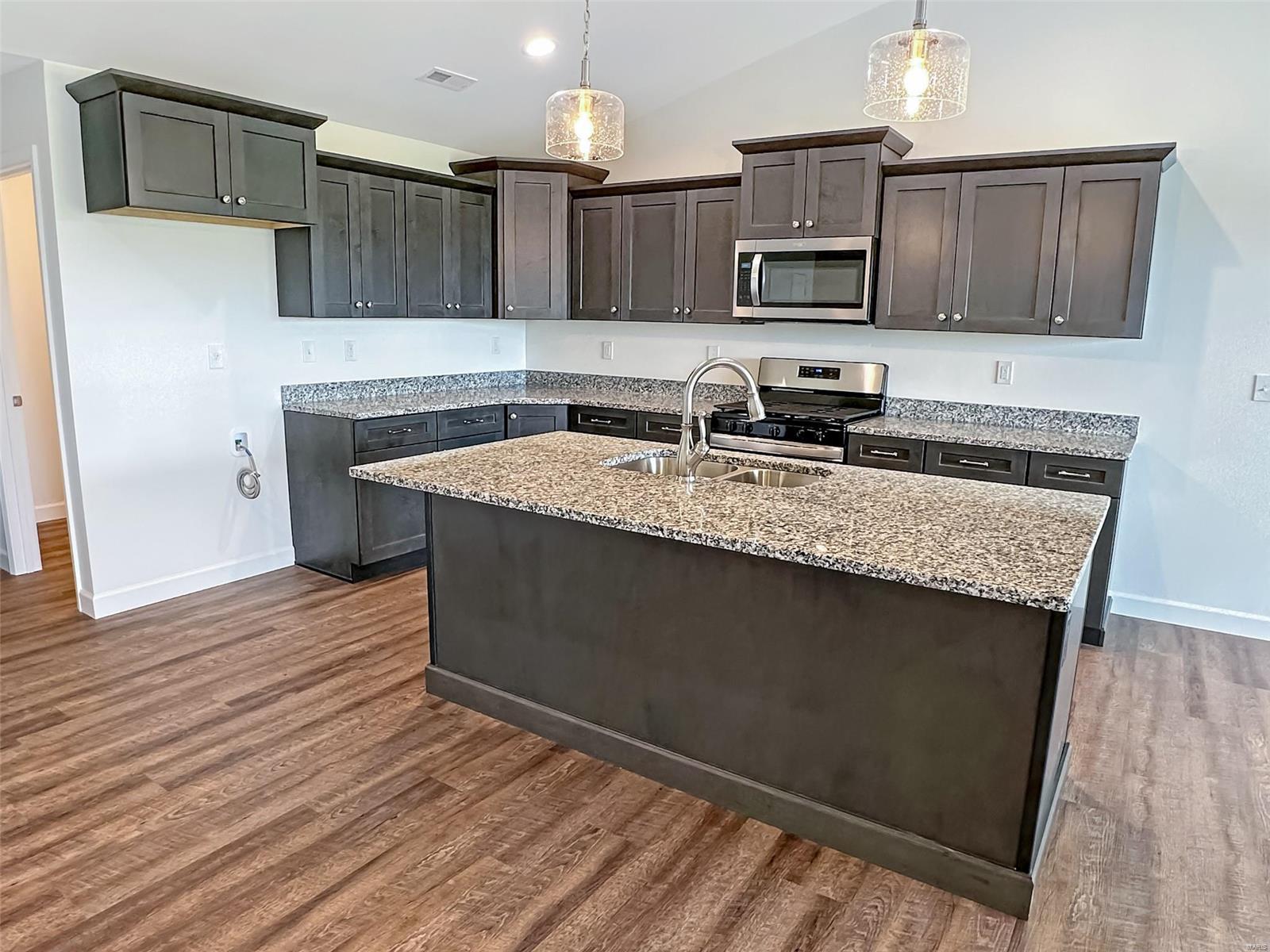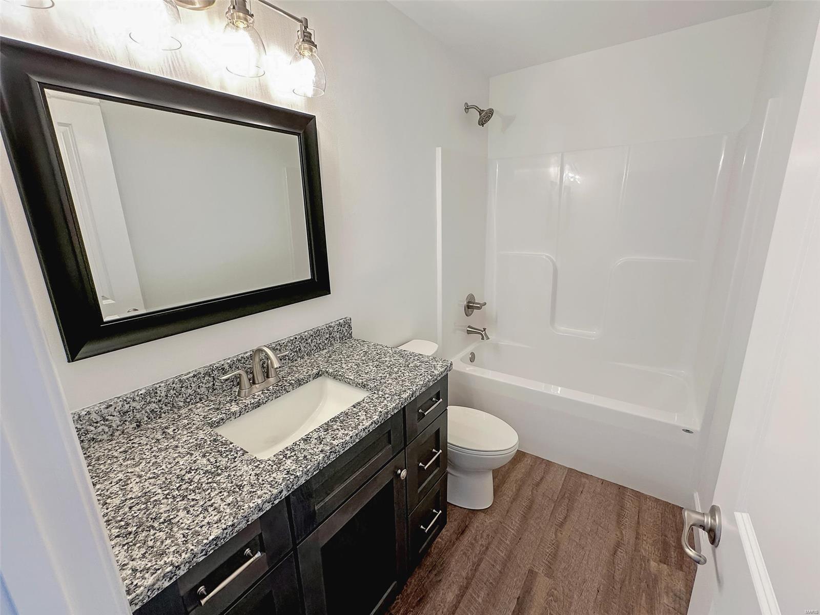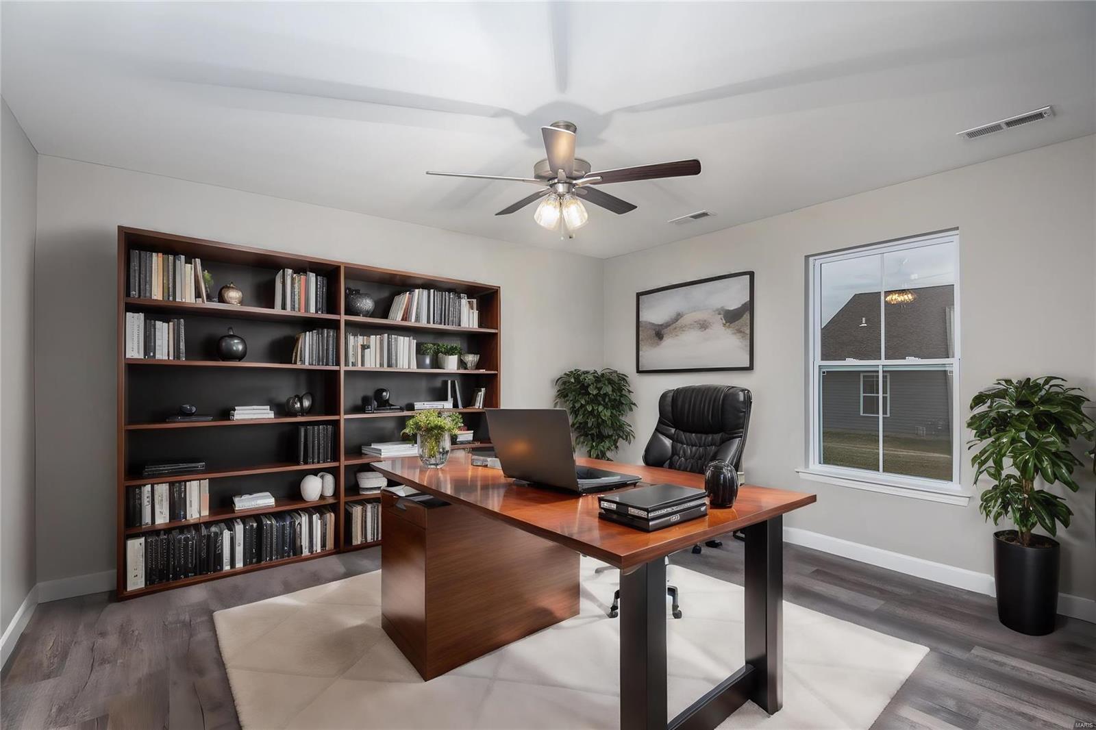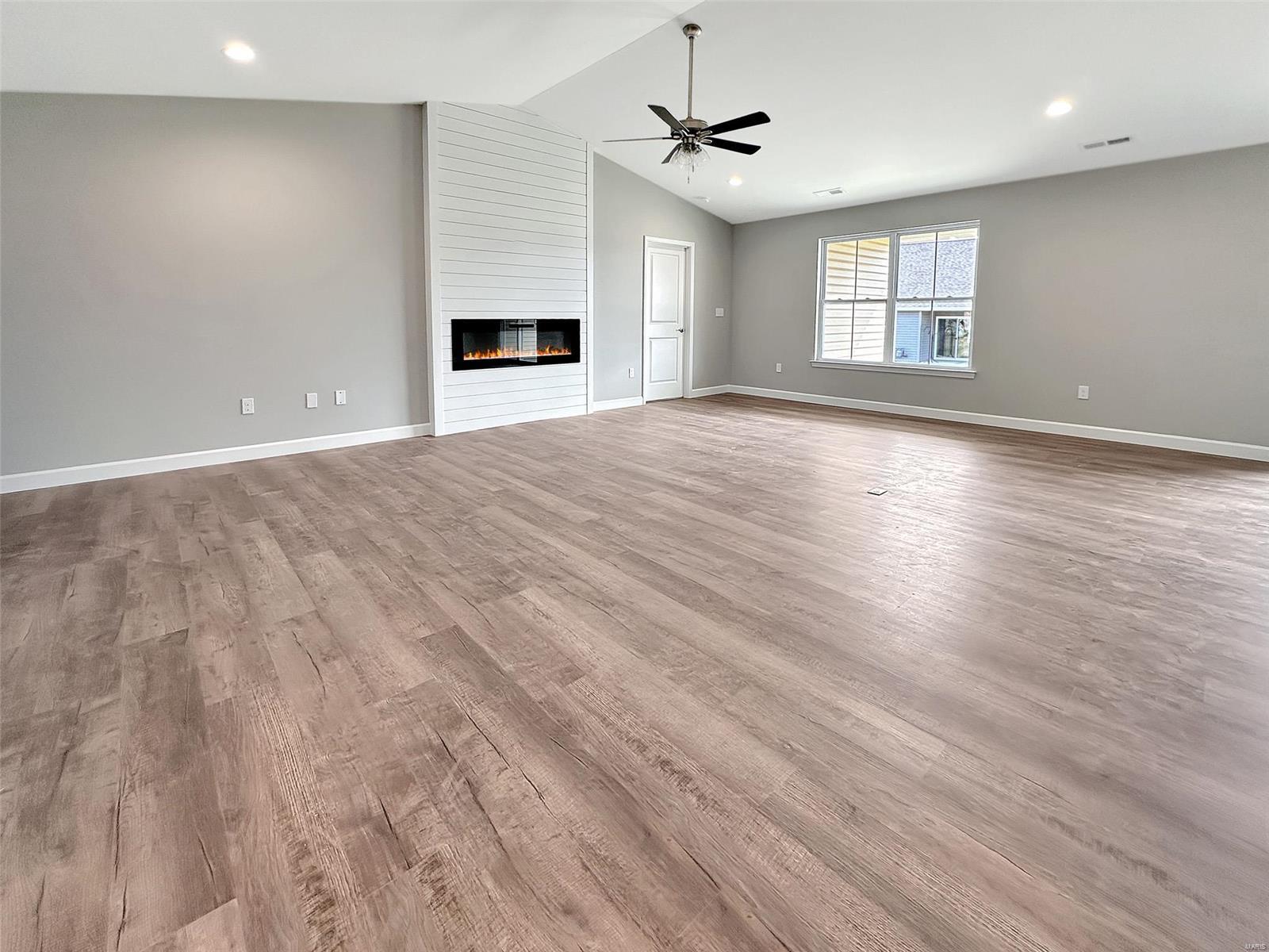 Take advantage of your opportunity to own an UPSCALE new construction villa in the 55+ Serenade Villas community. You'll immediately notice the quality-build when you pull up and see the beautiful brick and stone work on the front of the home. The interior features an OPEN FLOORPLAN with living room and built-in electric fireplace with shiplap surround, kitchen with center island, upgraded cabinetry and granite countertops, dining area, all under the vaulted ceiling offering a nice, airy feel. The master suite offers a bath with dual vanities, walk-in closet and a tiled shower. There's also a 2nd bedroom + 3rd bedroom/office option. Enjoy the outdoors and fresh air relaxing on your covered patio. Features include NO STEPS throughout the home, luxury vinyl plank flooring, 2-car garage with storage area and more. The location is ideal, near shopping, parks, STOCKED pond, walking trail, dining and interstates.