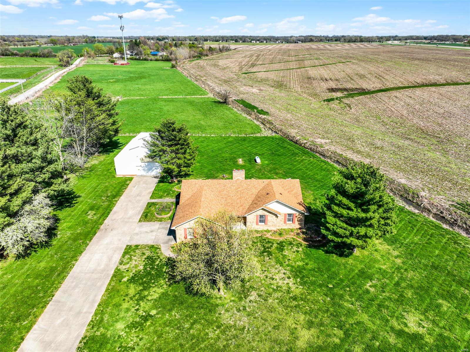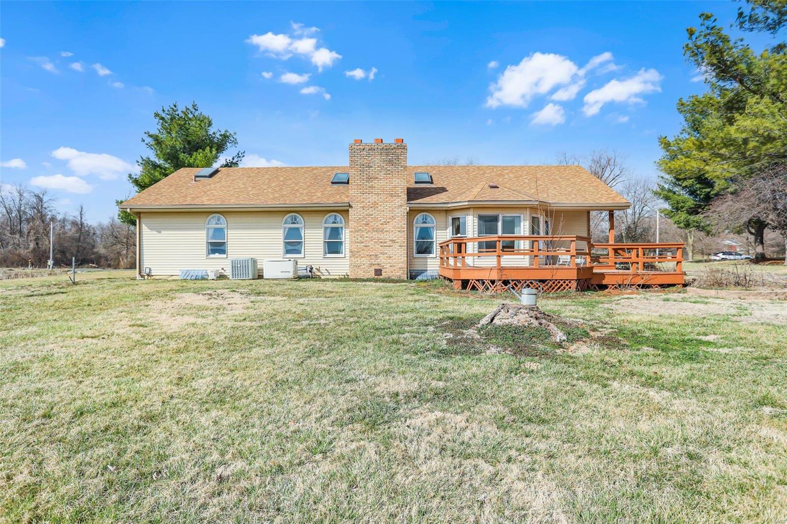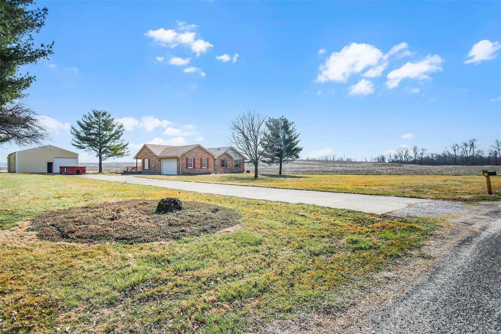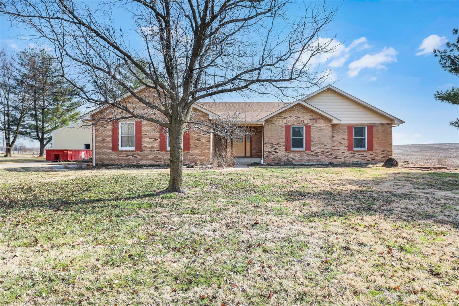 This is a lovely 3/4 brick ranch on 8 acres. Beautiful vaulted ceilings, skylights & tons of natural light throughout. Front porch welcomes you to entry foyer & spacious living room w/ wood fireplace & electric insert. Eat-in kitchen has center island w/ breakfast bar also open to the dining room - perfect space to entertain a large group. There are 3 main floor beds w/ potential for 2 add'l beds in LL. Primary bed has vaulted ceilings, walk in closet, & ensuite bath w/ double vanity, tub & shower. Main floor laundry off oversized 2-car garage. In the LL, there is an expansive family room w/ wrap around wet bar & electric fireplace. A half bath, 2 bonus rooms, & tons of storage space complete the LL. This home has been well maintained & cared for - also equipped with generator. Out the back door, large two-tiered deck w/ bench seating overlooking the sprawling yard. Close by, there is a 30x48 pole barn w/ electricity, workshop w/ concrete floor, & two industrial sized garage doors.