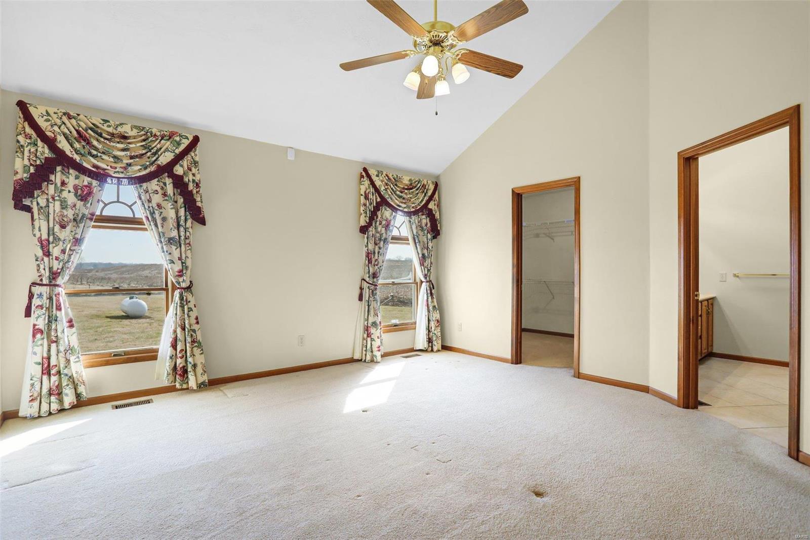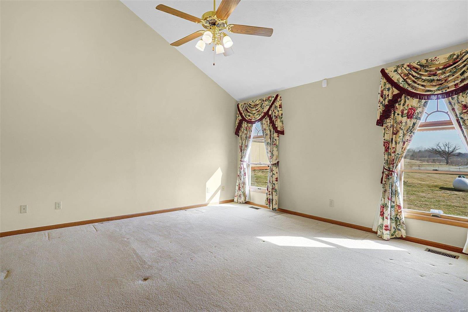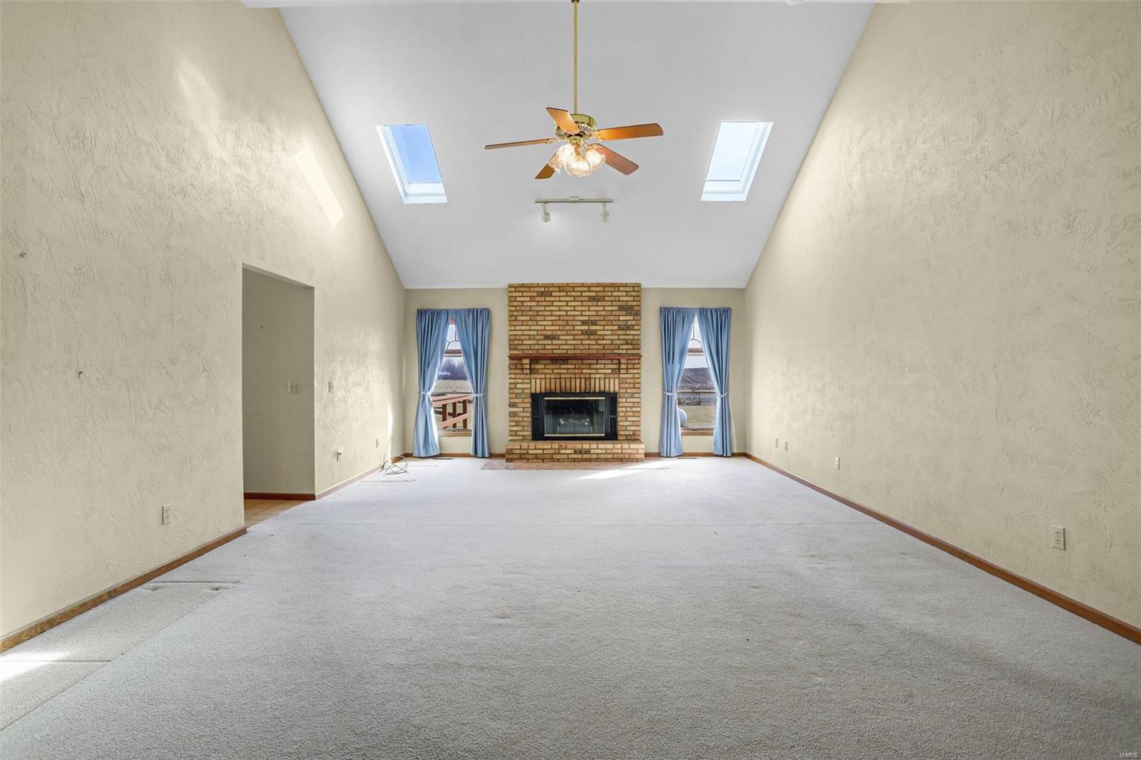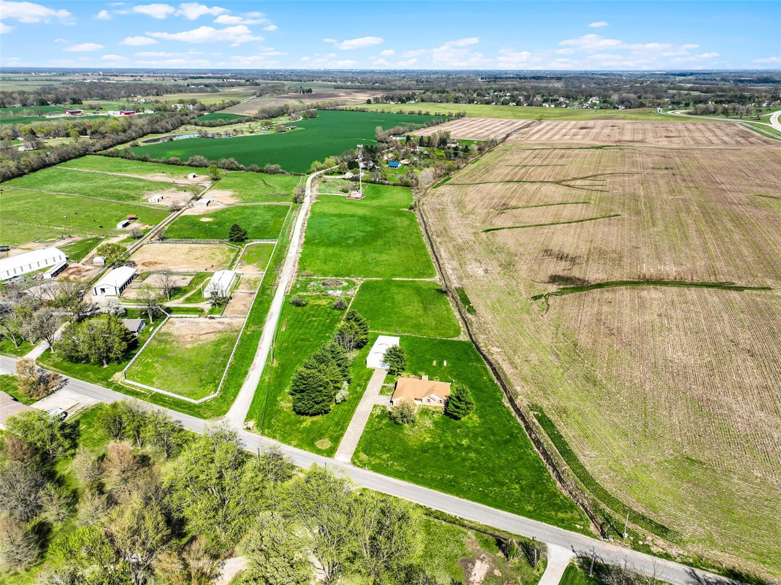 This is a lovely 3/4 brick ranch on 8 acres. Beautiful vaulted ceilings, skylights & tons of natural light throughout. Front porch welcomes you to entry foyer & spacious living room w/ wood fireplace & electric insert. Eat-in kitchen has center island w/ breakfast bar also open to the dining room - perfect space to entertain a large group. There are 3 main floor beds w/ potential for 2 add'l beds in LL. Primary bed has vaulted ceilings, walk in closet, & ensuite bath w/ double vanity, tub & shower. Main floor laundry off oversized 2-car garage. In the LL, there is an expansive family room w/ wrap around wet bar & electric fireplace. A half bath, 2 bonus rooms, & tons of storage space complete the LL. This home has been well maintained & cared for - also equipped with generator. Out the back door, large two-tiered deck w/ bench seating overlooking the sprawling yard. Close by, there is a 30x48 pole barn w/ electricity, workshop w/ concrete floor, & two industrial sized garage doors.