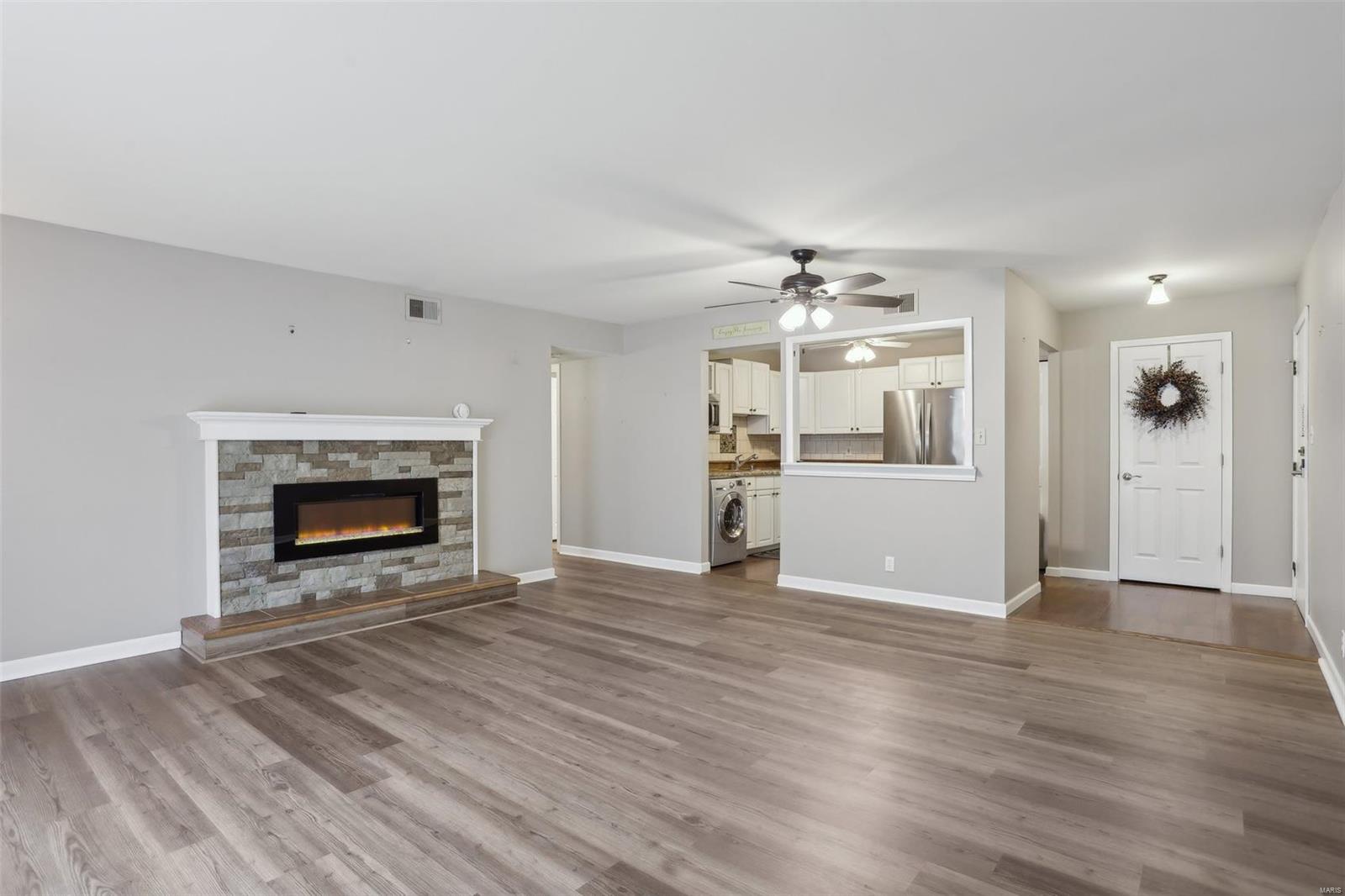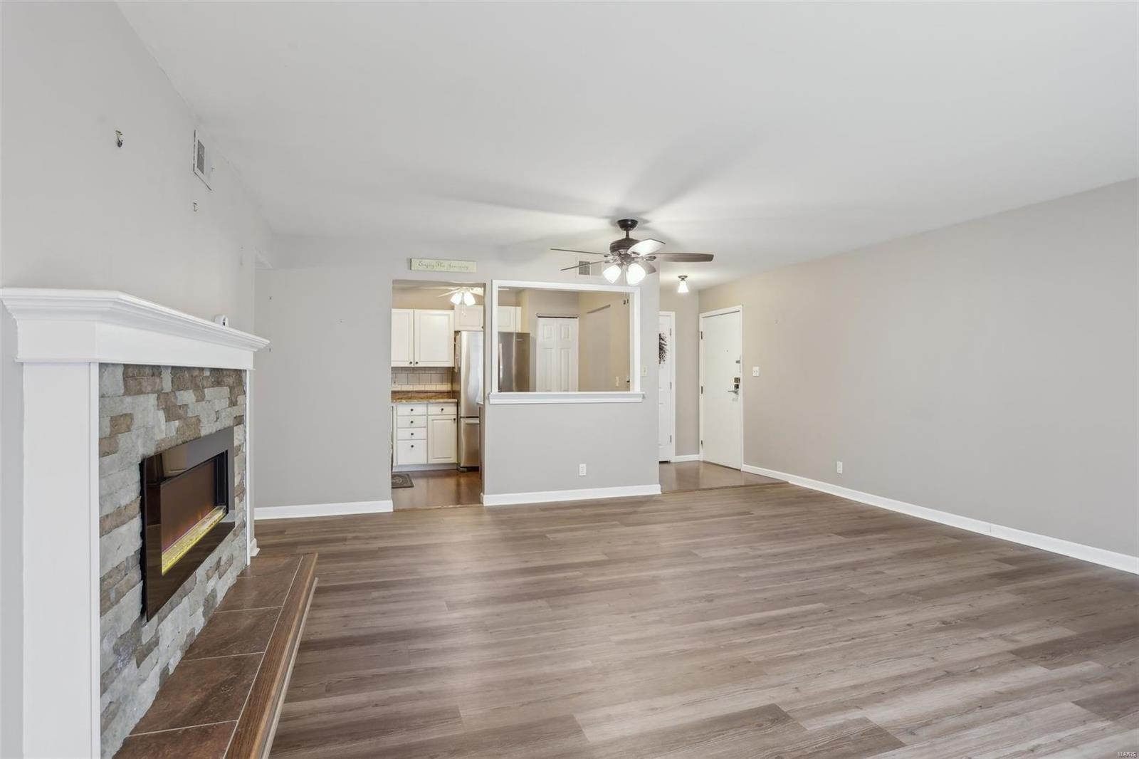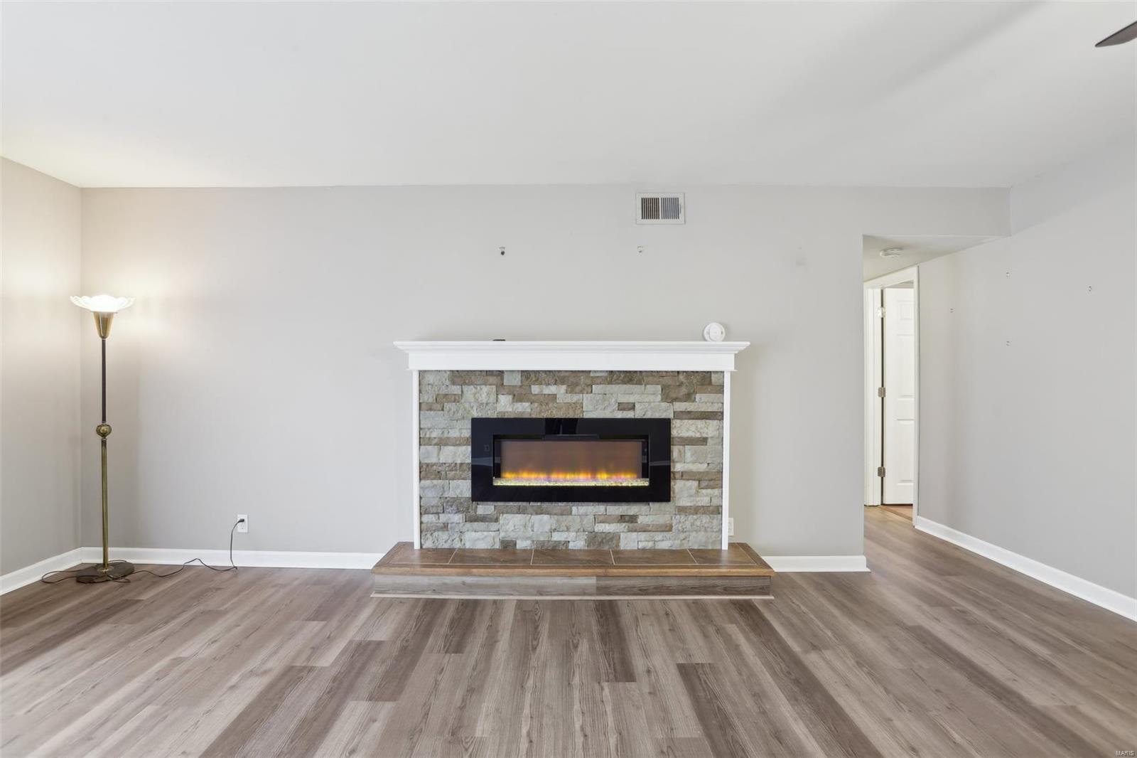 Recently renovated! Need convenience and true low-maintenance living? This is your chance for the 2-bed, 1-bath, GROUND-LEVEL condo you've been searching for. Kick back and relax after a long day in the MASSIVE living room next to your stunning electric fireplace and custom mantel. Bring out your inner chef on the upgraded stainless steel GAS stove. The bathroom features a gorgeous walk-in shower with stone tile surround. New LVP flooring adds warmth to the living spaces, while tile keeps the kitchen and bath easy to maintain. Step through sliding glass doors to your private patio—perfect for morning coffee, grilling, and evening wind-downs. Only 2 minutes to I-55/70, I-255, and 157. Within 3-4 minutes of Walmart, Home Depot and dozens of restaurants. This location is hard to beat! Covered private parking. Professionally managed for true low-maintenance living—no lawncare, roof worries, or snow shoveling. Just move in and enjoy!