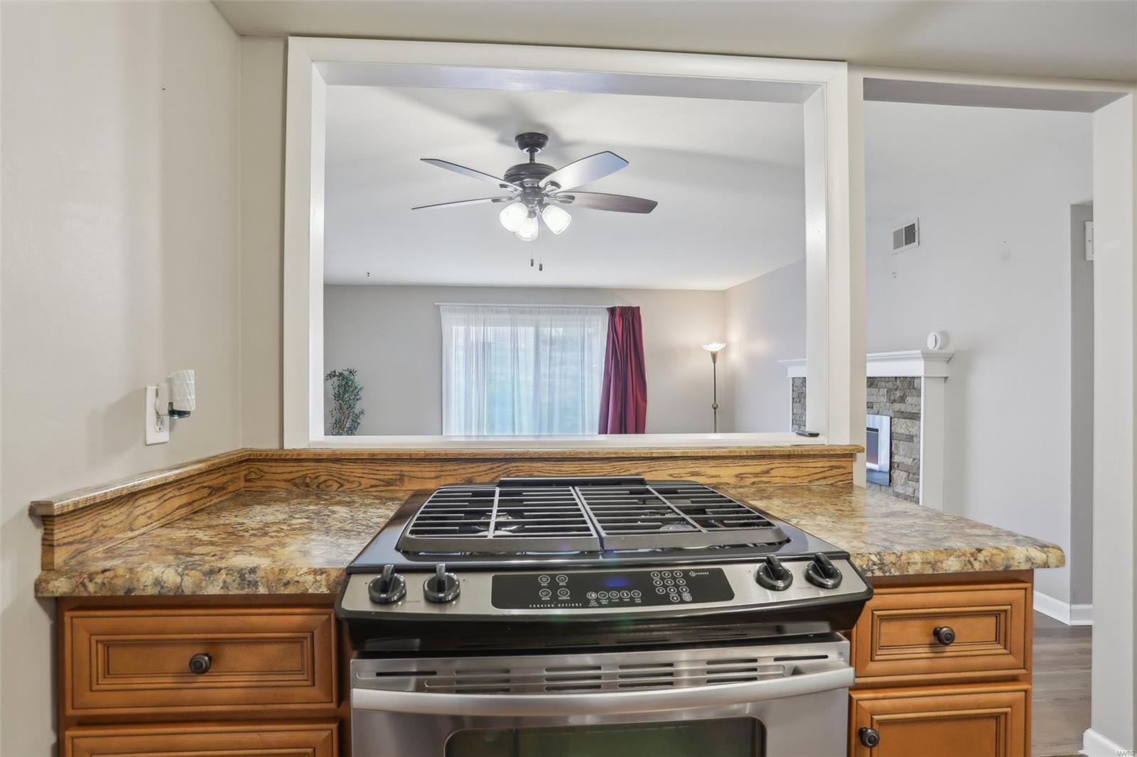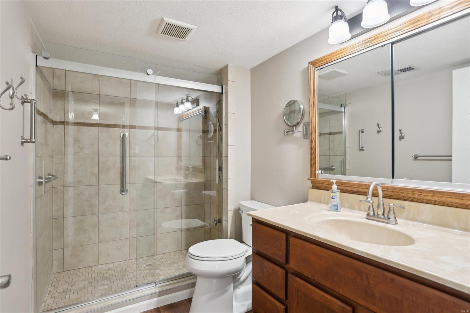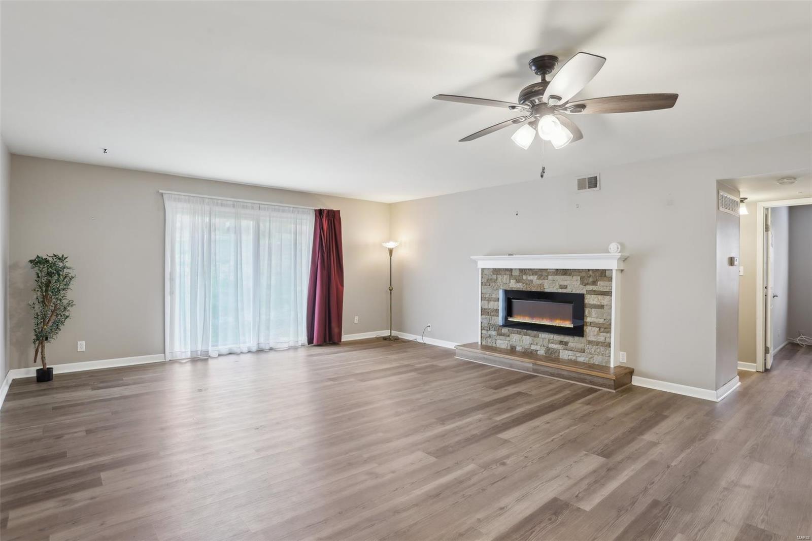 Recently renovated! Need convenience and true low-maintenance living? This is your chance for the 2-bed, 1-bath, GROUND-LEVEL condo you've been searching for. Kick back and relax after a long day in the MASSIVE living room next to your stunning electric fireplace and custom mantel. Bring out your inner chef on the upgraded stainless steel GAS stove. The bathroom features a gorgeous walk-in shower with stone tile surround. New LVP flooring adds warmth to the living spaces, while tile keeps the kitchen and bath easy to maintain. Step through sliding glass doors to your private patio—perfect for morning coffee, grilling, and evening wind-downs. Only 2 minutes to I-55/70, I-255, and 157. Within 3-4 minutes of Walmart, Home Depot and dozens of restaurants. This location is hard to beat! Covered private parking. Professionally managed for true low-maintenance living—no lawncare, roof worries, or snow shoveling. Just move in and enjoy!