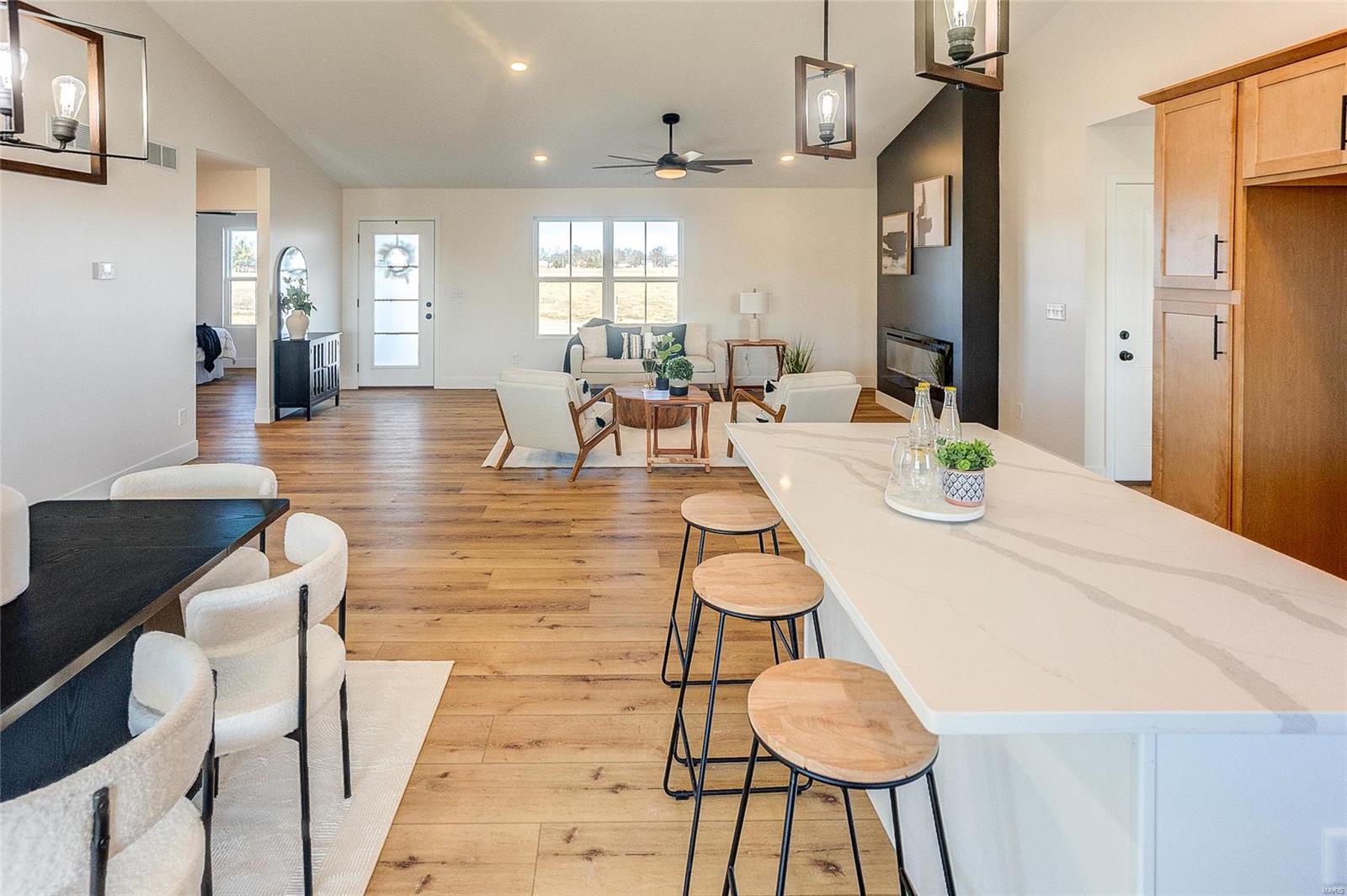 To be built. Homes by Keller presents a stunning 3-bedroom, 2-bathroom, 1,624 sq. ft. ranch-style home designed for modern living. The open-concept kitchen and living area create the perfect space for entertaining, featuring vaulted ceilings with a cedar beam, a cozy fireplace, and stylish vinyl plank flooring throughout. The kitchen is a chef’s dream with quartz countertops, a spacious center island, a subway tile backsplash, and soft-close cabinetry offering ample storage. A stove, dishwasher, and microwave are included in the base price. Relax in the luxurious primary ensuite, which boasts a double vanity, a separate tub, and an elegant onyx shower. Enjoy the convenience of main-floor laundry. The full basement offers endless possibilities with an egress window and a full bath rough-in for future expansion. Don’t miss your chance to own a brand-new home in this highly sought-after community! Expected completion date of October 2025. Foundation work to begin next week.