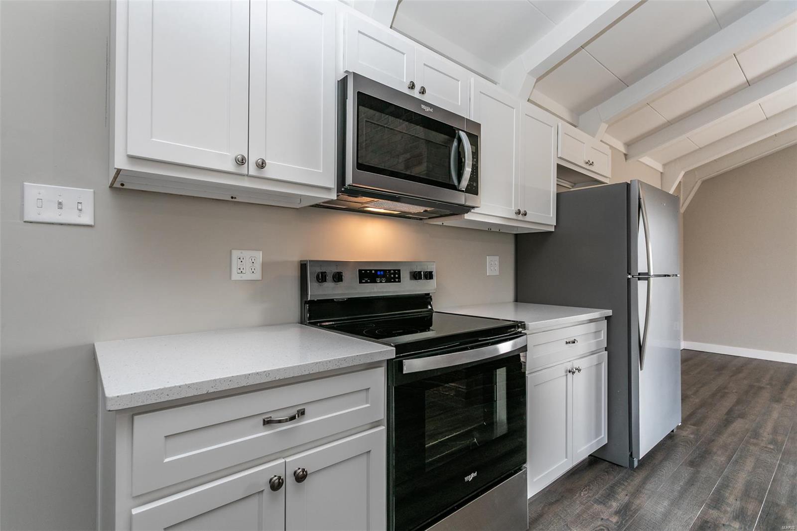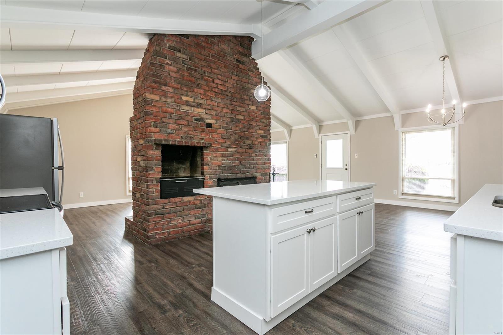 TOTALLY REMODELED & MOVE-IN READY! This adorable 1-story home features 3 bedrooms, 2 full baths & 4 CAR over-sized GARAGE - all with a brick exterior! Everything has been touched from floor to ceilings to create a style & finish that is sure to impress! Beautiful luxury vinyl plank flooring, fresh neutral paint & so much more! This thoughtful one-level living space includes: a remodeled kitchen boasting custom cabinetry, SS Whirlpool Appliances, solid surface counter-tops & a w/see-through fireplace to the living room; a separate dining area; a main floor laundry; a spacious, light & bright great room with a gorgeous, unique wood ceiling feature & room galore! There's plenty of garage space for hosting your prized cars- or use this space to create a workshop area to accommodate your hobbies. Outside one will find a large brick-paver patio that's perfect for relaxing or for entertaining family & guests. Enjoy the mature trees, beautiful landscape & the convenient location, too!