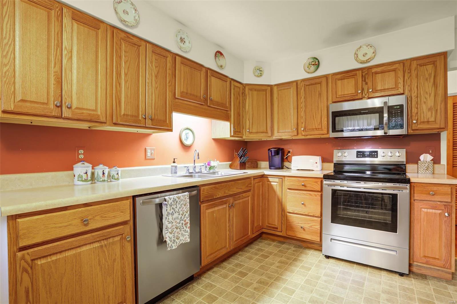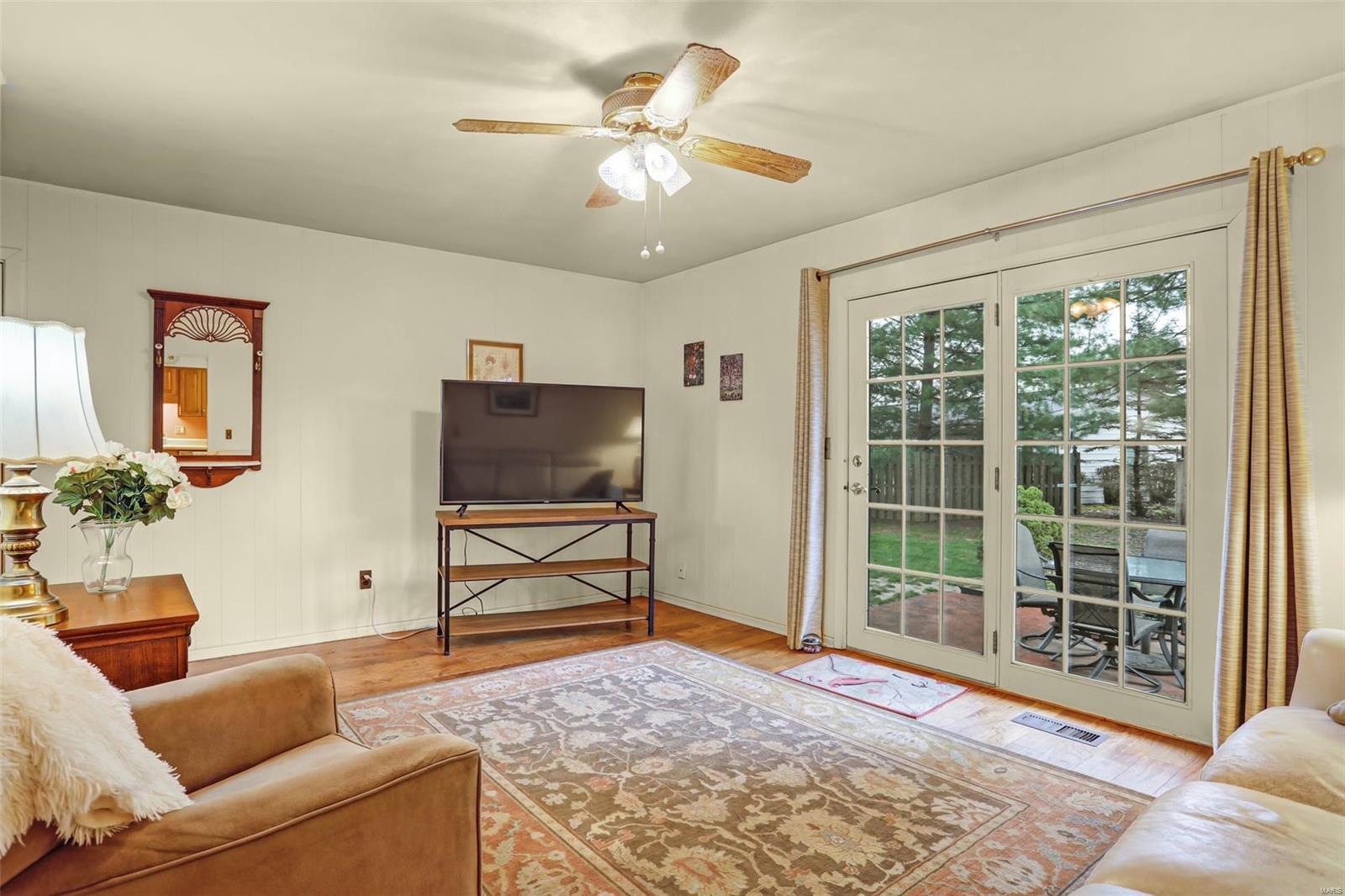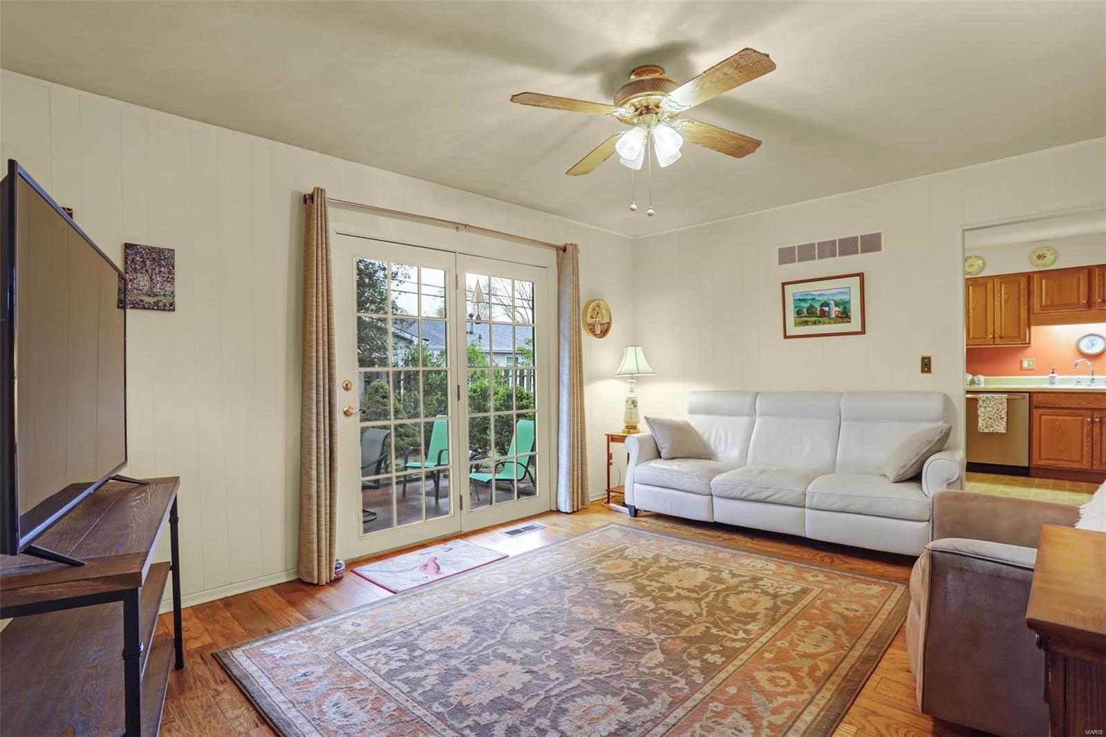 Welcome to this darling brick ranch home in beautiful Grandview Place! Conveniently located near the dog park, splash pad, downtown Edwardsville and bike trails. The main floor features a welcoming foyer with hardwood floors, a cozy eat in kitchen with stainless steel appliances and ample cabinet space, a bright living room and family room/bonus room which leads to outdoor patio. Three main floor bedrooms, including a spacious primary suite with private bath. An additional main floor bathroom finishes out the space. Downstairs, the partially finished basement provides extra living space with built in bar, bonus room for workout area or office, laundry room, tons of storage space, and an area for a work bench/ hobby room. So much potential to make this area your own! Step outside to a nice private backyard- great for relaxing, gardening and entertaining. Home also includes a one car garage and an additional parking pad. This home is being sold AS IS.