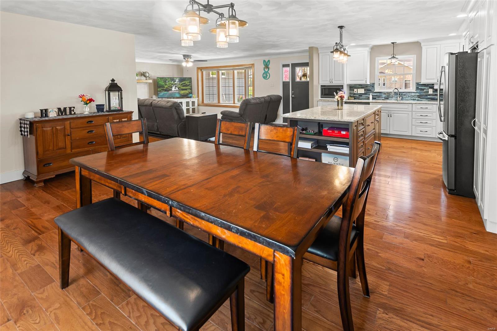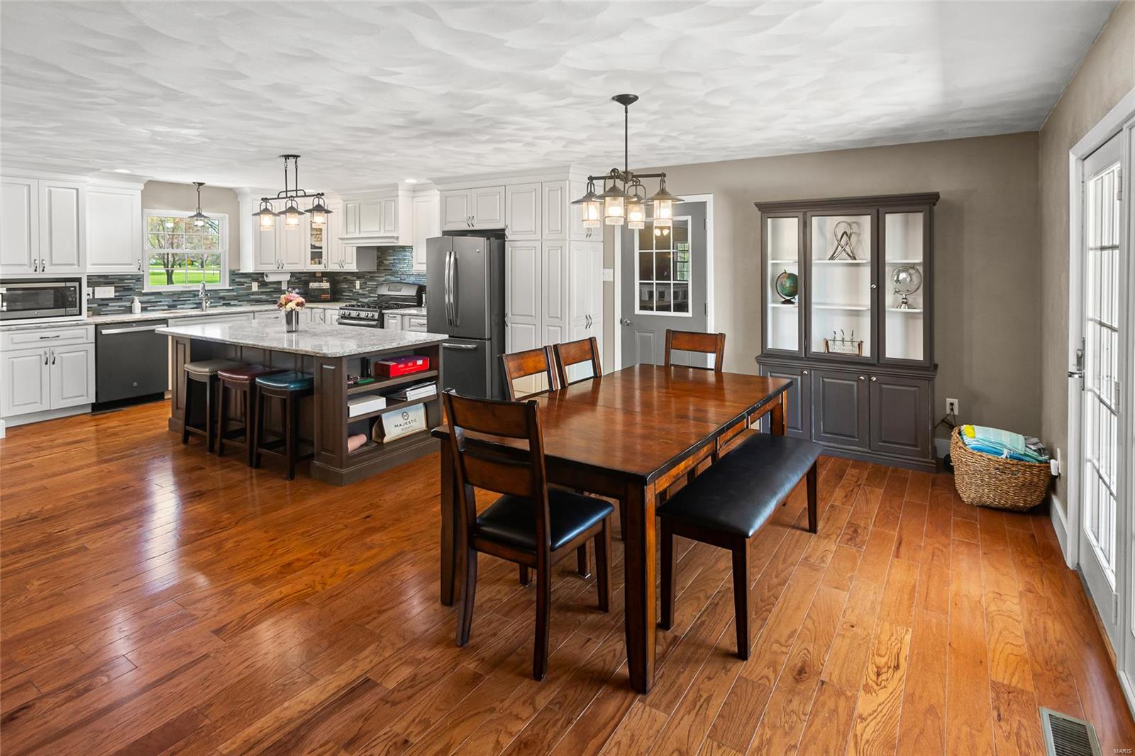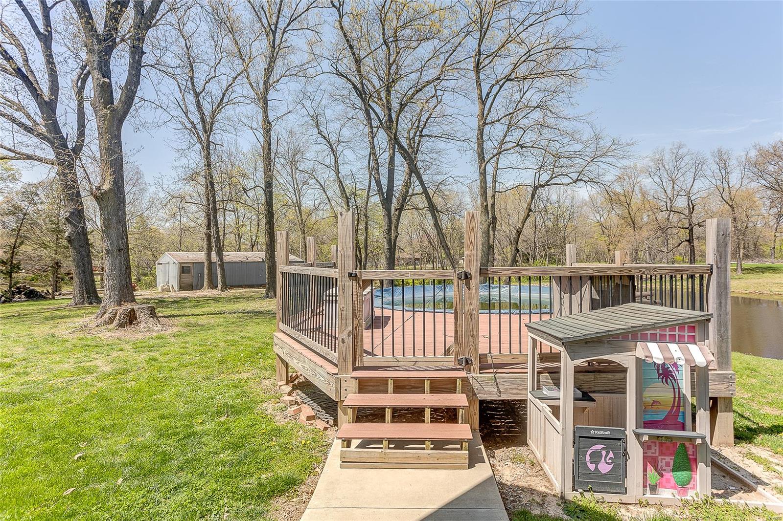 Welcome to your dream home! Nestled on a beautiful 5 acre lot with a lake, this beautifully remodeled 2022 home offers the perfect blend of modern luxury and peaceful country living. Step inside to an open floor plan connecting the kitchen, living room, and dining area perfect for entertaining. Enjoy the coziness of the wood pellet burning stove. The kitchen features a large center island with beautiful soft closing cabinets with crown molding to the ceiling. The spacious master suite has a walk in closet as well as a walk in shower with a double sink feature. Bedrooms are very spacious with large closets. Two car garage with lots of extra room, wall mounted space heater and ceiling fans are a huge bonus along with the covered back patio. Enjoy the best of indoor and outdoor living with breathtaking views and endless possibilities for relaxation in the hot tub that is staying! Property also offers a detached shed with electricity. Check it out!