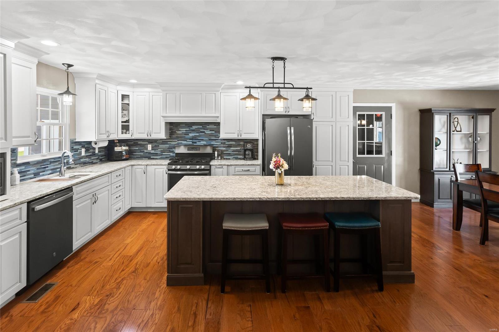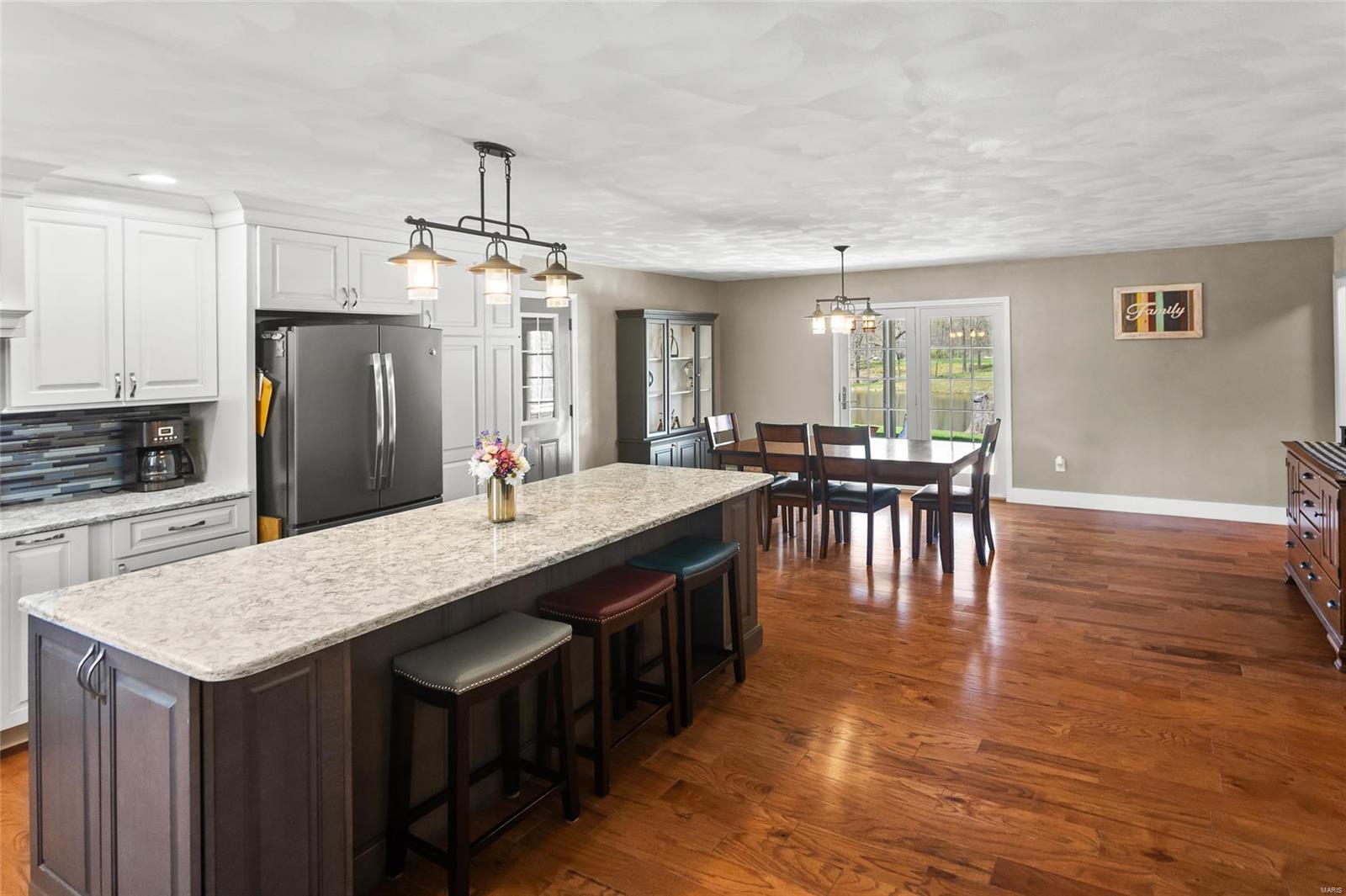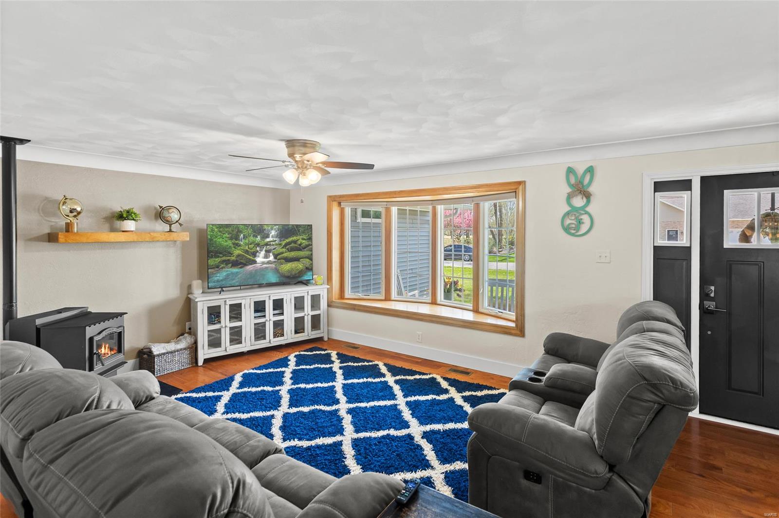 Welcome to your dream home! Nestled on a beautiful 5 acre lot with a lake, this beautifully remodeled 2022 home offers the perfect blend of modern luxury and peaceful country living. Step inside to an open floor plan connecting the kitchen, living room, and dining area perfect for entertaining. Enjoy the coziness of the wood pellet burning stove. The kitchen features a large center island with beautiful soft closing cabinets with crown molding to the ceiling. The spacious master suite has a walk in closet as well as a walk in shower with a double sink feature. Bedrooms are very spacious with large closets. Two car garage with lots of extra room, wall mounted space heater and ceiling fans are a huge bonus along with the covered back patio. Enjoy the best of indoor and outdoor living with breathtaking views and endless possibilities for relaxation in the hot tub that is staying! Property also offers a detached shed with electricity. Check it out!
