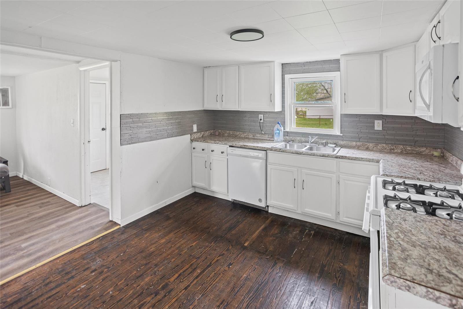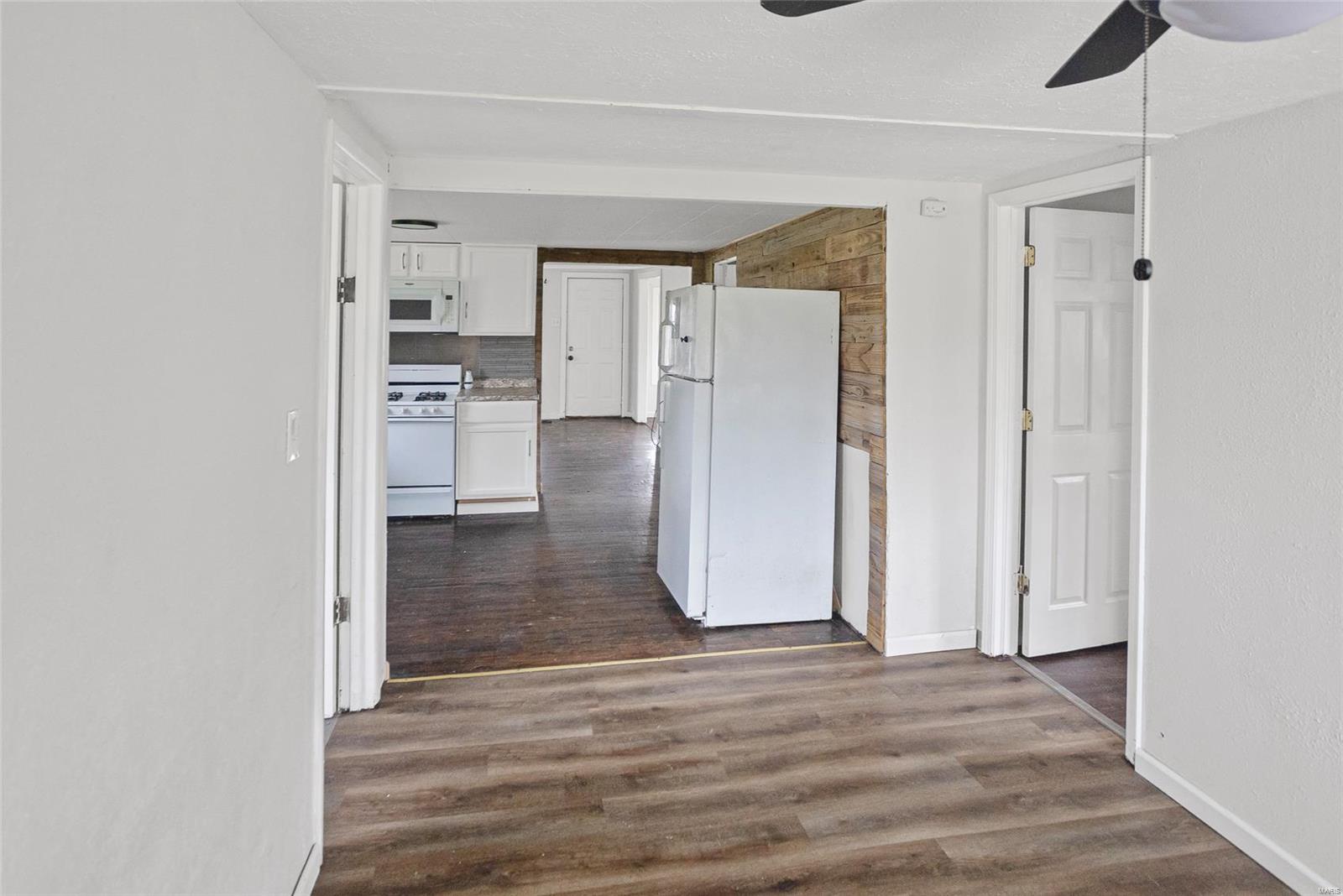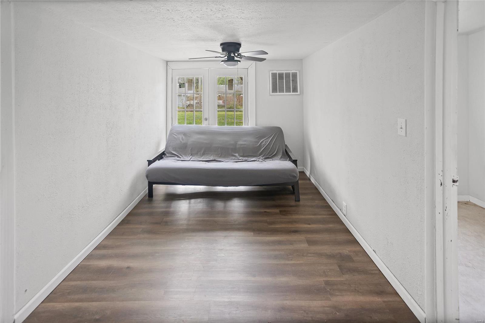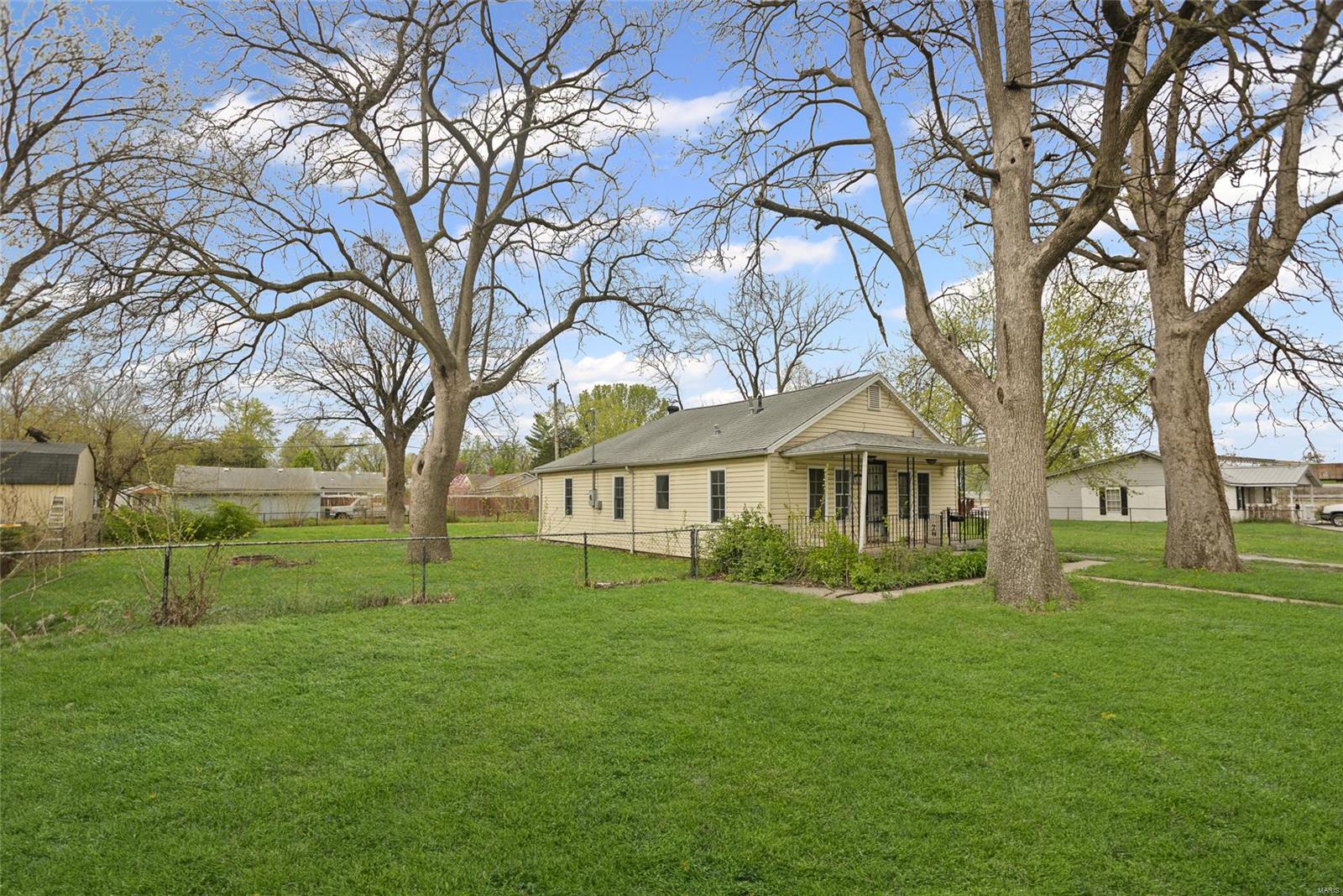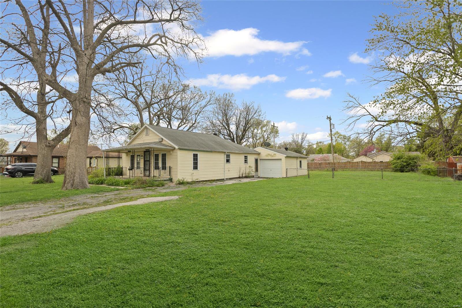 2/3 Bedroom Bungalow on a large double lot with mature trees. Charming covered fenced-in front porch. Living room, kitchen, bedroom with wood floors. Nice sized kitchen with ample counter space. Dishwasher, Gas Stove and Built in Microwave included. Dining Room with French doors leading to a private patio in a large fenced backyard. Main floor laundry room. 2 car oversized garage with lroom for a workshop. Located on a cul de sac. Bonus room could be additional living space, office, or closed off for a 3rd bedroom. New hot water heater, newer ac, newer roof. Will be city compliant.