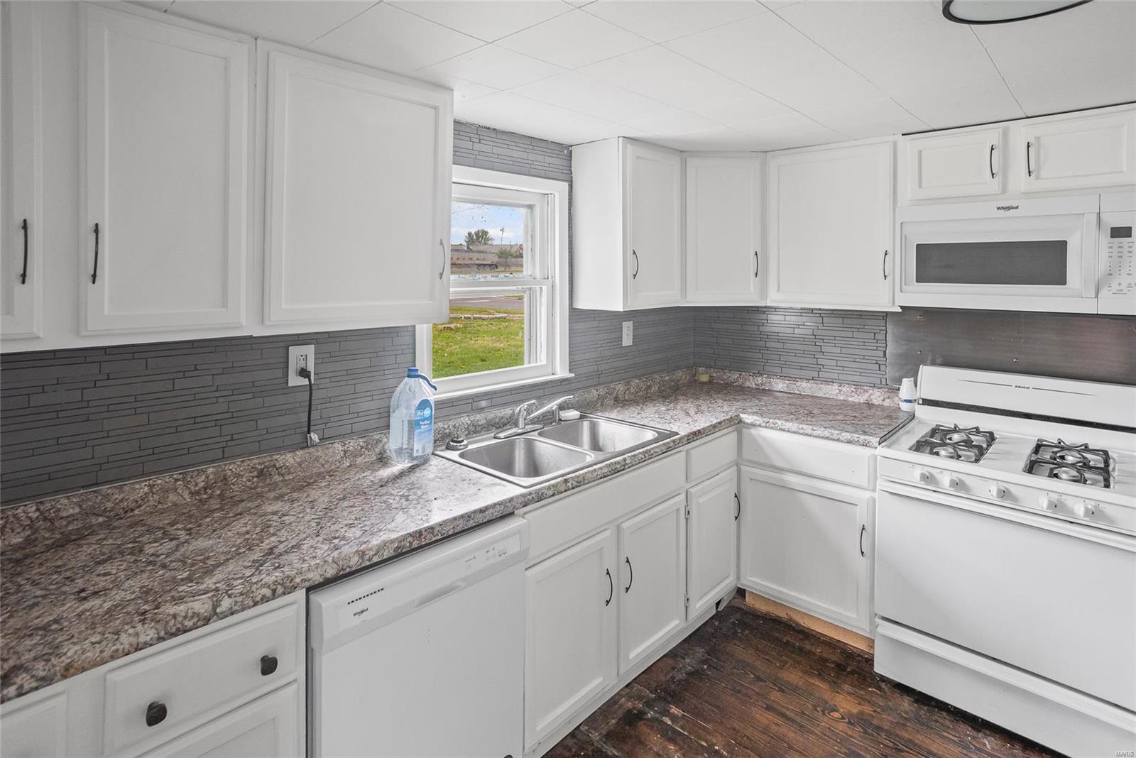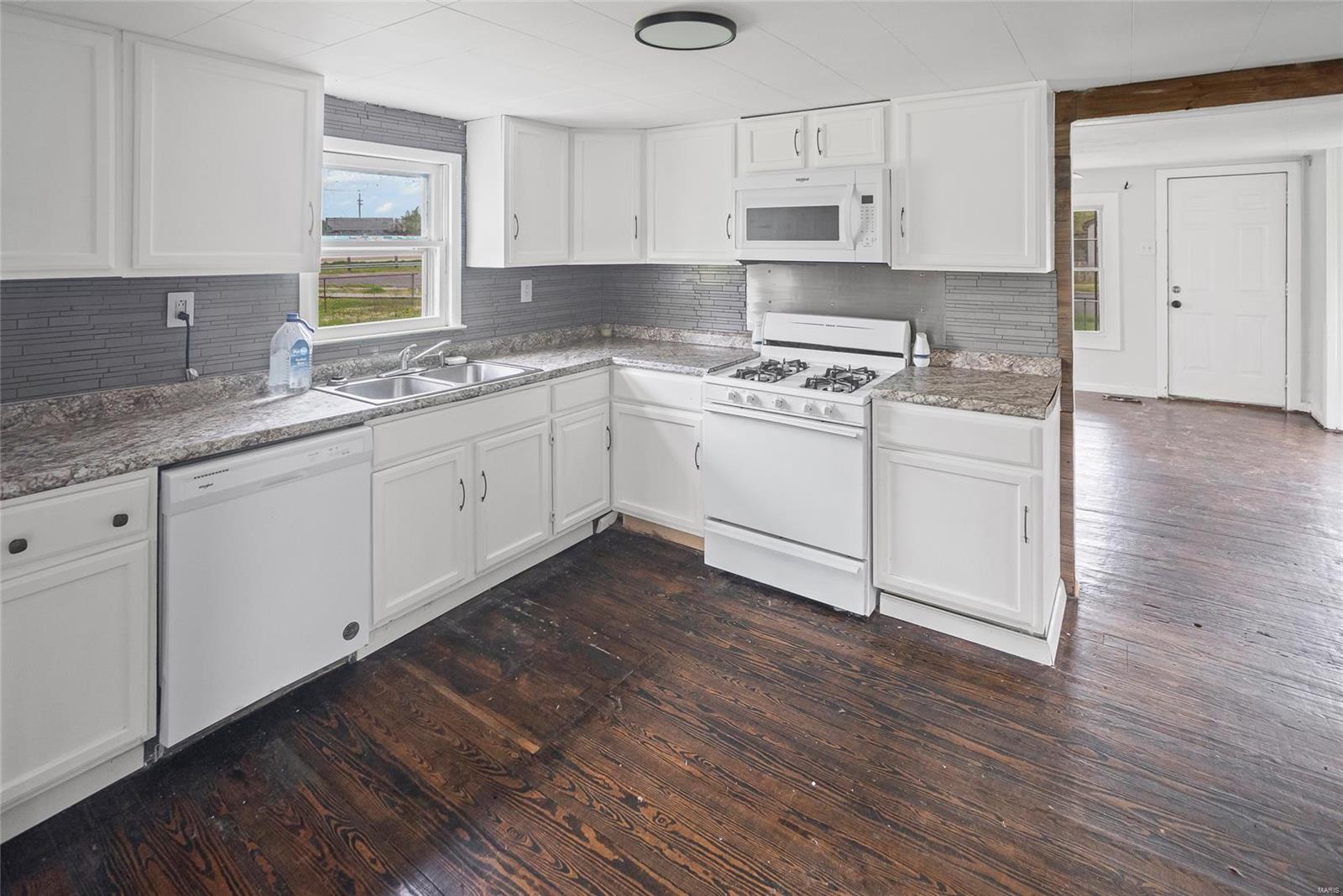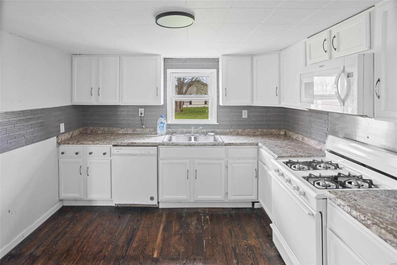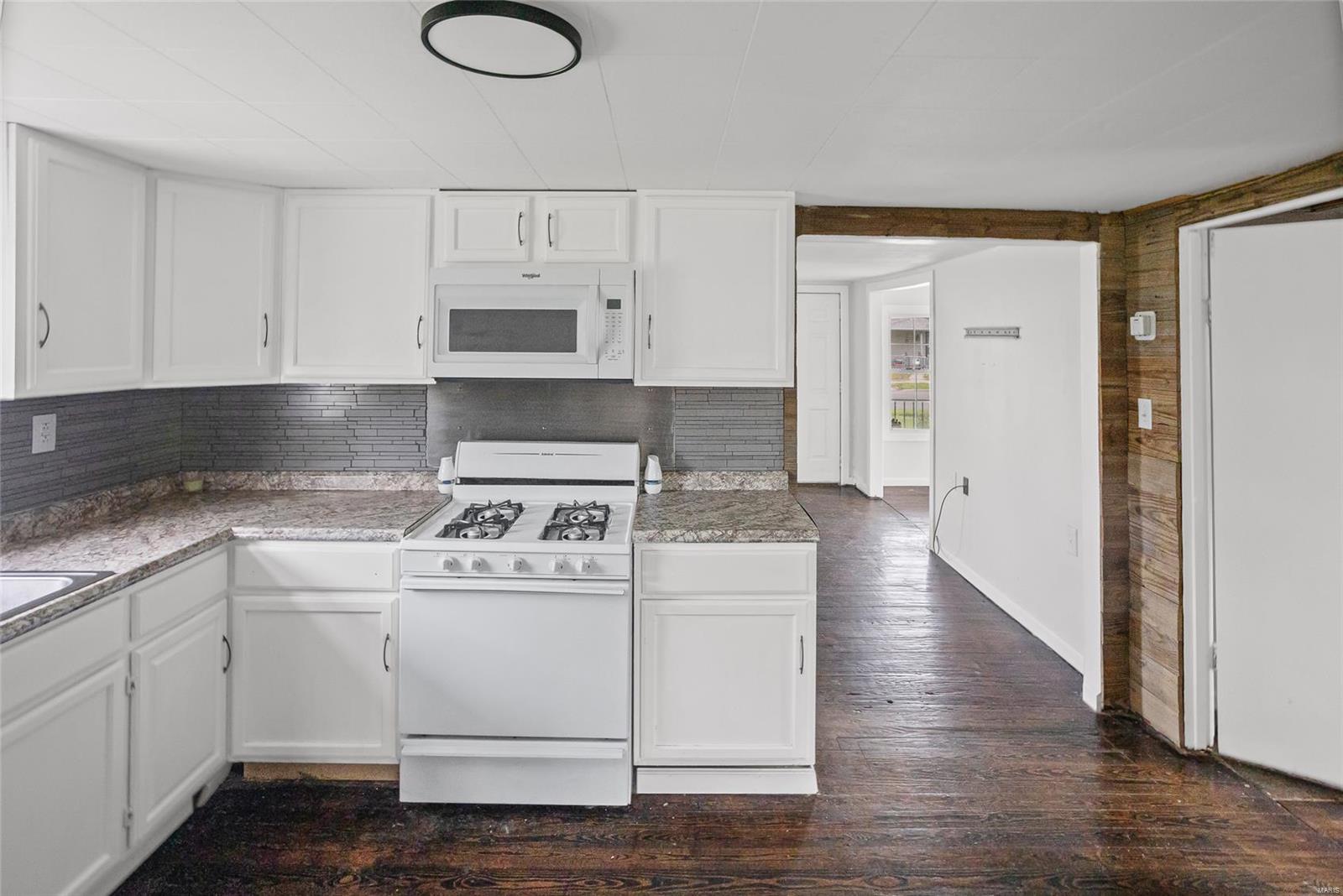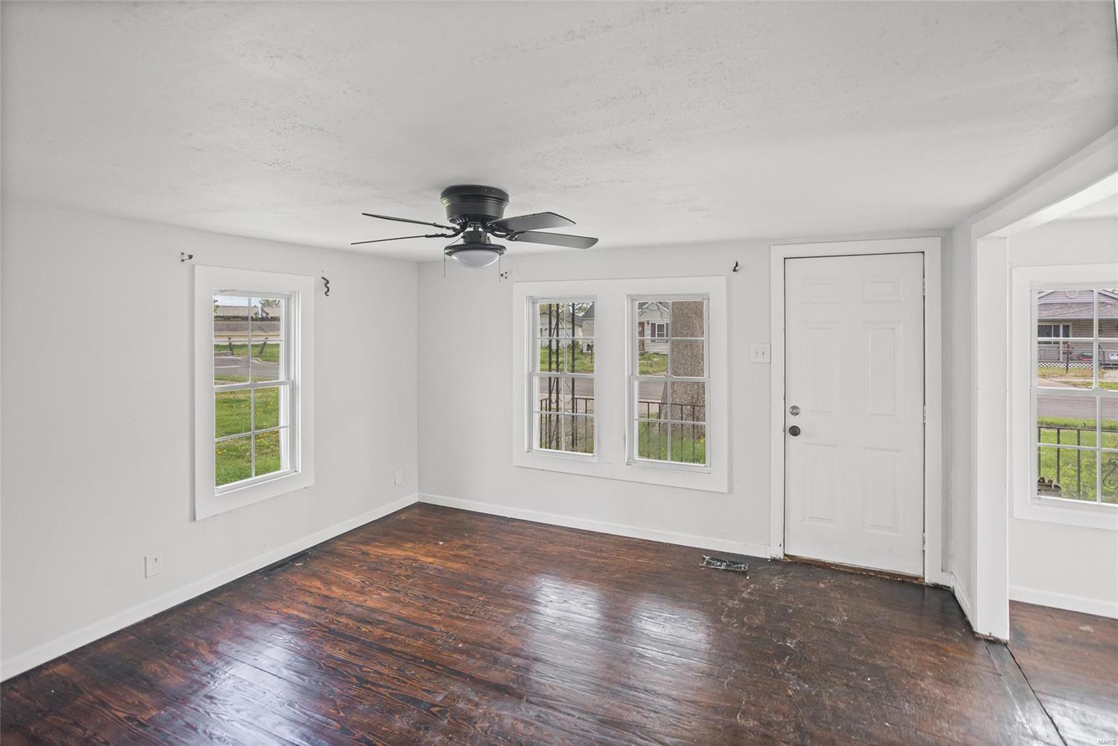 2/3 Bedroom Bungalow on a large double lot with mature trees. Charming covered fenced-in front porch. Living room, kitchen, bedroom with wood floors. Nice sized kitchen with ample counter space. Dishwasher, Gas Stove and Built in Microwave included. Dining Room with French doors leading to a private patio in a large fenced backyard. Main floor laundry room. 2 car oversized garage with lroom for a workshop. Located on a cul de sac. Bonus room could be additional living space, office, or closed off for a 3rd bedroom. New hot water heater, newer ac, newer roof. Will be city compliant.