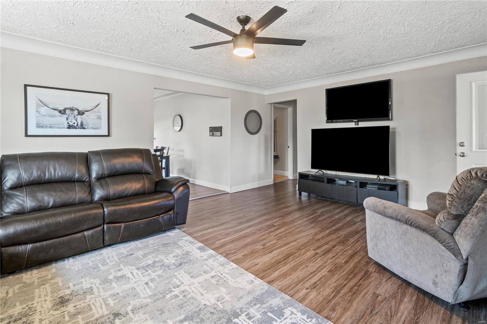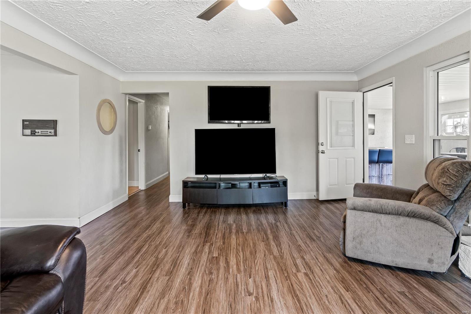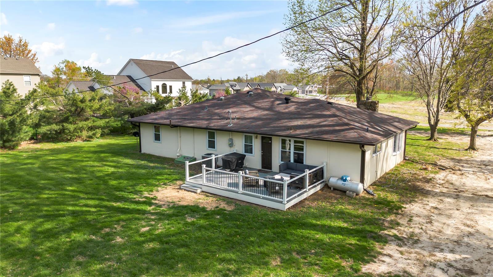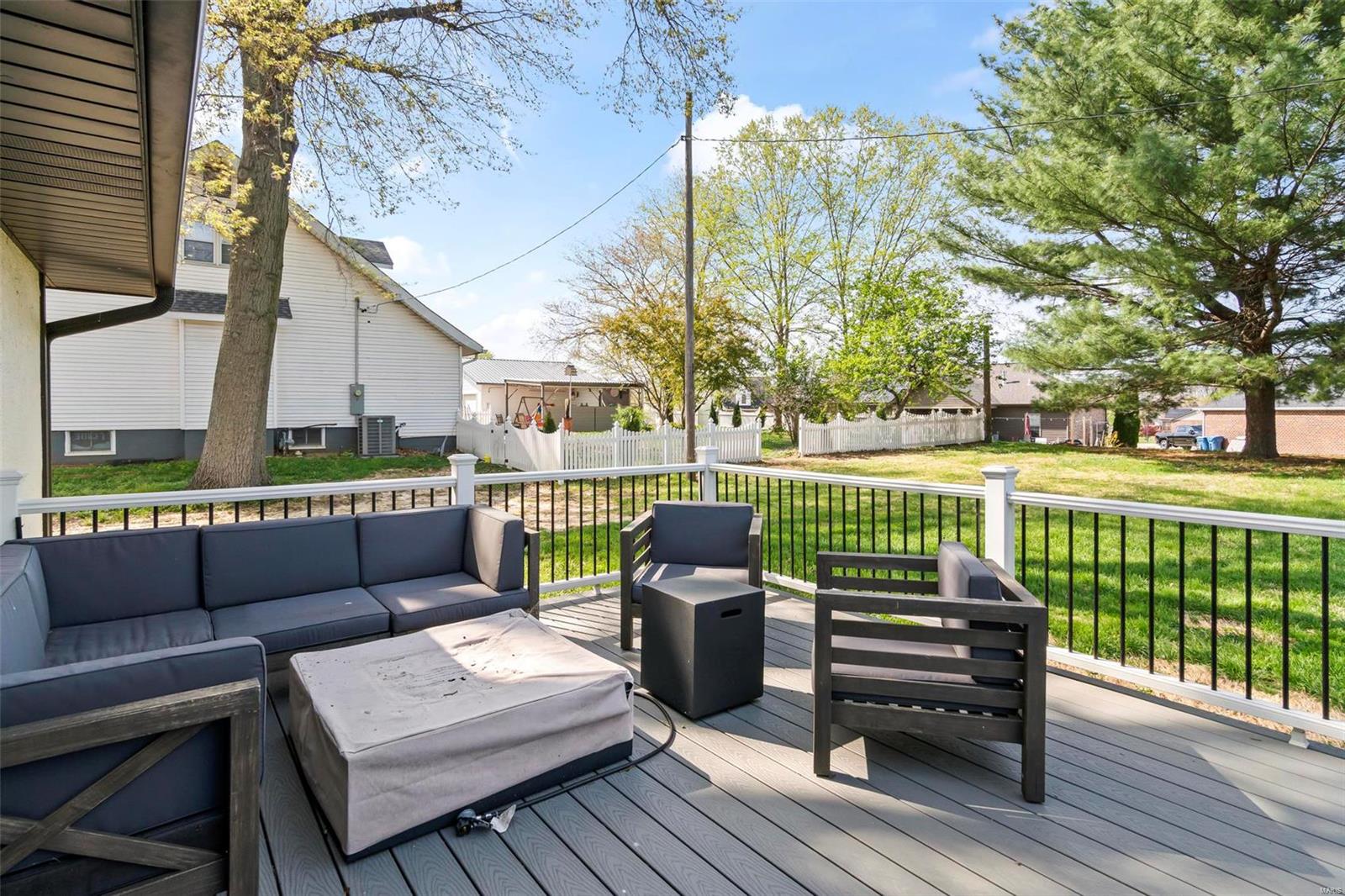 This well-maintained 3-bed, 2-bath home offers 1,709 sq. ft. of comfortable living on a quiet lane with a private .63-acre lot. Step into a spacious living room with new flooring and a cozy gas fireplace. The eat-in kitchen features granite countertops, stainless steel appliances, and a brand-new refrigerator (2024). Enjoy updated lighting and ceiling fans throughout, along with a large laundry room and a new water heater (2024). Step outside to a custom Trex deck added in Summer 2024—perfect for relaxing or entertaining. The expansive backyard offers privacy, green space, and a utility shed for additional storage. Located just minutes from parks, schools, shopping, and dining, this home offers the perfect blend of convenience and charm. Whether you’re enjoying quiet evenings by the fire or hosting guests outdoors, this home checks all the boxes. Don’t miss your chance—showings begin soon. Schedule your tour and fall in love with Glen Carbon living!