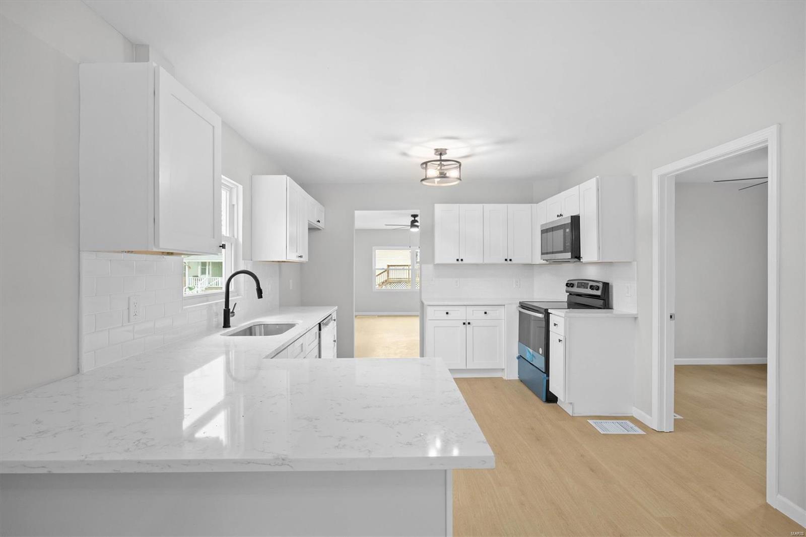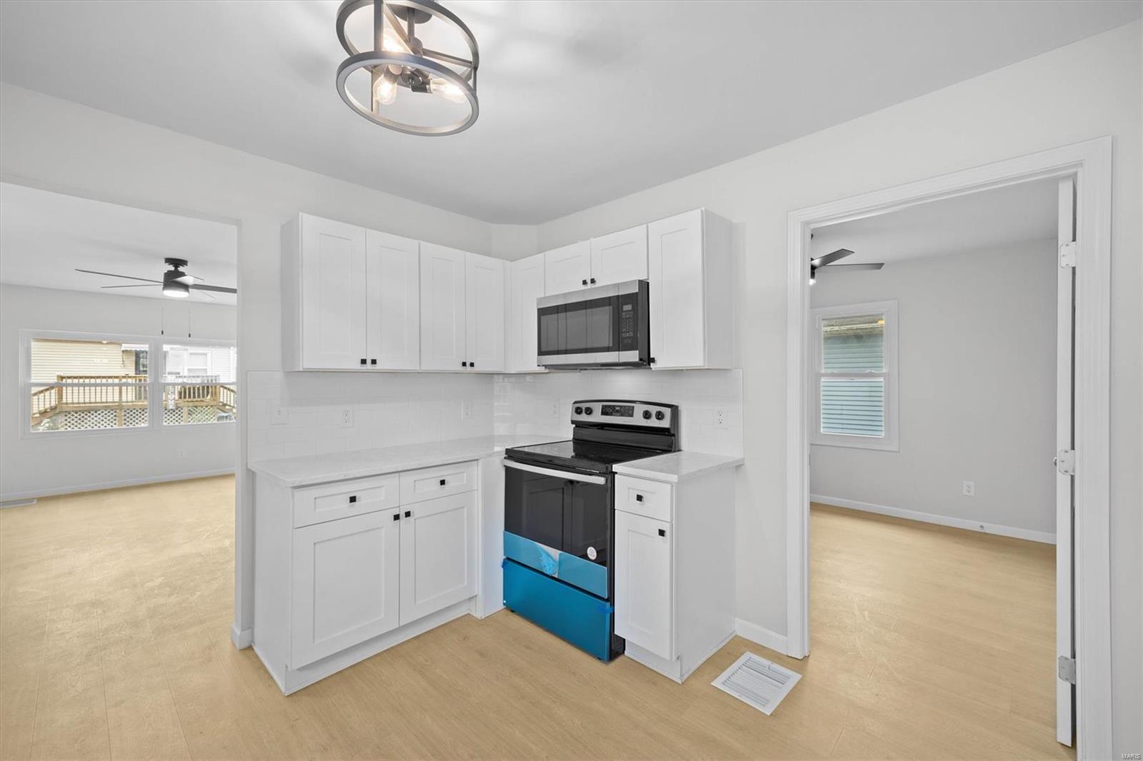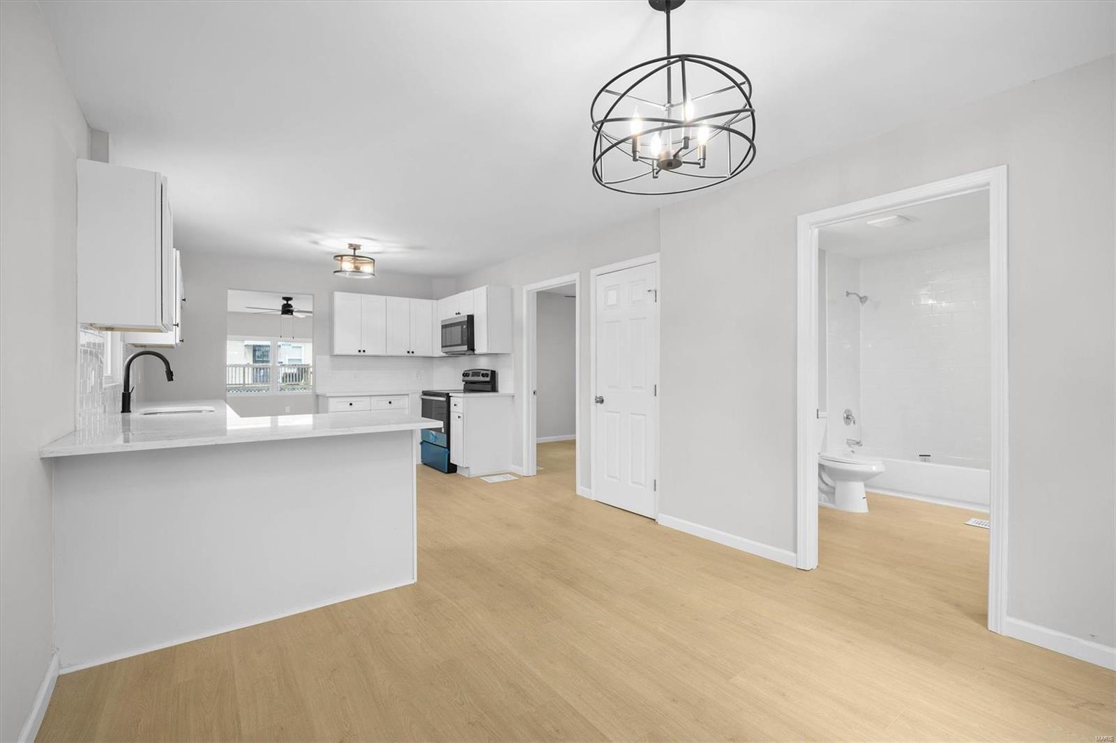 This East Alton home welcomes you with new flooring, fresh paint and sun-filled windows. There is room for everyone featuring a gorgeous kitchen with granite countertops, stainless appliances and white shaker cabinetry. Fully updated bathroom! Meets all your storage needs with the full basement. HVAC replaced 2024. This one will not last long, call your agent today! This home has passed occupancy with the City of East Alton. This is a Fannie Mae Property. Before making an offer Buyer and/or buyer agent should verify all MLS data.