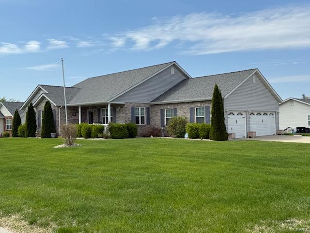GORGEOUS ONE STORY HOME W/SPACIOUS OPEN FLOOR PLAN W/ENGINEERED WOOD FLOORS PERFECT FOR ENTERTAINING FAMILY & FRIENDS. 3 CAR SIDE LOAD GARAGE LOCATED ON CORNER LOT. KITCHEN FEATURES BEAUTIFUL BACKSPLASH, QUARTZ COUNTERTOPS, SS APPLIANCES (STAY) & PANTRY. HUGE LIVING ROOM & DINING ROOM WITH VAULTED CEILING, OPEN STAIRWAY TO LOWER LEVEL, GAS FP & SLIDING DOOR TO COVERED PATIO & SHED. MASTER SUITE FEATURES VAULTED CEILING, WALK-IN CLOSET, DOOR TO COVERED PATIO. MASTER BATH HAS DOUBLE BOWL SINKS, SEPARATE SHOWER & JETTED TUB. MAIN FLOOR LAUNDRY ROOM (W & D STAY). LL FEATURES FAMILY ROOM (NAVY BLUE COUCH STAYS), GAME ROOM, BONUS ROOM HAS CLOSET, FULL BATHROOM, LOTS OF EXTRA STORAGE. NICE LANDSCAPING & GREAT LOCATION ON THE EDGE OF TOWN.