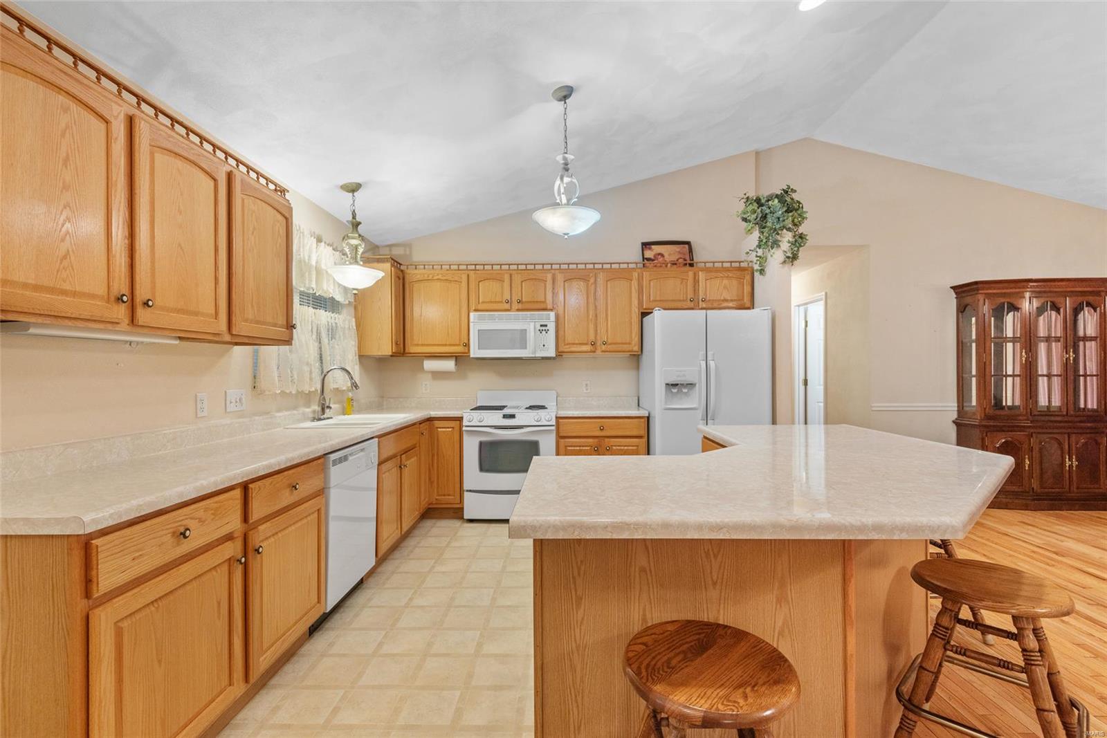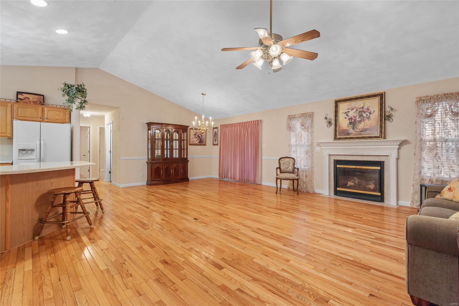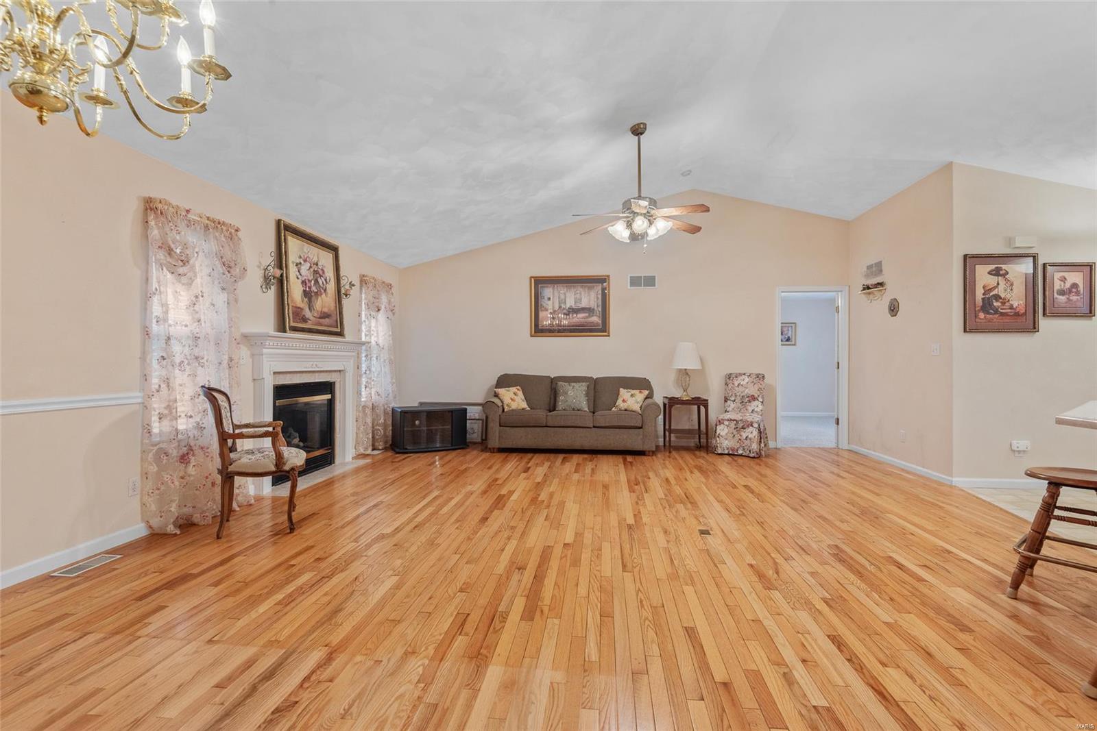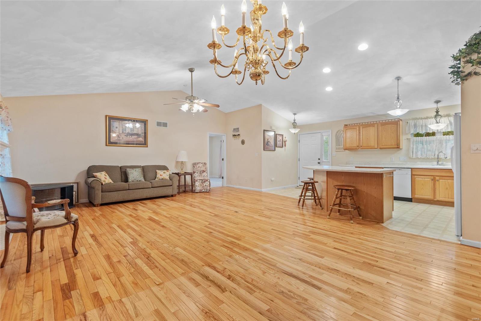 LOVELY ONE OWNER HOME IN DESIRABLE SPRING MEADOWS: You will love this one story home in a quiet hidden subdivision. Walk into this open floor plan home with convenient eat in kitchen, sit down breakfast bar & all appliances stay. There is a spacious dining area off the large family room with a gas log fireplace & lovely mantle. There are beautiful hardwood floors in the family room, dining area, hallway and one bedroom. The primary suite is generous in size with a walk in closet & full bath with jacuzzi tub & separate shower. You will love the split bedroom floor plan with two bedrooms & bath for guests. Off the kitchen is a large laundry room with pull down ironing board & cabinets. From the laundry you can walk down to the basement or out to the oversized two car garage. In the lower level you will find a full unfinished basement, plumbed for a bath & lots of open area to make a great finished basement. Buyer to check all info on MLS. CALL YOUR FAVORITE AGENT FOR A SHOWING!