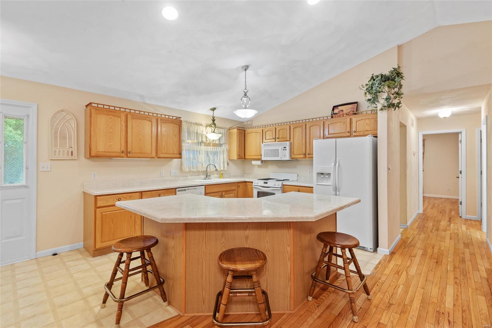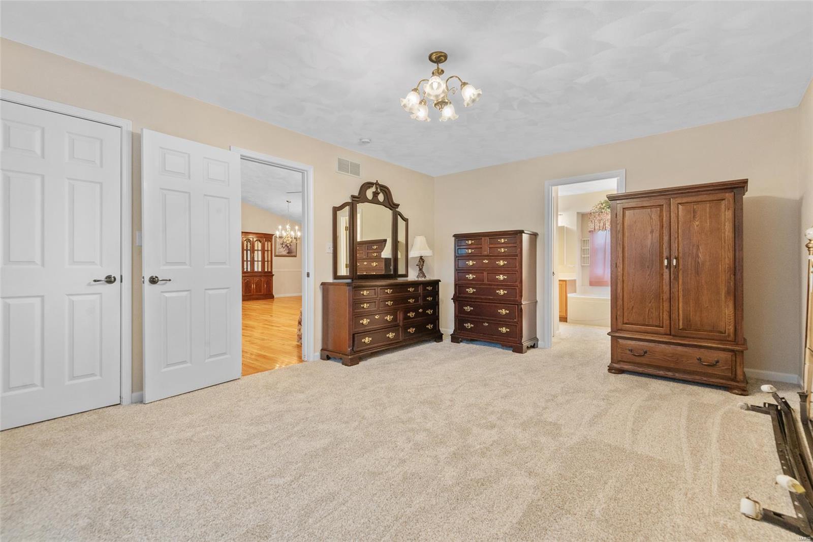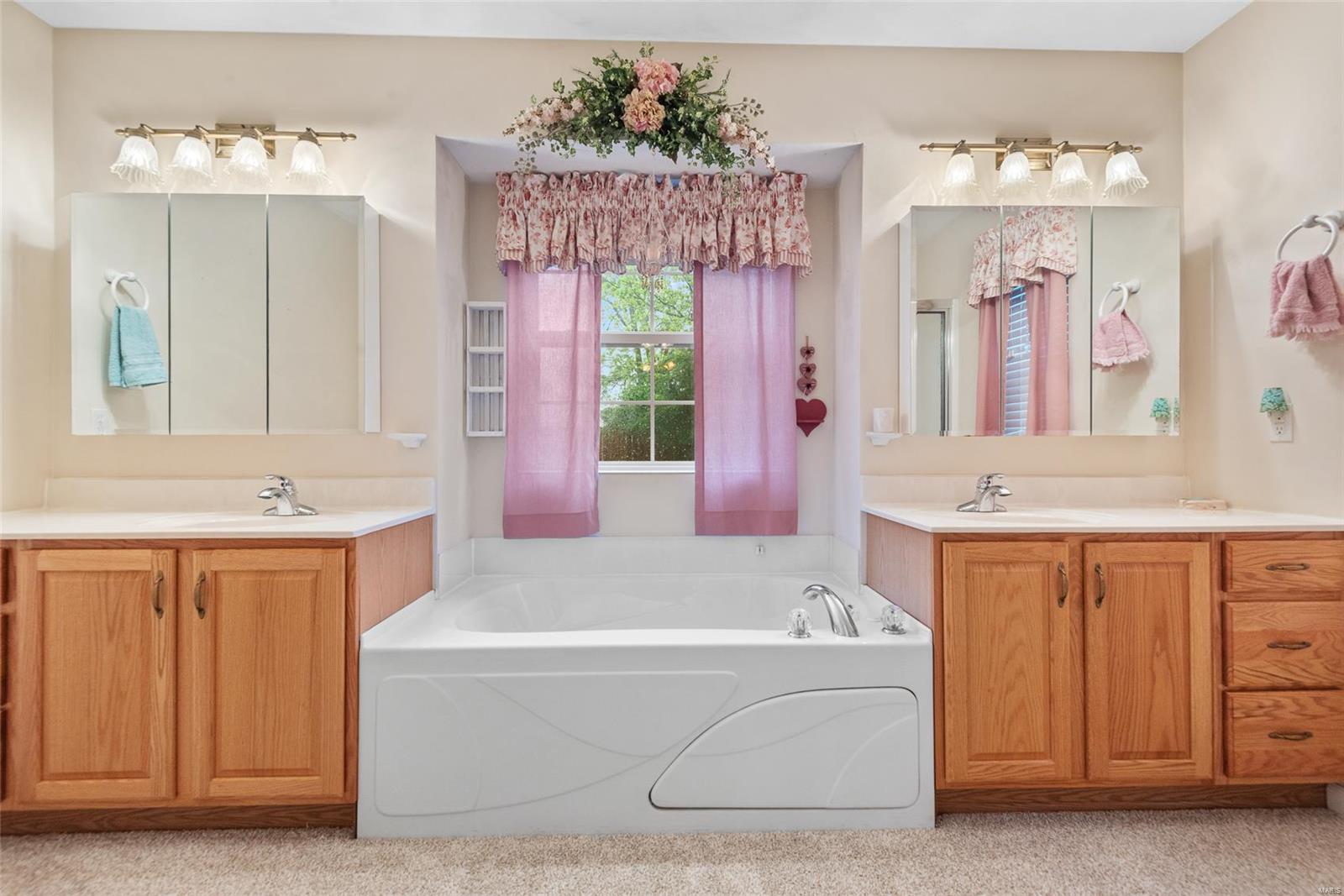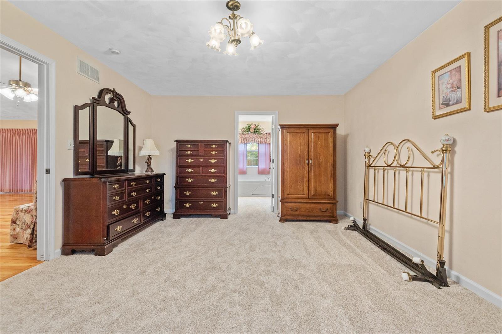 LOVELY ONE OWNER HOME IN DESIRABLE SPRING MEADOWS: You will love this one story home in a quiet hidden subdivision. Walk into this open floor plan home with convenient eat in kitchen, sit down breakfast bar & all appliances stay. There is a spacious dining area off the large family room with a gas log fireplace & lovely mantle. There are beautiful hardwood floors in the family room, dining area, hallway and one bedroom. The primary suite is generous in size with a walk in closet & full bath with jacuzzi tub & separate shower. You will love the split bedroom floor plan with two bedrooms & bath for guests. Off the kitchen is a large laundry room with pull down ironing board & cabinets. From the laundry you can walk down to the basement or out to the oversized two car garage. In the lower level you will find a full unfinished basement, plumbed for a bath & lots of open area to make a great finished basement. Buyer to check all info on MLS. CALL YOUR FAVORITE AGENT FOR A SHOWING!