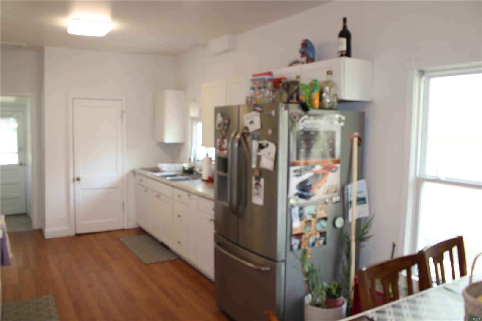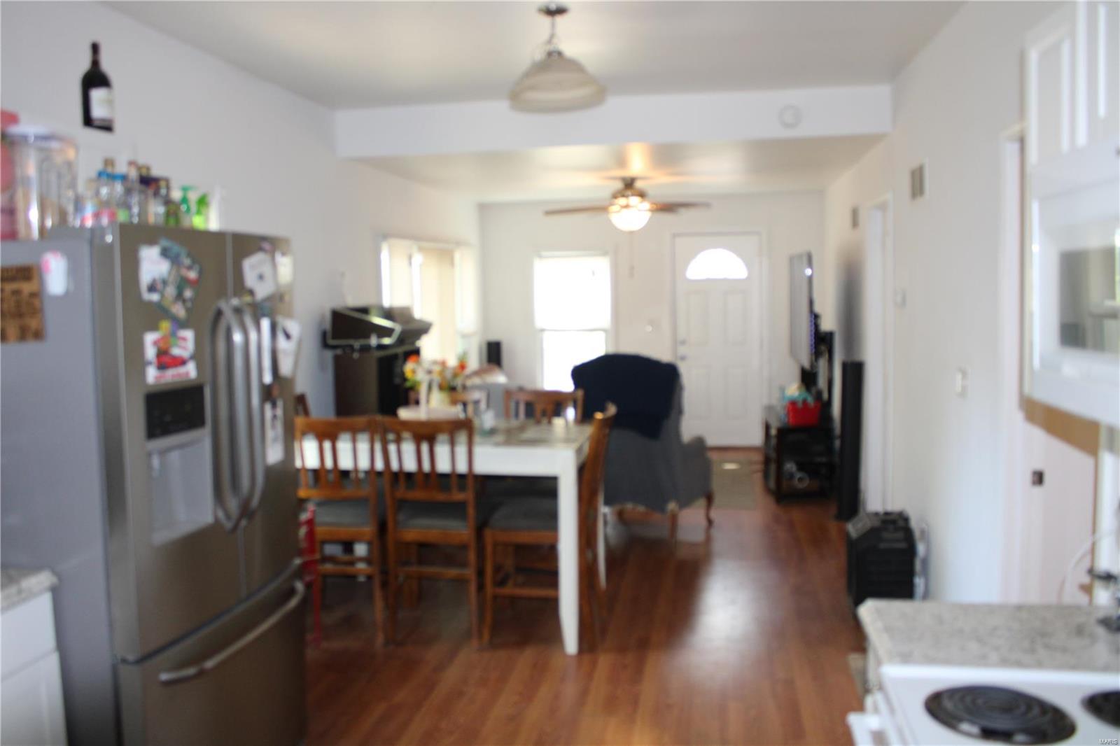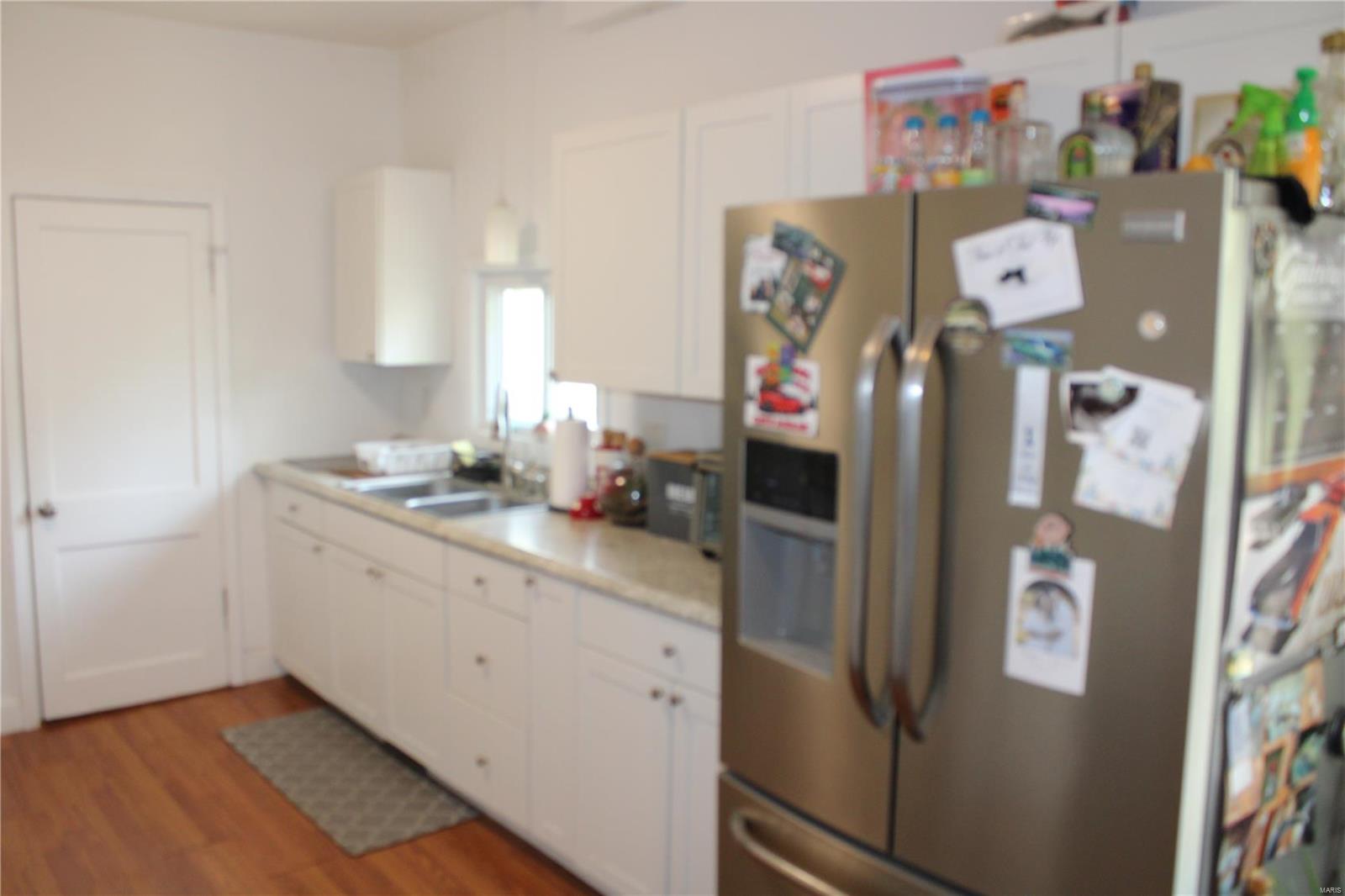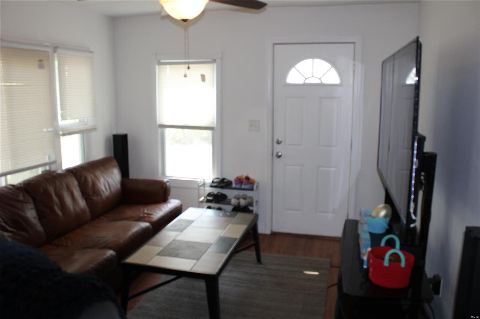 Charming 2 bedroom 1 bath home located in Alton, IL. this home features open floor plan, full basement, nice covered patio on rear of home, 2 car extended garage and large shed for storage on property. Newer furnace, Air conditioner and hot water heater. Perfect starter home or if your looking to down size. Garage is a great feature for a car person or someone who needs room to work.