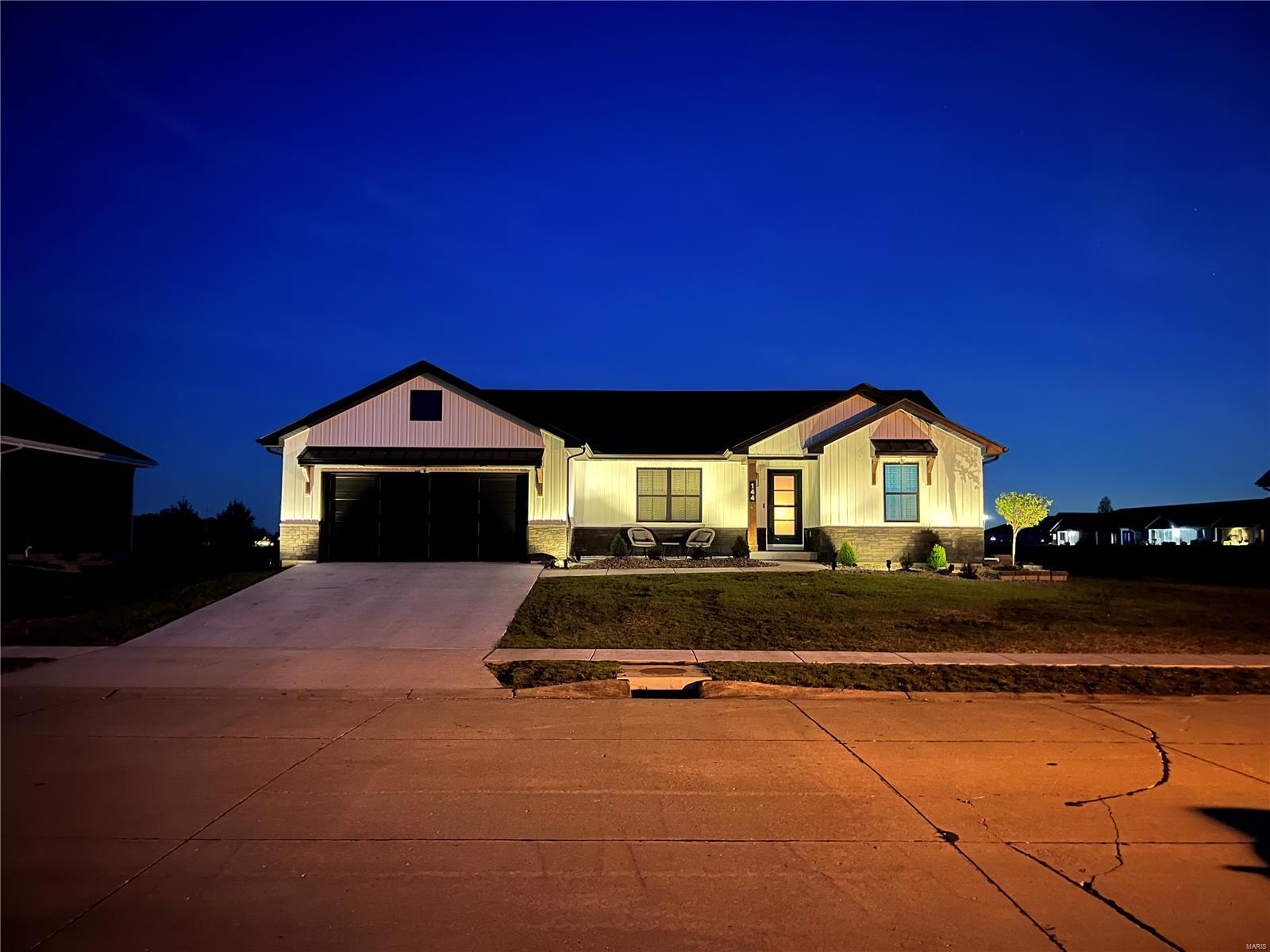 Just One Year Old! Stunning 3BR/2BA ranch-style home has 1650 sq ft of thoughtfully designed living space with split-bedroom floor plan and countless upgrades. Open-concept plan is perfect for entertaining, with vaulted ceilings, a modern fireplace accented with a cedar beam, and soft-step luxury vinyl plank flooring throughout the home. Kitchen boasts custom soft-close cabinetry, quartz countertops, a center island w/ a built-in microwave drawer, and stainless steel appliances—including gas range. Retreat to the primary suite with a double vanity, walk-in shower, and an oversized closet with custom built-ins. On the opposite side of the home, you'll find two additional bedrooms, plus a full bath. Convenient main-floor laundry, and full basement with two lookout/egress windows and rough-in plumbing for a future bathroom. Situated on a outer lot, the home also features a 12x16 screened-in back deck, a 2-car garage, tankless water heater for efficiency. Ask agent for list of upgrades!