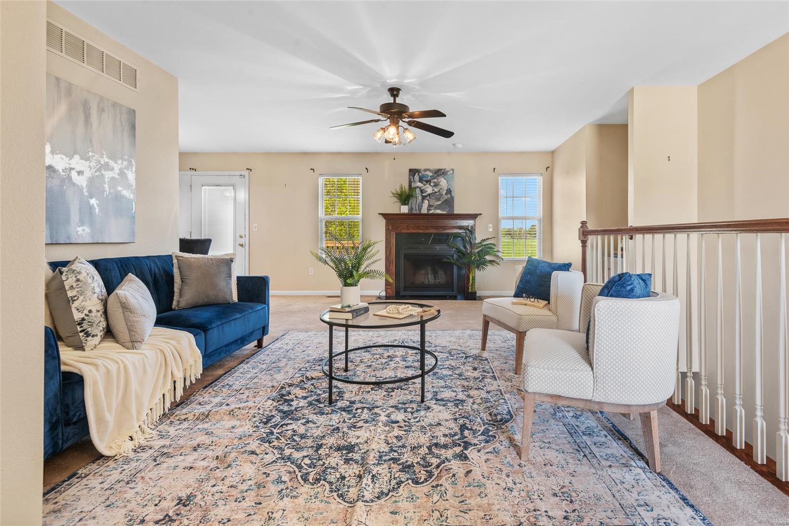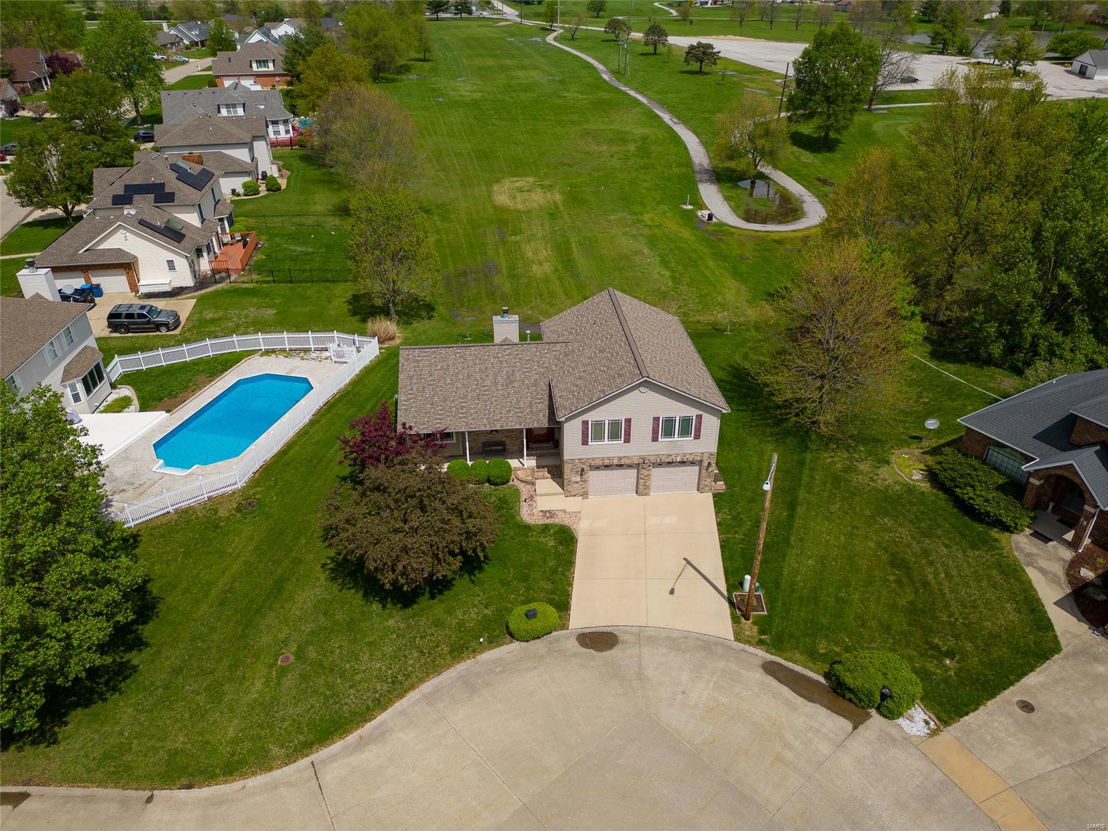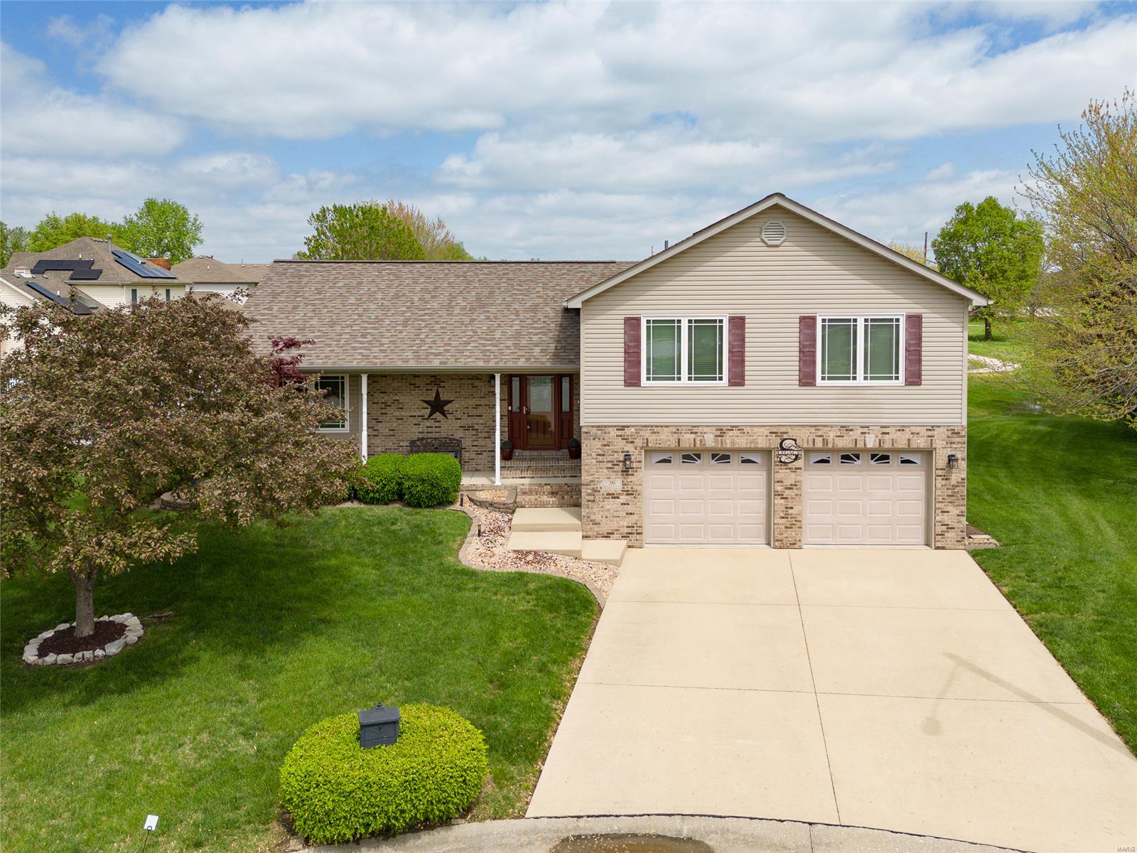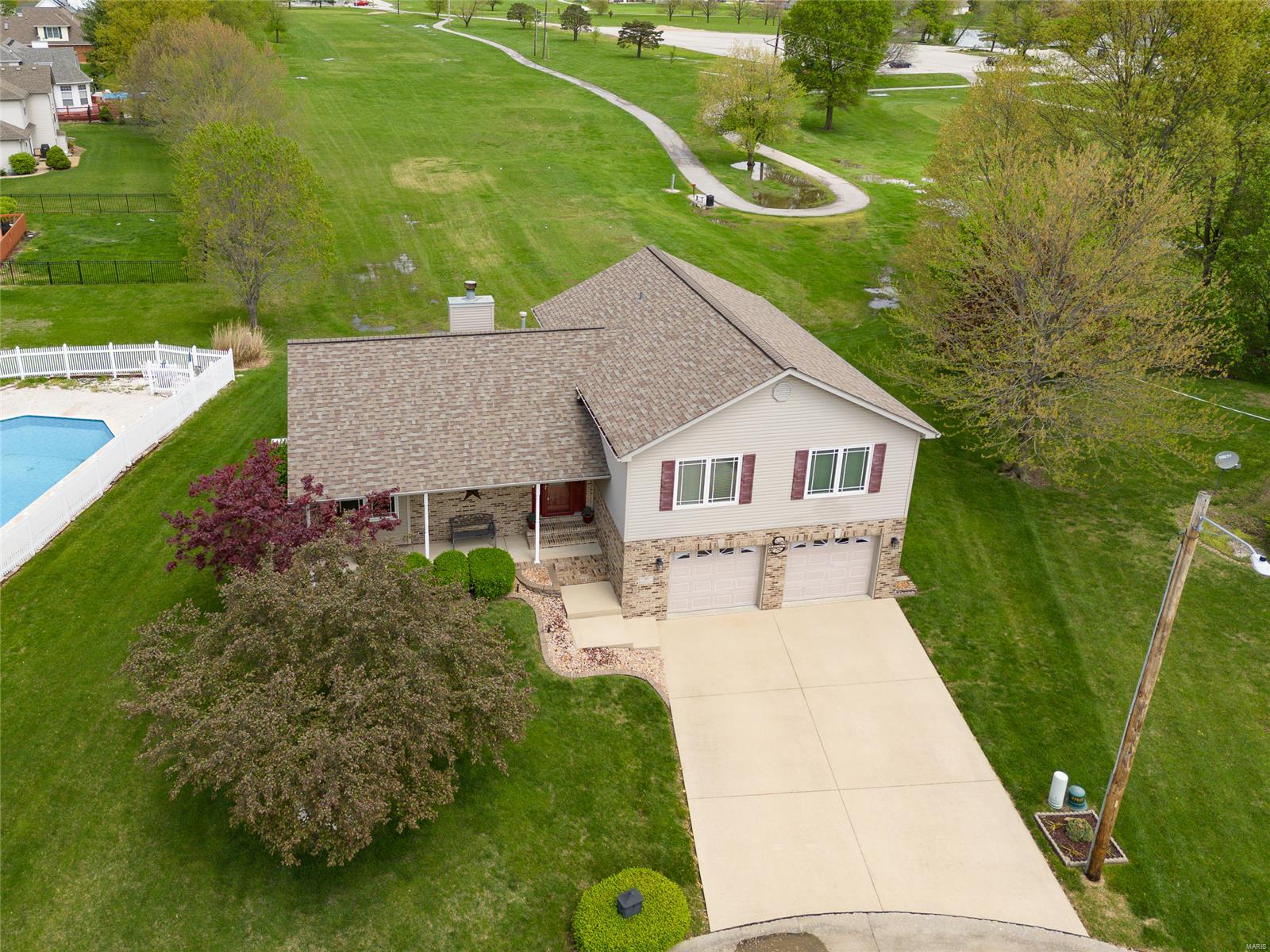 WELL CARED FOR HOME--BACKS TO GOLF COURSE--QUIET CUL DE SAC! Inviting front porch welcomes you inside. Spacious living room features gas fireplace & has plenty of natural light. Large dining room off living room is perfect for entertaining. Kitchen offers plenty of cabinets & counter space, includes appliances & nice breakfast area. Let's go upstairs to find a well designed primary bedroom suite--extra large bedroom, private bath, walk in closet with 2nd laundry option, plus a sitting area/office. 2 additional bedrooms, both with double closets & full hall bath. Family room in lower level offers a warm versatile living area designed for comfort. Laundry room & 3/4 bath complete this level. Unfinished basement provides great storage & plumbed for a bath. Roof, gutters & furnace in 2019. 2 car oversized attached garage. Peaceful backyard with a deck--the perfect place to kick back & relax with a view of the golf course. Just move in & call it HOME! Buyers to verify all MLS data
