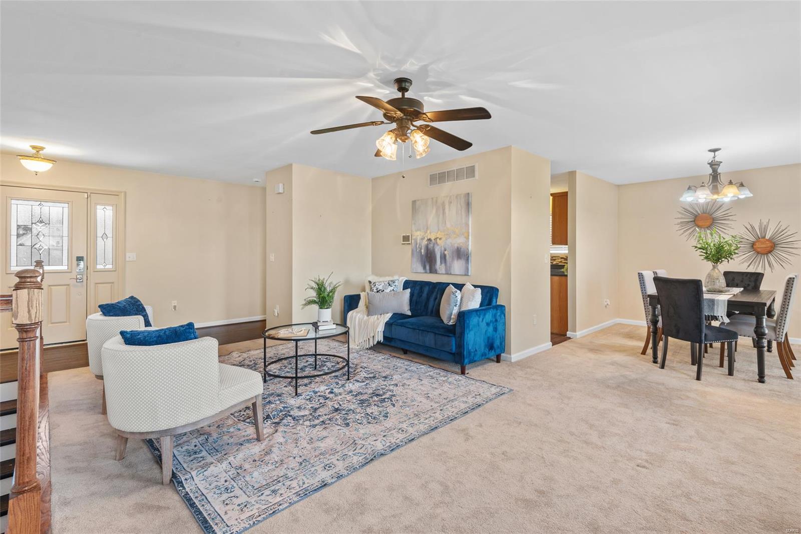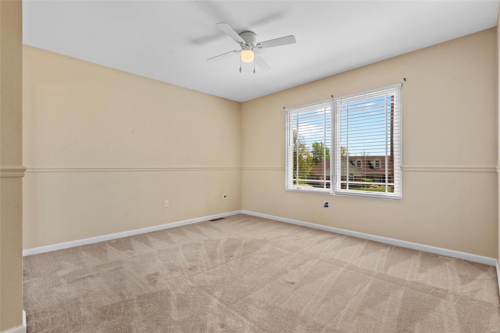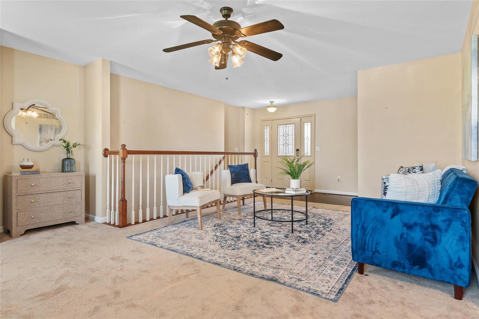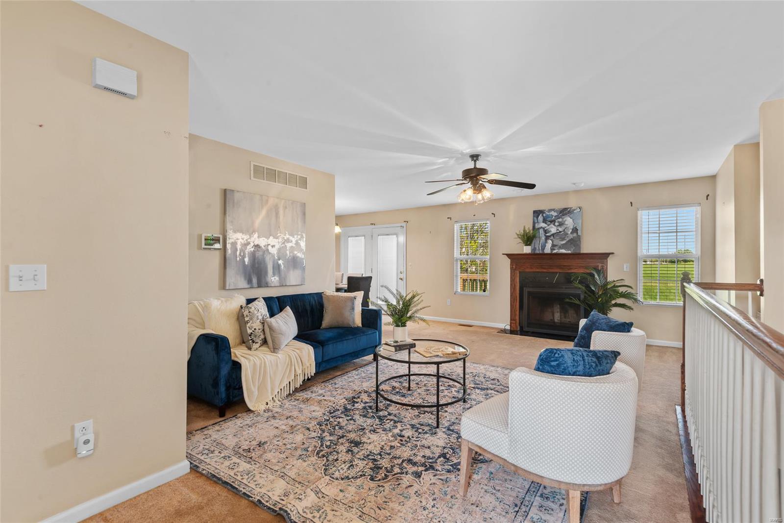 WELL CARED FOR HOME--BACKS TO GOLF COURSE--QUIET CUL DE SAC! Inviting front porch welcomes you inside. Spacious living room features gas fireplace & has plenty of natural light. Large dining room off living room is perfect for entertaining. Kitchen offers plenty of cabinets & counter space, includes appliances & nice breakfast area. Let's go upstairs to find a well designed primary bedroom suite--extra large bedroom, private bath, walk in closet with 2nd laundry option, plus a sitting area/office. 2 additional bedrooms, both with double closets & full hall bath. Family room in lower level offers a warm versatile living area designed for comfort. Laundry room & 3/4 bath complete this level. Unfinished basement provides great storage & plumbed for a bath. Roof, gutters & furnace in 2019. 2 car oversized attached garage. Peaceful backyard with a deck--the perfect place to kick back & relax with a view of the golf course. Just move in & call it HOME! Buyers to verify all MLS data