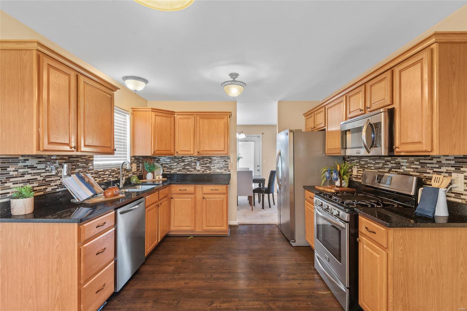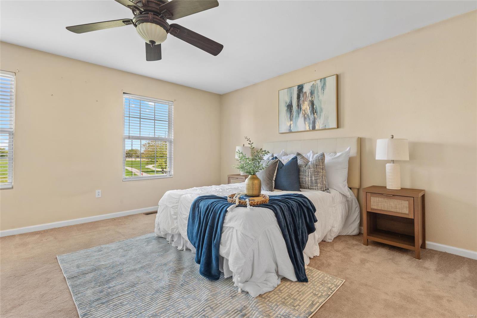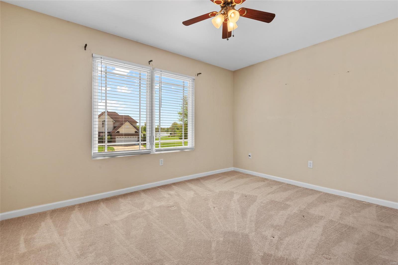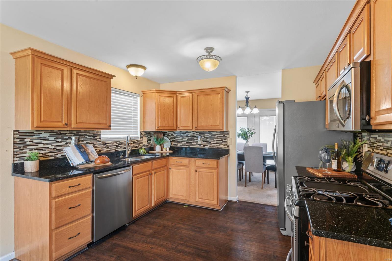 WELL CARED FOR HOME--BACKS TO GOLF COURSE--QUIET CUL DE SAC! Inviting front porch welcomes you inside. Spacious living room features gas fireplace & has plenty of natural light. Large dining room off living room is perfect for entertaining. Kitchen offers plenty of cabinets & counter space, includes appliances & nice breakfast area. Let's go upstairs to find a well designed primary bedroom suite--extra large bedroom, private bath, walk in closet with 2nd laundry option, plus a sitting area/office. 2 additional bedrooms, both with double closets & full hall bath. Family room in lower level offers a warm versatile living area designed for comfort. Laundry room & 3/4 bath complete this level. Unfinished basement provides great storage & plumbed for a bath. Roof, gutters & furnace in 2019. 2 car oversized attached garage. Peaceful backyard with a deck--the perfect place to kick back & relax with a view of the golf course. Just move in & call it HOME! Buyers to verify all MLS data