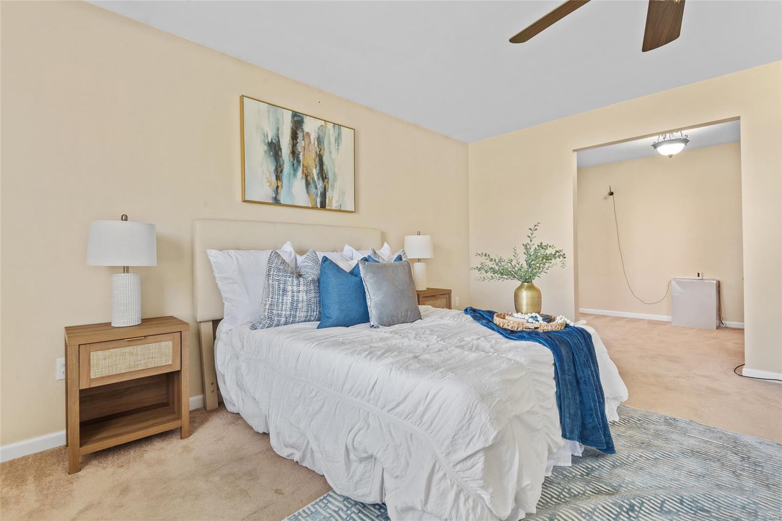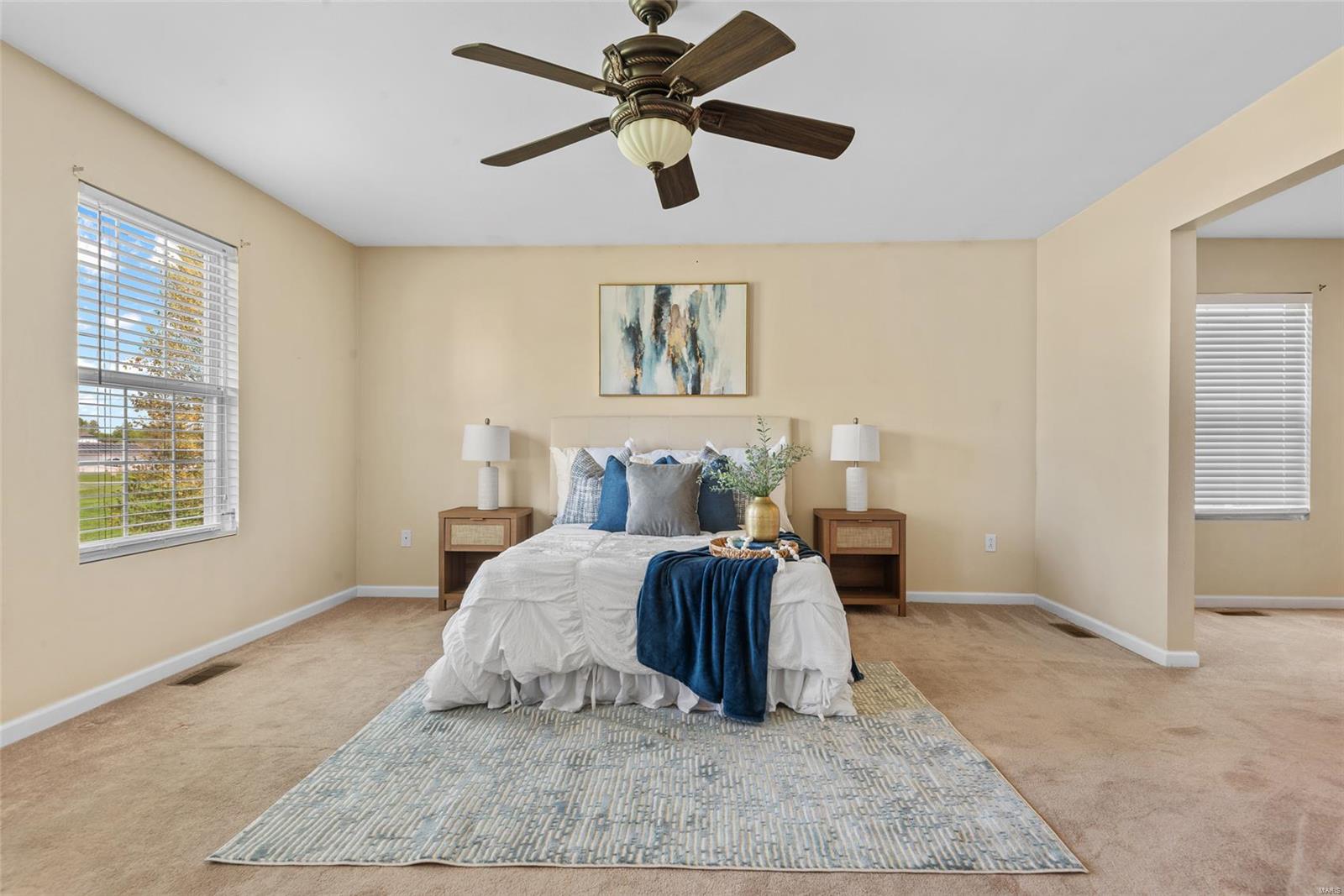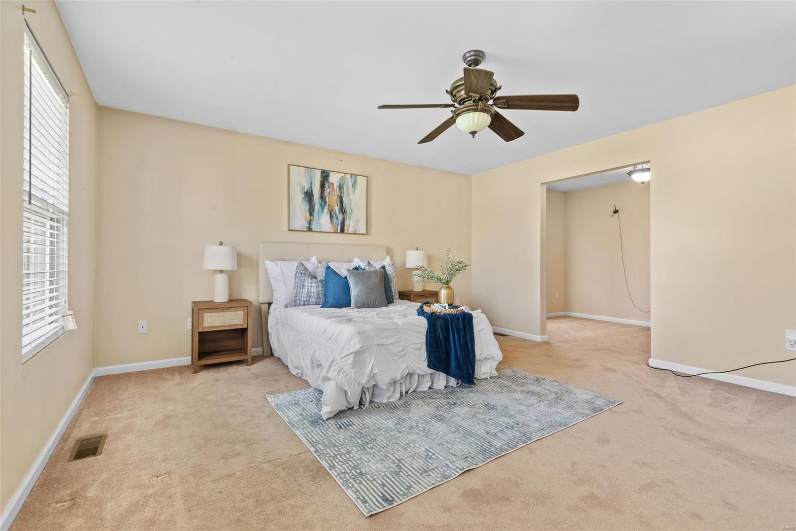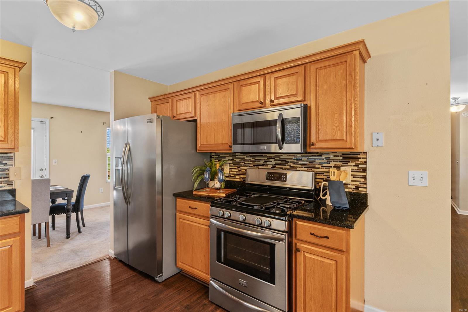 WELL CARED FOR HOME--BACKS TO GOLF COURSE--QUIET CUL DE SAC! Inviting front porch welcomes you inside. Spacious living room features gas fireplace & has plenty of natural light. Large dining room off living room is perfect for entertaining. Kitchen offers plenty of cabinets & counter space, includes appliances & nice breakfast area. Let's go upstairs to find a well designed primary bedroom suite--extra large bedroom, private bath, walk in closet with 2nd laundry option, plus a sitting area/office. 2 additional bedrooms, both with double closets & full hall bath. Family room in lower level offers a warm versatile living area designed for comfort. Laundry room & 3/4 bath complete this level. Unfinished basement provides great storage & plumbed for a bath. Roof, gutters & furnace in 2019. 2 car oversized attached garage. Peaceful backyard with a deck--the perfect place to kick back & relax with a view of the golf course. Just move in & call it HOME! Buyers to verify all MLS data