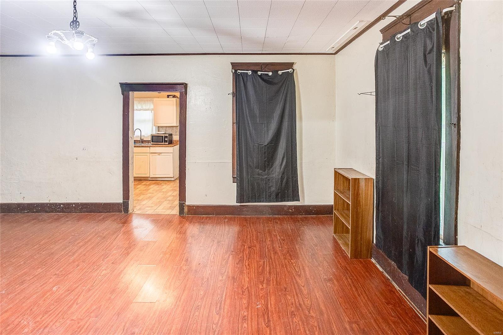 Private setting on large lot. This 2+ bedroom home has main floor laundry, appliances, replacement windows and a bonus room that can be used for various uses. There is also a covered front porch. Home being sold "AS IS". Buyer and buyer's agent to verify all MLS information including measurements.