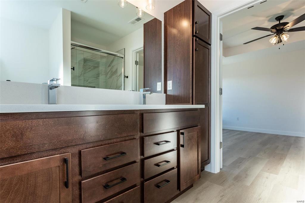 GORGEOUS, CONTEMPORARY LUXURY! This 2 bed, 2 bath residence features an open floor plan boasting w/ an abundance of natural lighting & style! Sleek finishes & ultra quality construction complete this home from the impressive great room w/a distinctive ceiling design that opens to the beautiful kitchen featuring custom cabinetry, tile backsplash, SS appl. & solid surface counter tops & dining area. Recessed lighting creates a wonderful light & bright feel. The primary suite hosts a spa-like en-suite featuring a dual vanity, a beautiful, tiled shower & walk-in closet. The 2nd bed. is right-sized- great for a family member, guests or a work from home office space. Retreat to the outdoors & relax about the patio overlooking the spacious yard. This exceptional home is wrapped w/ upgraded landscaping & sodded yard. Full parcel will be divided in 1/2 once under contract. Interior photos are from similar listing; however, new photos are coming soon. Lease option available- call for details.