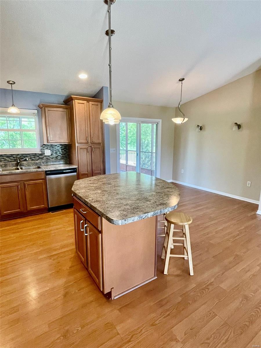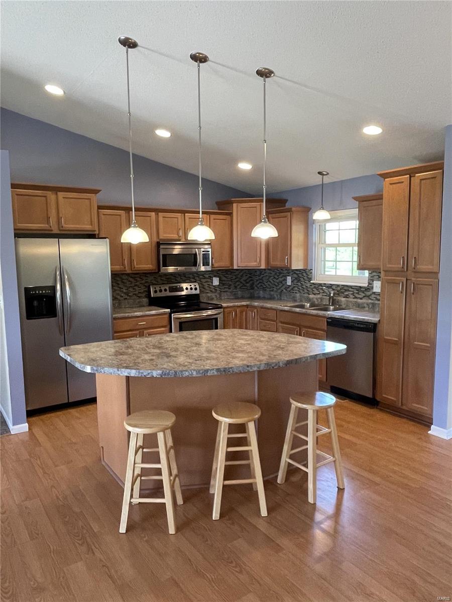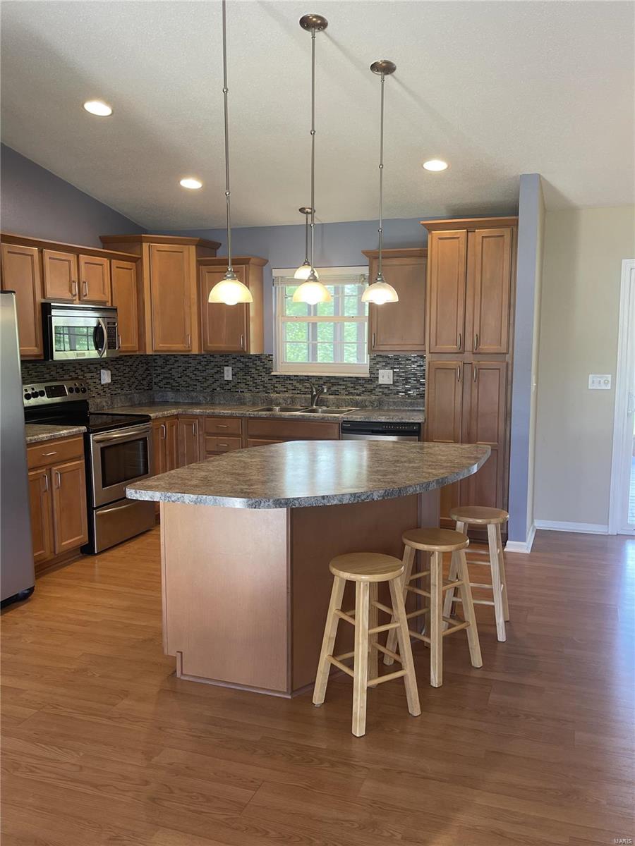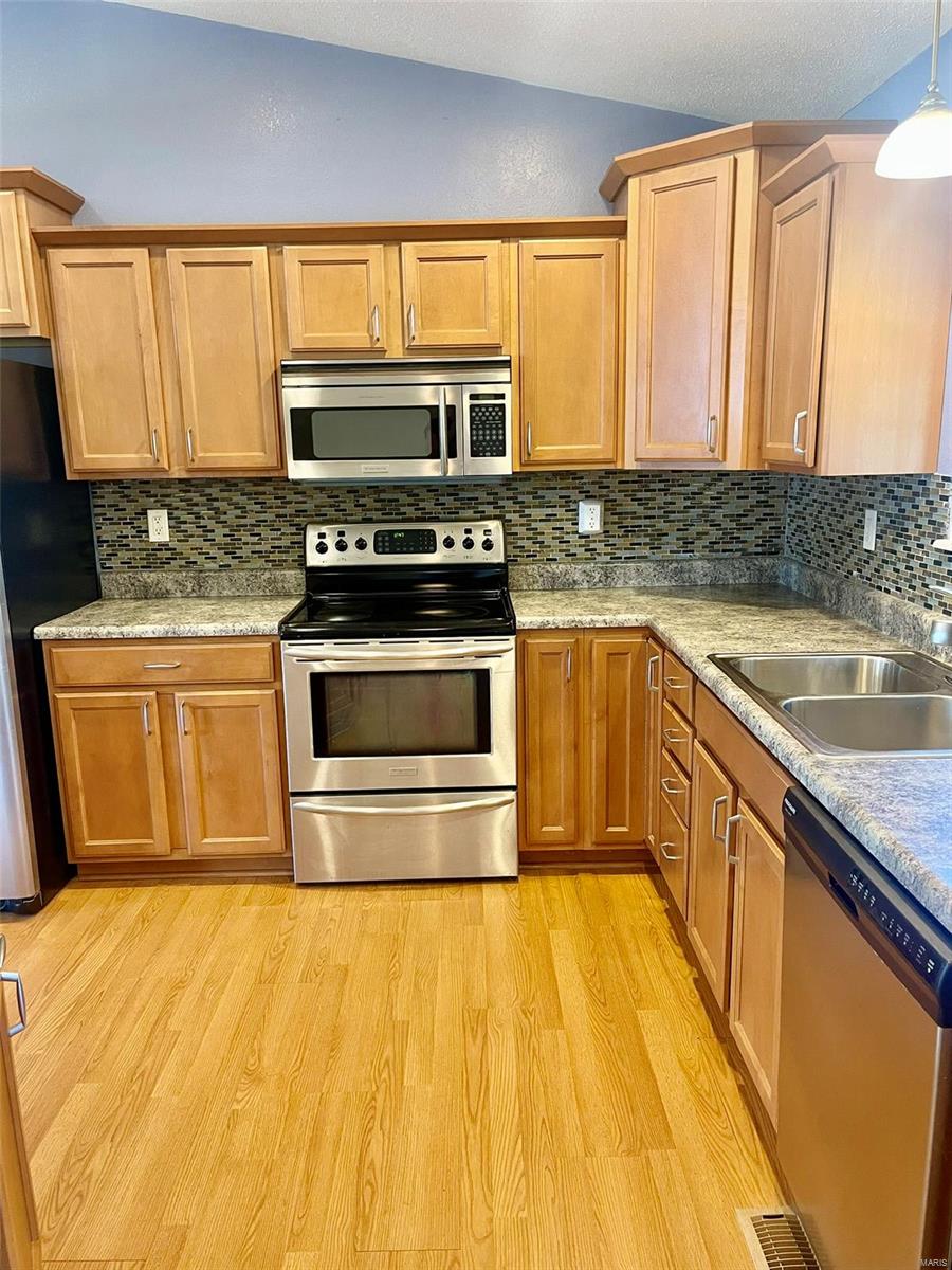 Move in ready! Perfectly clean and tidy! Ready for new owners to enjoy their summer with a huge back yard that connects to park. Main level includes three bedrooms with a primary suite, hall bath and open concept kitchen/dining/living (All kitchen SS appliances stay) Just off the kitchen is a newer (5 yr old) screened in deck for all the outdoor atmosphere minus the pesky bugs! Lower level connects to the garage and features a gas fireplace in the large family room with access to backyard patio along with utility and 1/2 bath. This is not a drive by! Make plans to see this well cared for home. Siding and roof were new in 2017 and new HWH in 2018.