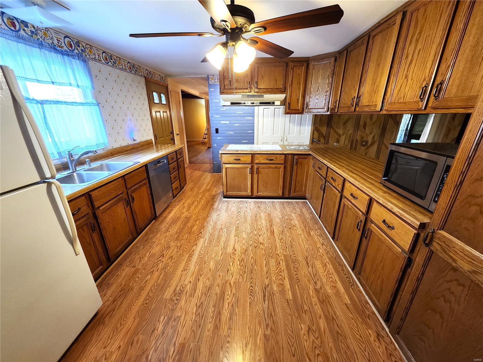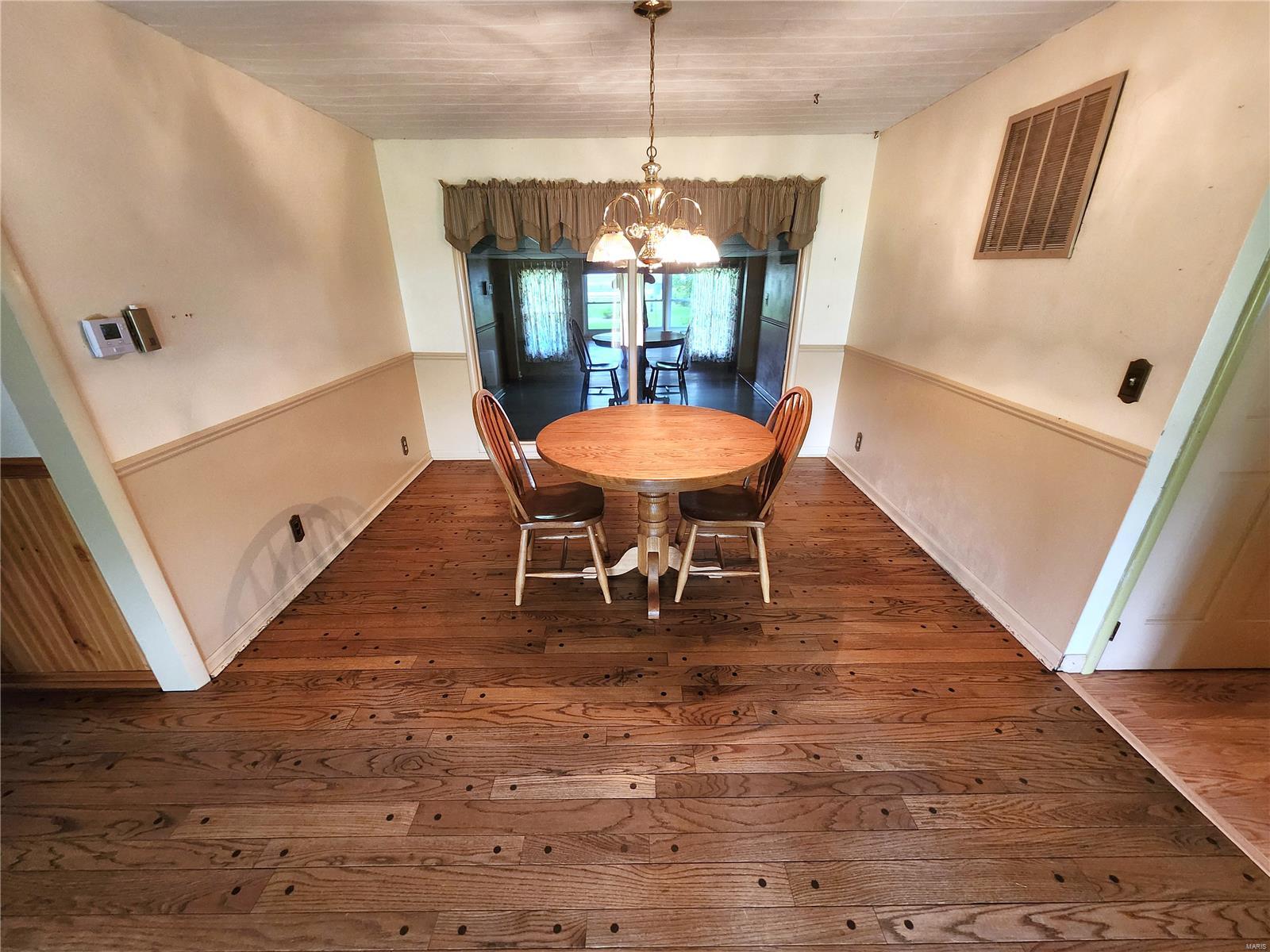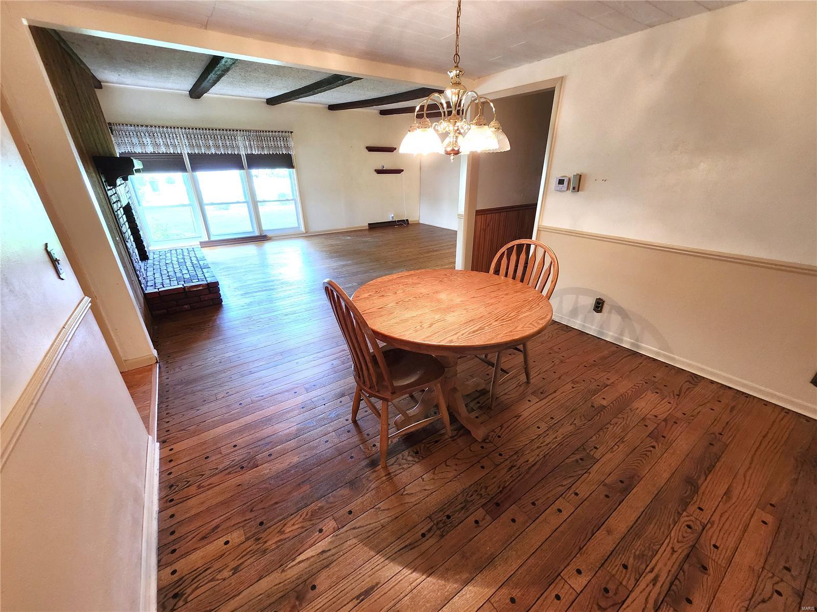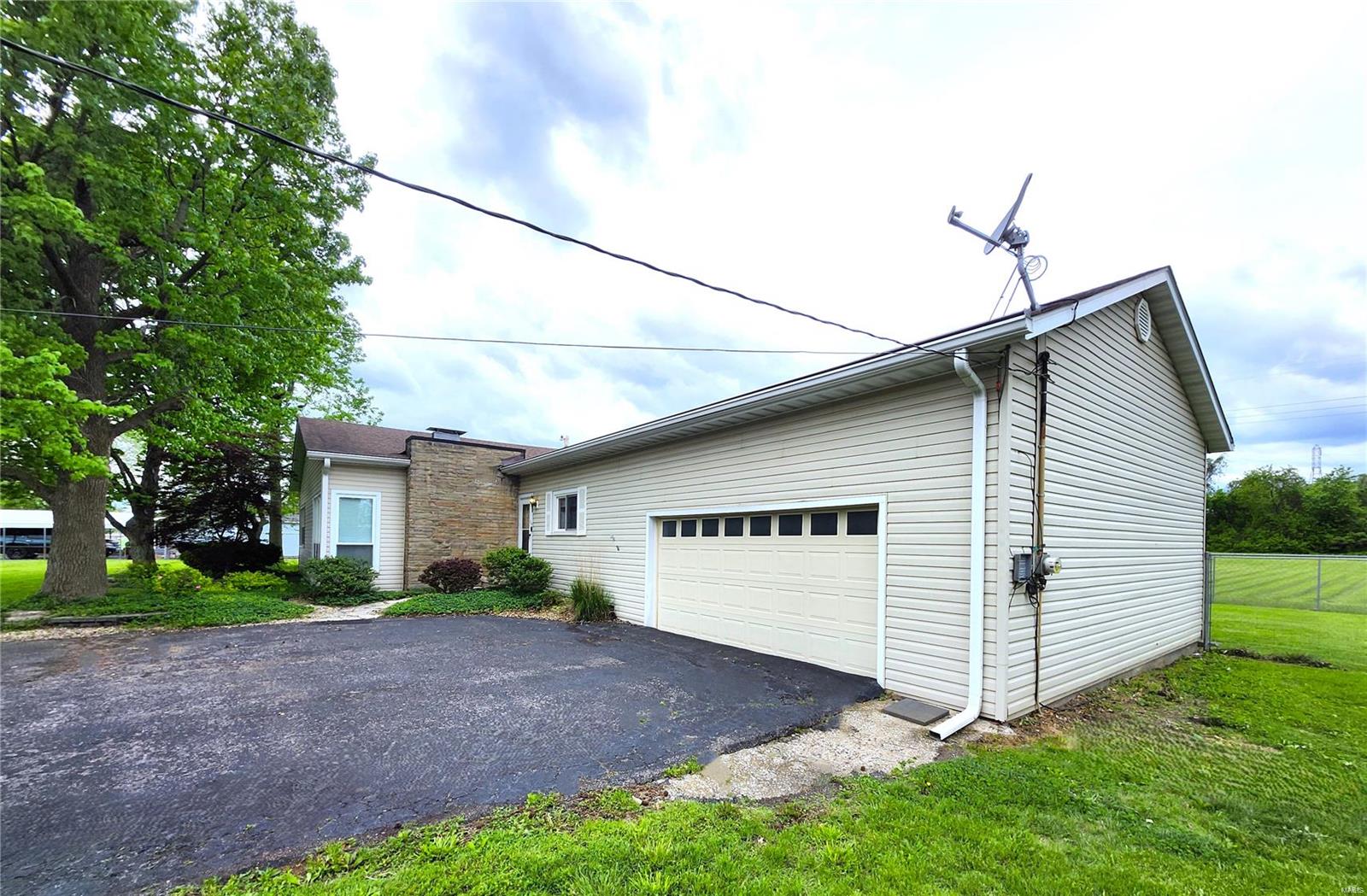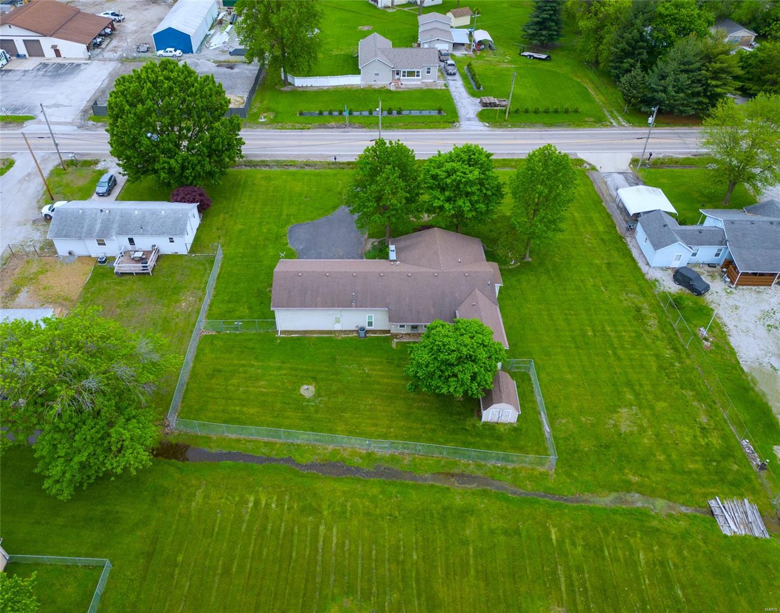 A rare find & rural vibes on the edge of town. 3 bed / 2 bath ~ 2,100 sq ft ranch sitting on a 2 acre lot. Two car attached over-sized Garage with a triple wide asphalt parking area. Everything is on one level. Main floor laundry - Washer & Dryer included. The Kitchen includes appliances, pantry closet, double sink & an abundance of cabinets. Separate Dining Room with hardwood floor. A unique feature of this home is the THREE gathering room options. A Living Room with hardwood floor & impressive, wood burning stone fireplace, a Family Room just off the kitchen, and a HUGE Great Room (26 x 16) on the back of the house. Convenient location near the intersection of IL-Route 162 and Route 111 can have you on the interstate in minutes. A backyard immediately behind the house is secured with a 6 ft tall fence, with the remaining acreage open beyond that. Vinyl Replacement windows. Roof - 10 yrs, Central Air - 2 yrs, Water Heater - 3 yrs. Selling As-Is but has already passed Occupancy.