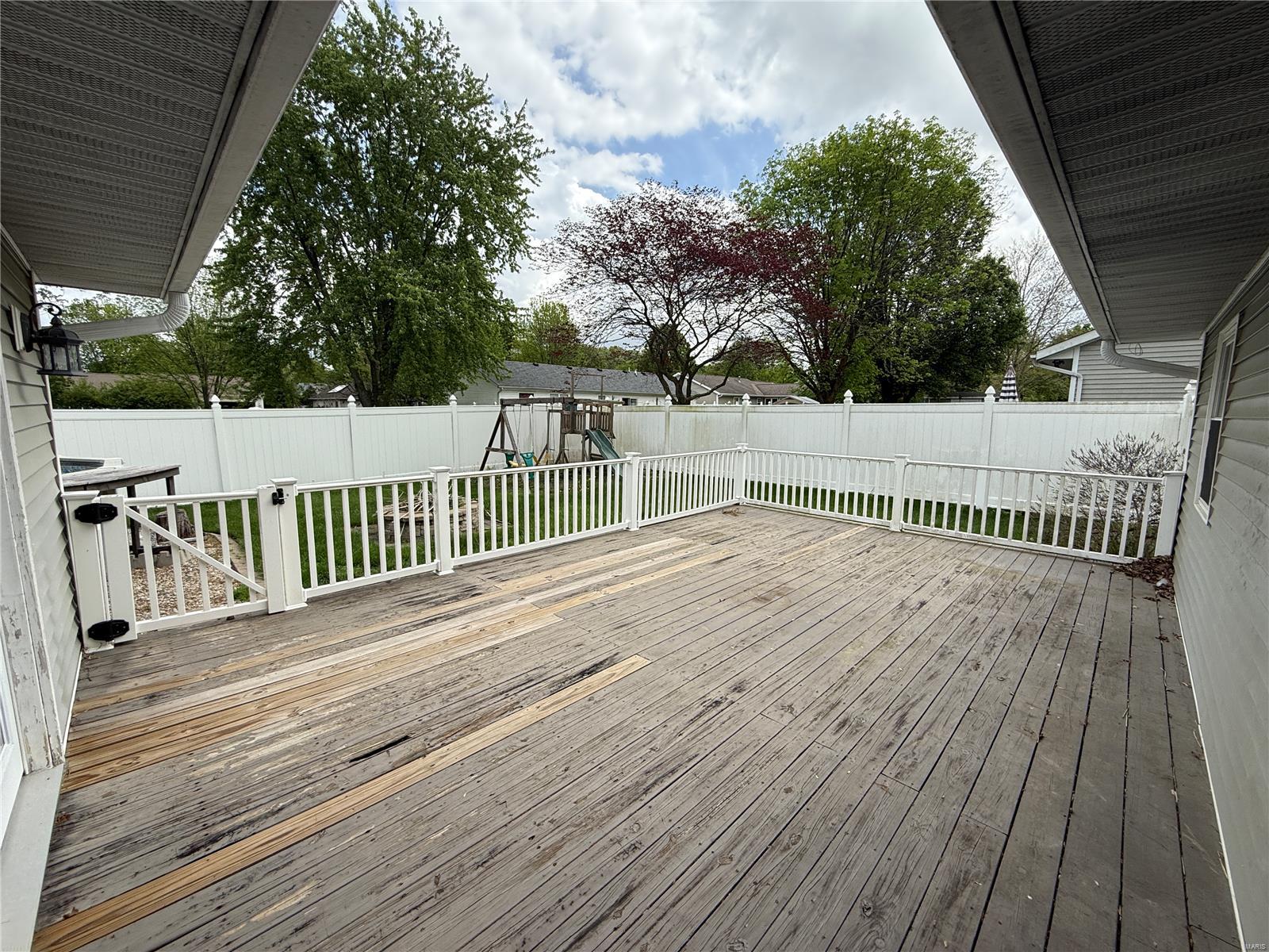 Don't miss out! This home has a large living room which leads into the dining room, The kitchen has plenty of cabinets with two lazy susan lower cabinets. The primary suite is spacious but still has a cozy feel. There is a double sized closet and attached full primary bathroom. Down the hall, there are two additional bedrooms and another full bathroom. There is an additional bedroom off the family room which would be a perfect office. The huge family room has hardwood floors and wood beams on the ceiling which gives it character. French doors lead to a large wooden deck, perfect for entertaining along with a fully fenced yard, large above ground pool, firepit and swing set! The two car garage has plenty of room for extra storage and leads into the mudroom/laundry room. This home is just down the road from the high school, churches and downtown. This home is perfect for a family who enjoys fun, entertaining and the outdoors! This one won't last long - make your appointment today
