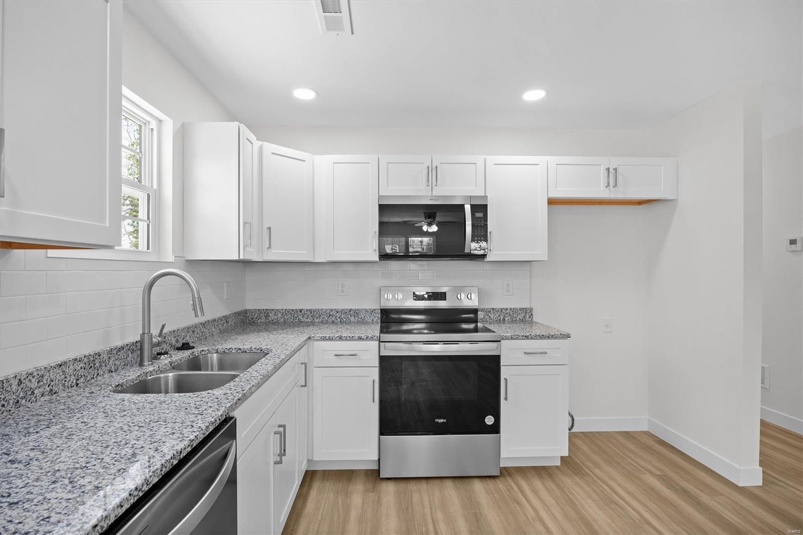 Stunning 3 bedroom, 2 bathroom, ranch style home designed for modern living. The open concept kitchen and living area create the perfect space to call home, featuring stylish vinyl plank flooring throughout. The kitchen is a chefs dream with granite countertops, subway tile backsplash, and white cabinetry offering ample storage. Stainless steel stove, dishwasher, and microwave round this charming kitchen out. Relax in the luxurious primary ensuite, which boasts a double vanity. Enjoy the convenience of main floor laundry. Do not miss your chance to own a brand new home! This is a Fannie Mae Property. Before making an offer Buyer and/or buyer agent should verify all MLS data.