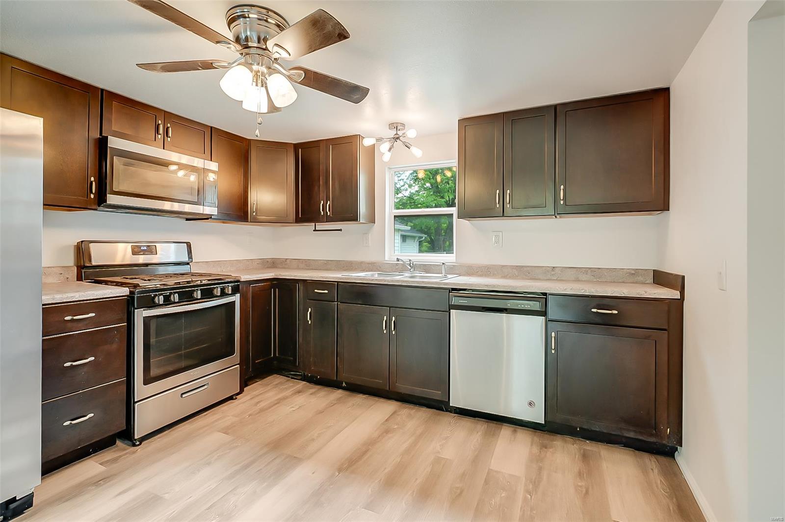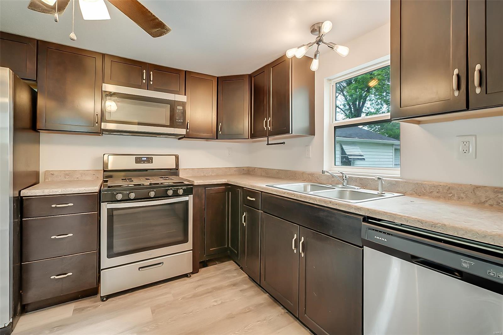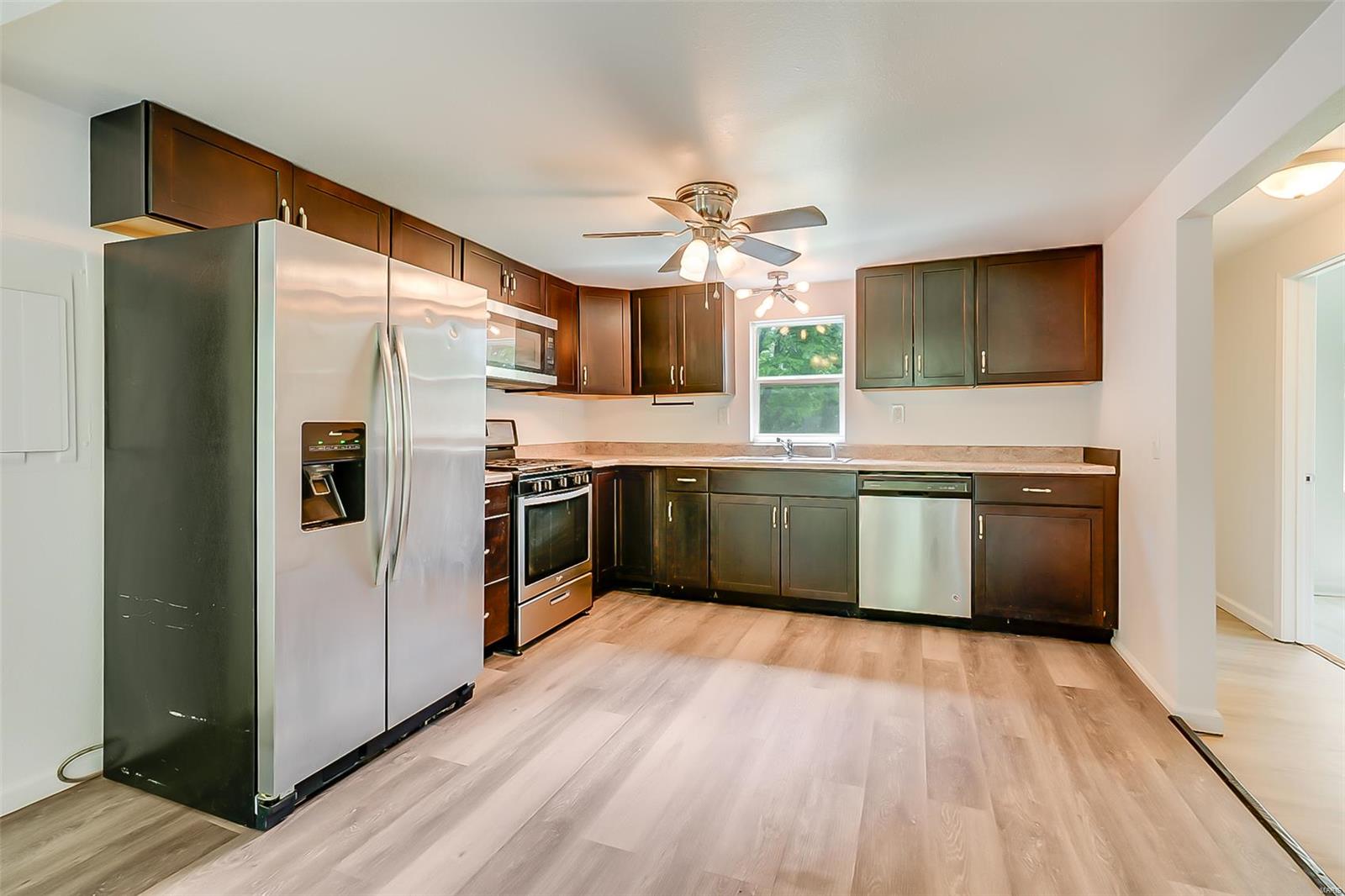Step into comfort with this beautifully maintained 2-bedroom, 1-bath home featuring spacious rooms and thoughtful updates throughout. The bright, open layout includes a generous living area and main floor laundry for ultimate convenience. The updated kitchen is outfitted with sleek stainless steel appliances, perfect for cooking and entertaining. Enjoy the outdoors in the large backyard—ideal for pets, play, or gardening. Whether you're a first-time buyer or looking to downsize, this home offers comfort, style, and functionality in one inviting package.