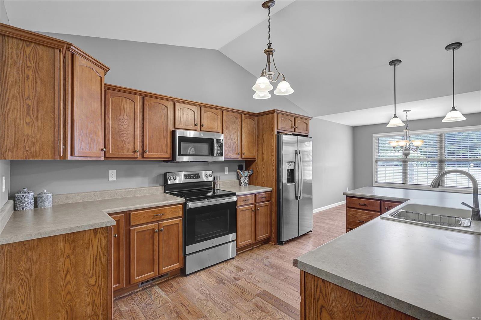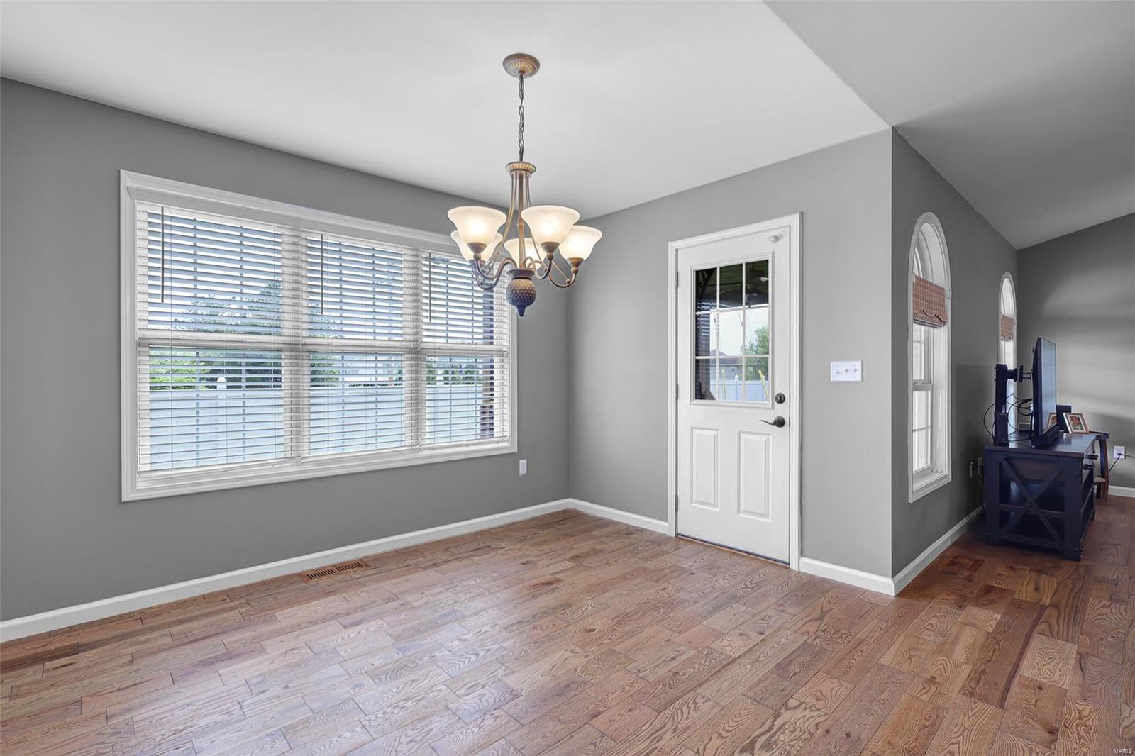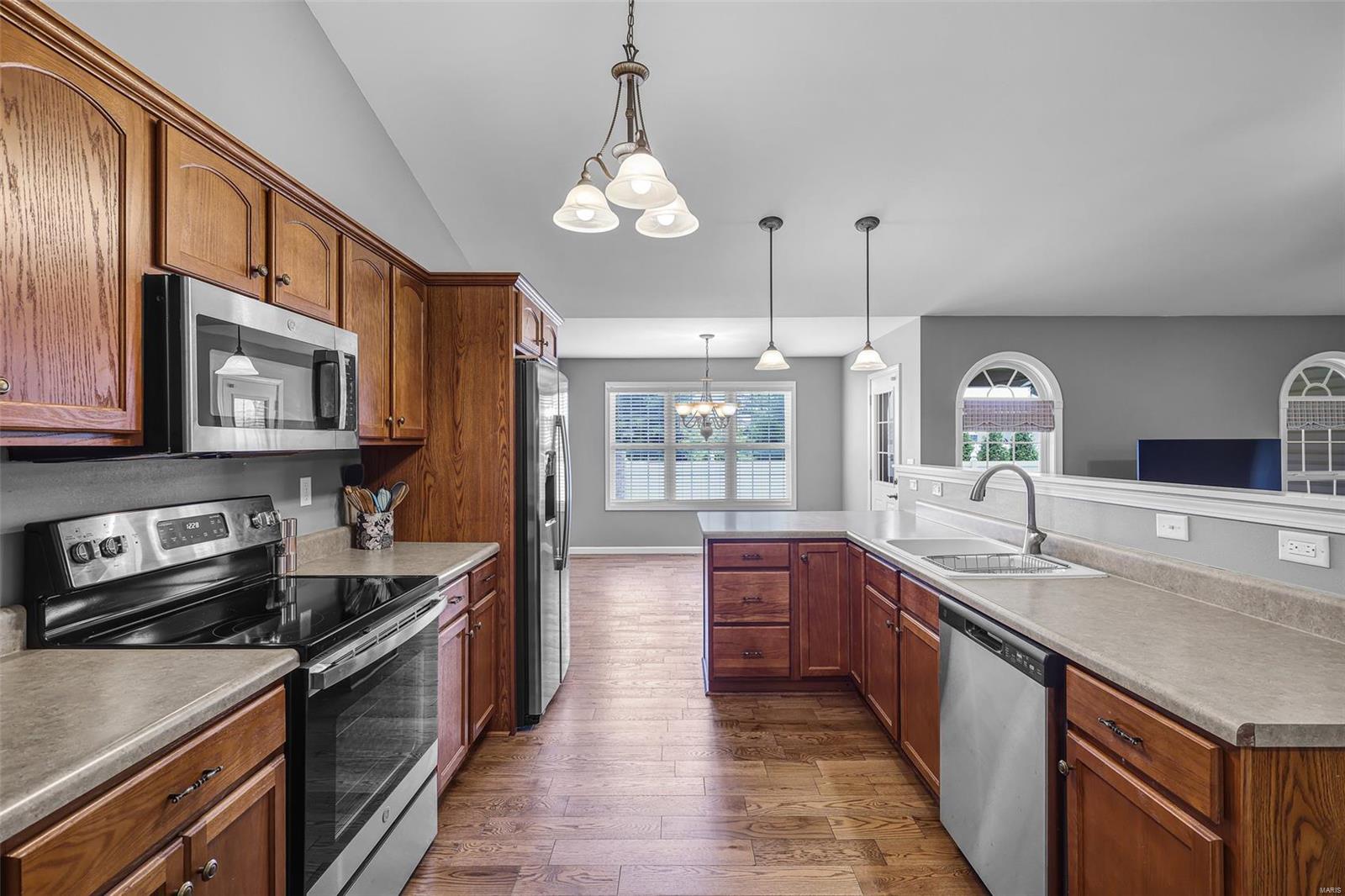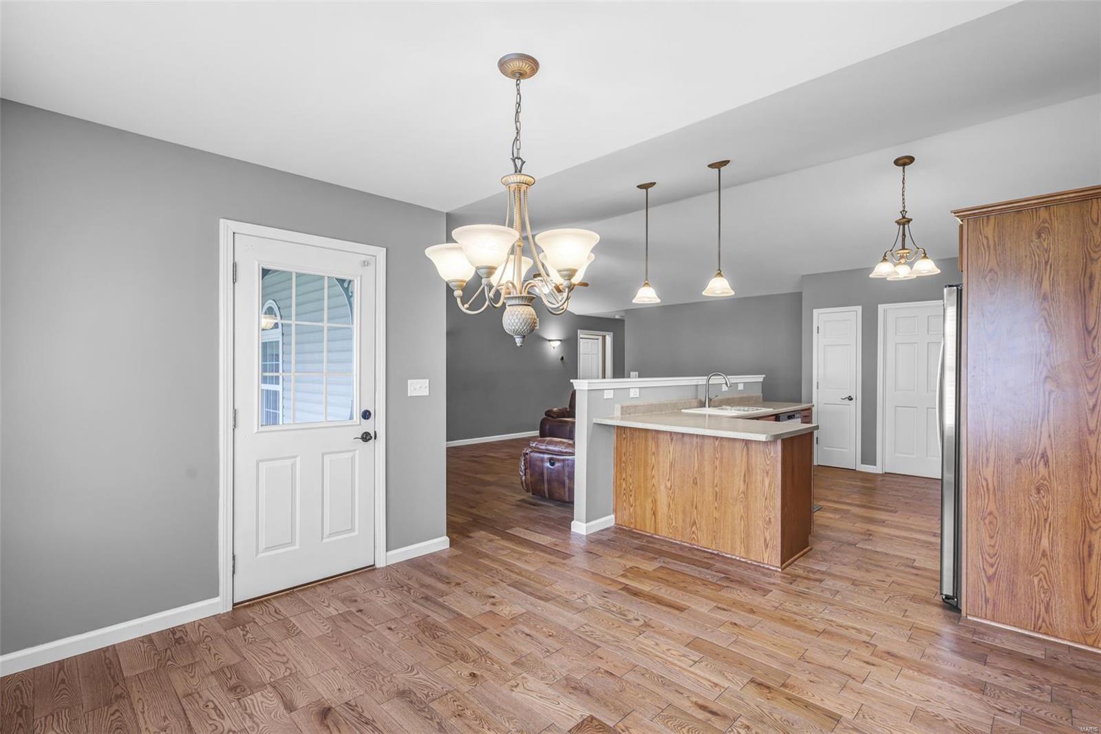 Welcome to easy living in this 2 bedroom condo with 2 beautifully UPDATED bathrooms in the popular Innsbrooke Community. With newer hardwoods throughout the living areas and tile in both bathrooms & laundry - move right in and enjoy! Your primary bedroom features a tray ceiling, updated bathroom with dual sinks, beautifully tiled shower and walk in closet. The open layout is the heart of the home and includes the great room w/vaulted ceiling, bright & cheery kitchen with stainless steel appliances, breakfast bar & spacious dining area leading out to your covered deck. Just inside the 2 car attached garage is your main level laundry room w/another storage closet. The full basement is unfinished and plumbed for a full bathroom if future expansion is desired. Yard maintenance, landscaping, roof, siding, & snow removal covered by the HOA.